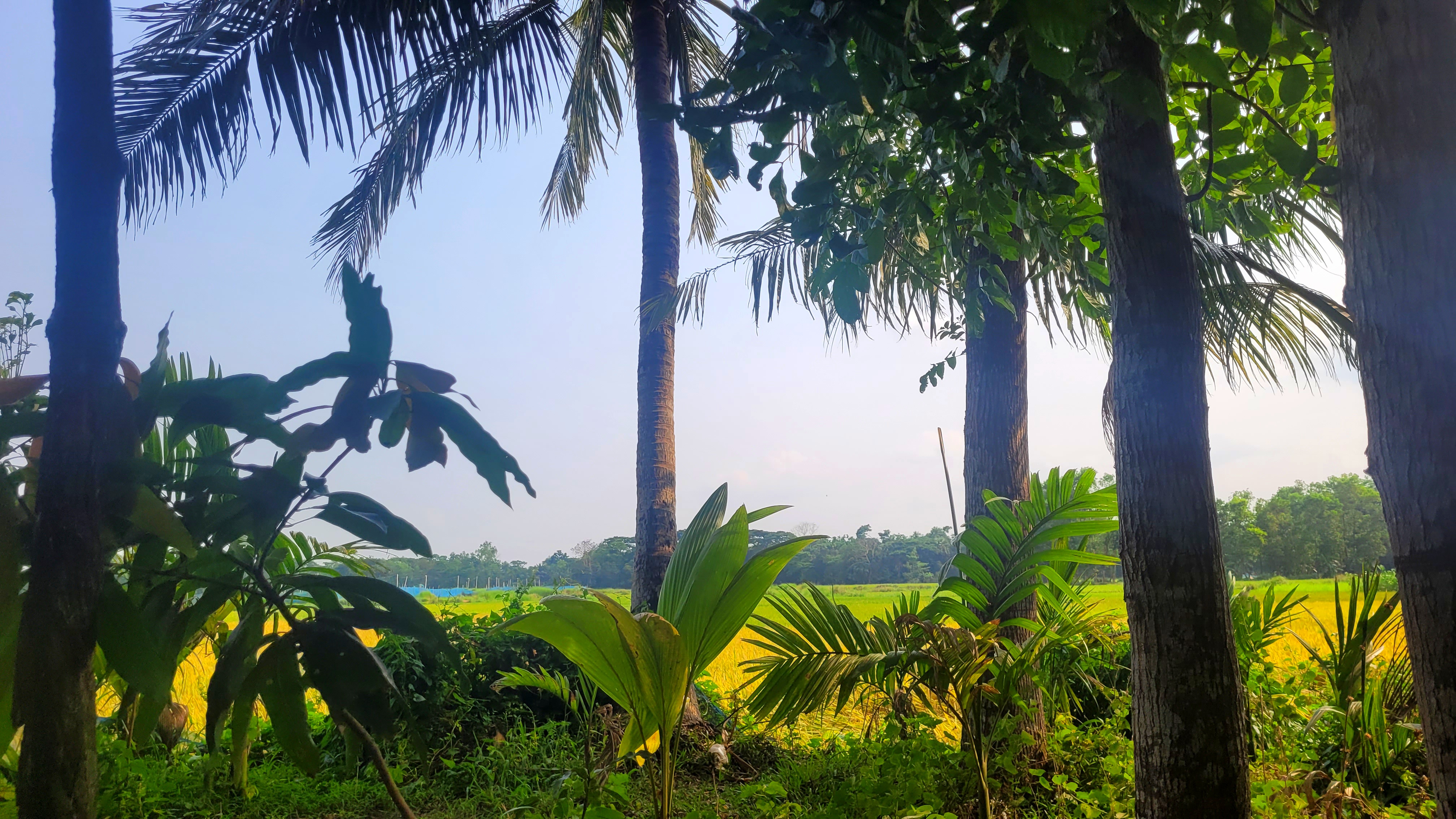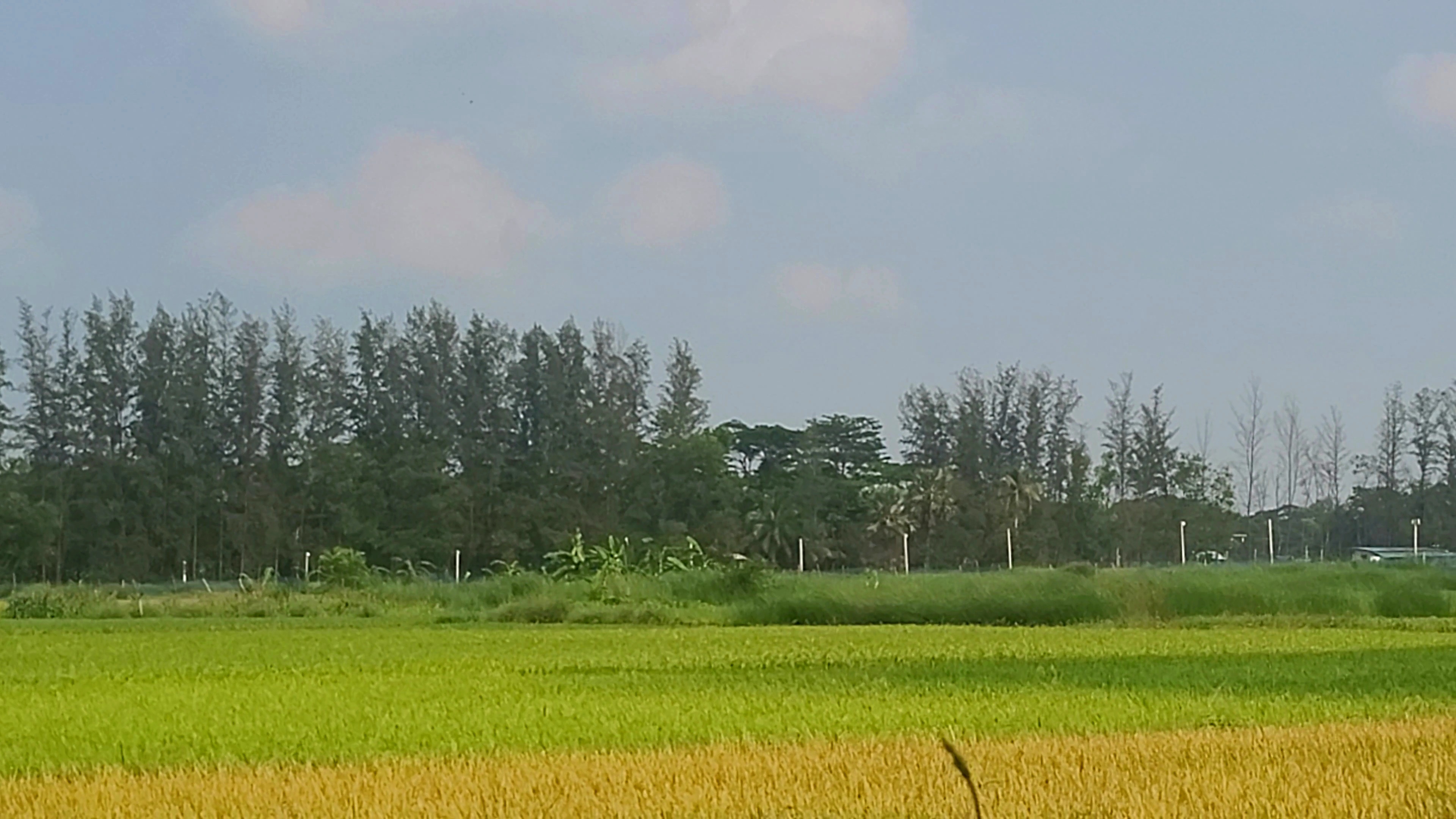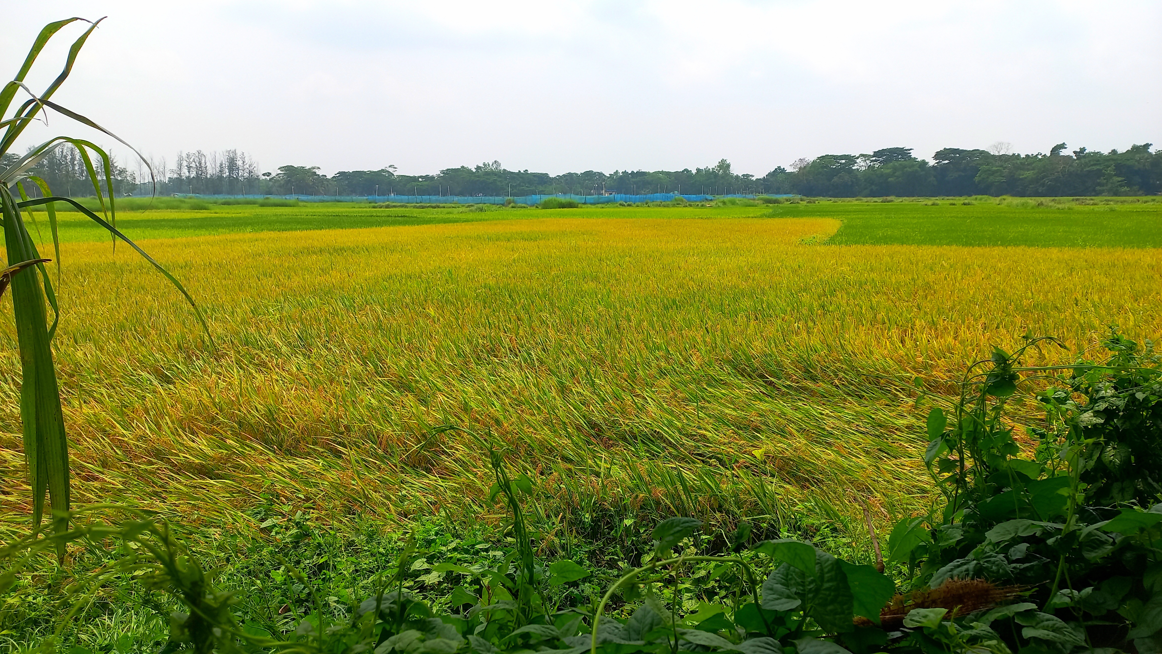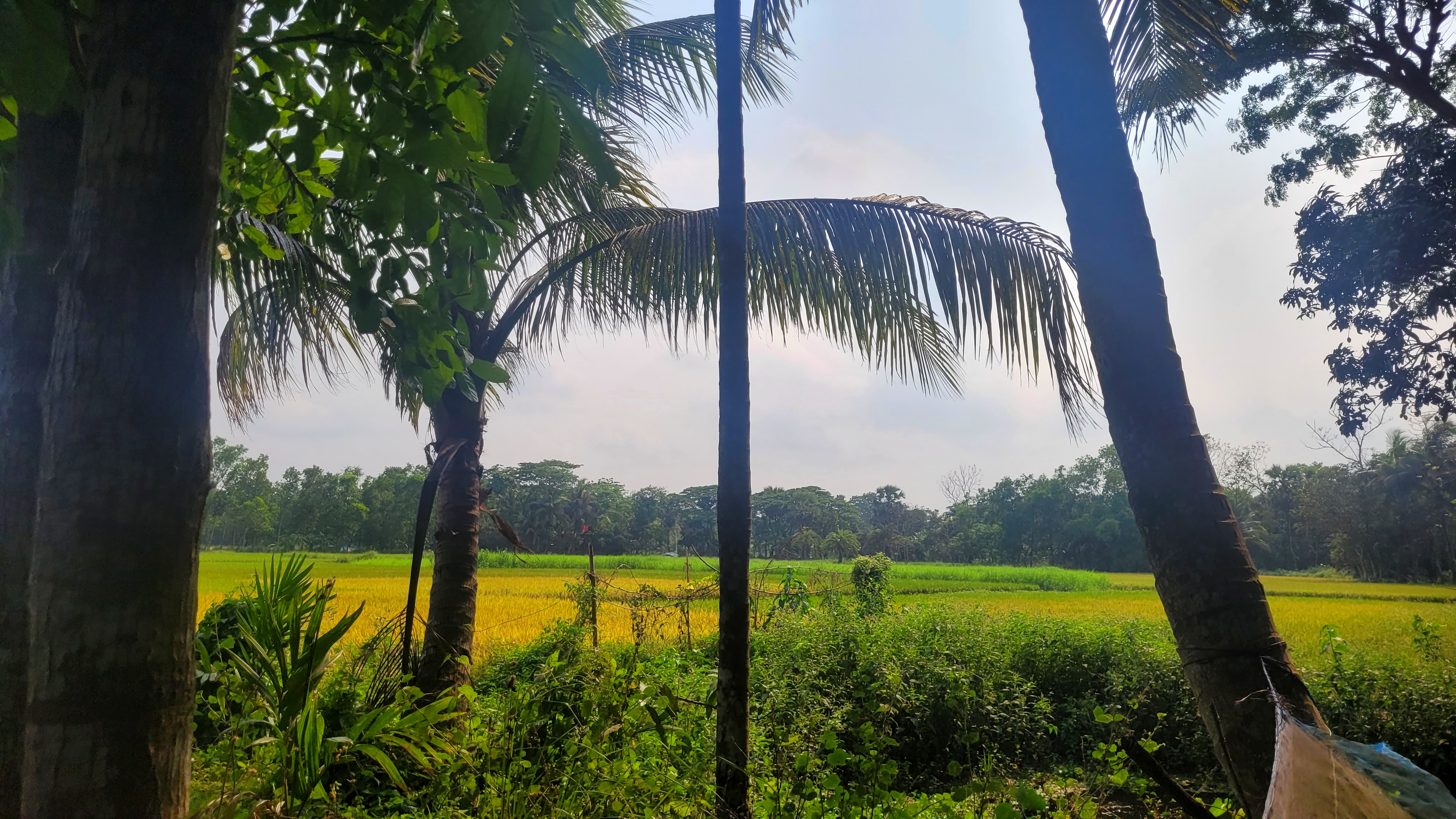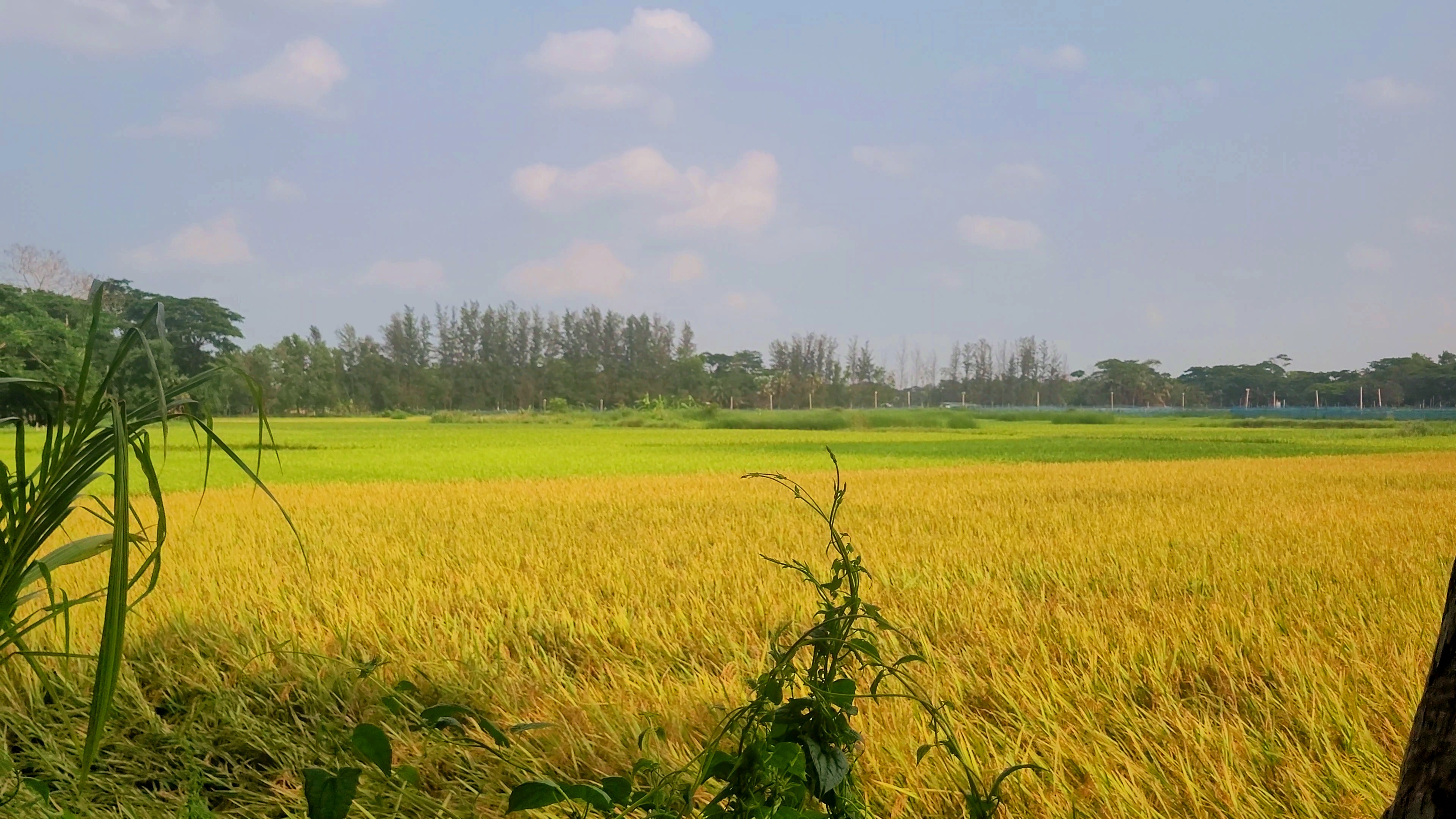 When summer comes, this place becomes very full. In the combination of green and yellow, you can see rice plants planted in the land below. Where many types of rice have ripened and some rice is in green form. It is very nice to see these golden rice plants among the green rice. After a few days, the trees will be cut down. However, the environment that you can see around here, a few trees can be seen from a distance. That place is extraordinarily beautiful. When these trees are planted in rows, the place looks beautiful from there and it is also very nice to see from our area. Because it always seems much more pleasant to me.
