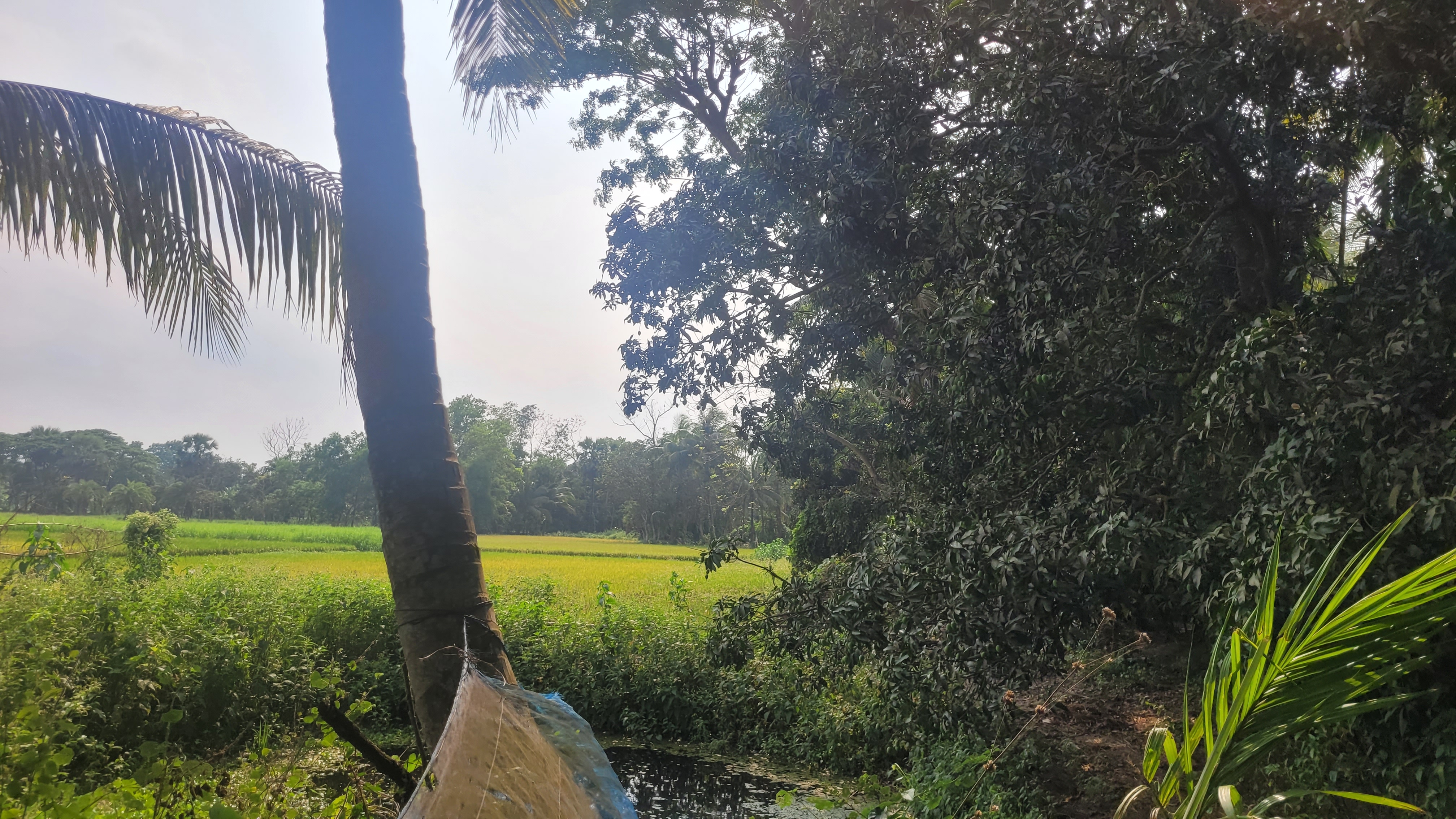 Through the video, I tried to show how gentle the waves of the southern wind and the surrounding nature looked. Especially every tree was swaying in the southern wind. And where I was standing, it was basically a VT. There was once a beautiful loft here. Where you could sit and enjoy the southern wind and nature. However, due to the lack of people at present, the loft has not been renovated. However, there are many trees here. And it is a place to sit under the trees and enjoy the whole nature.
