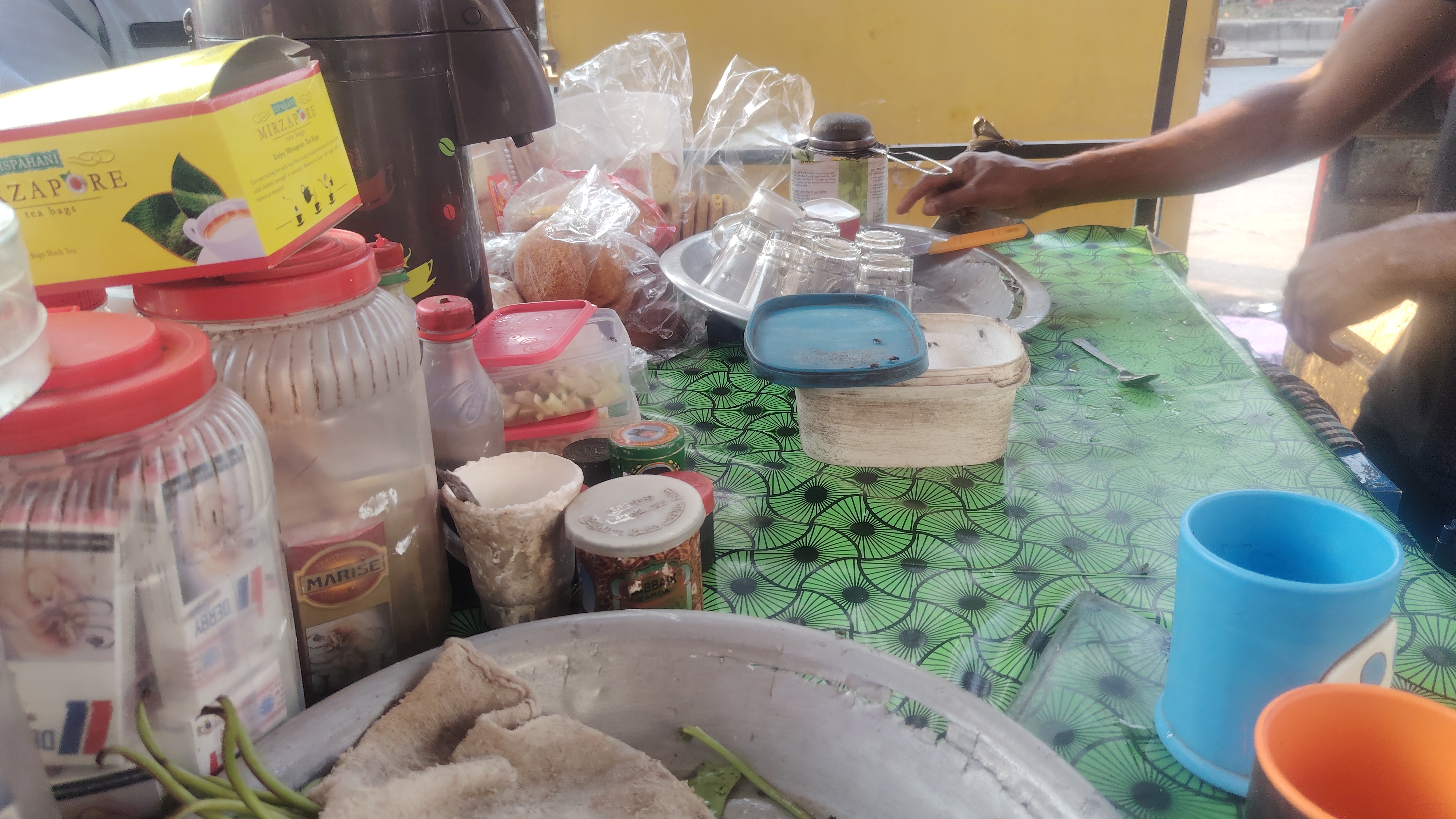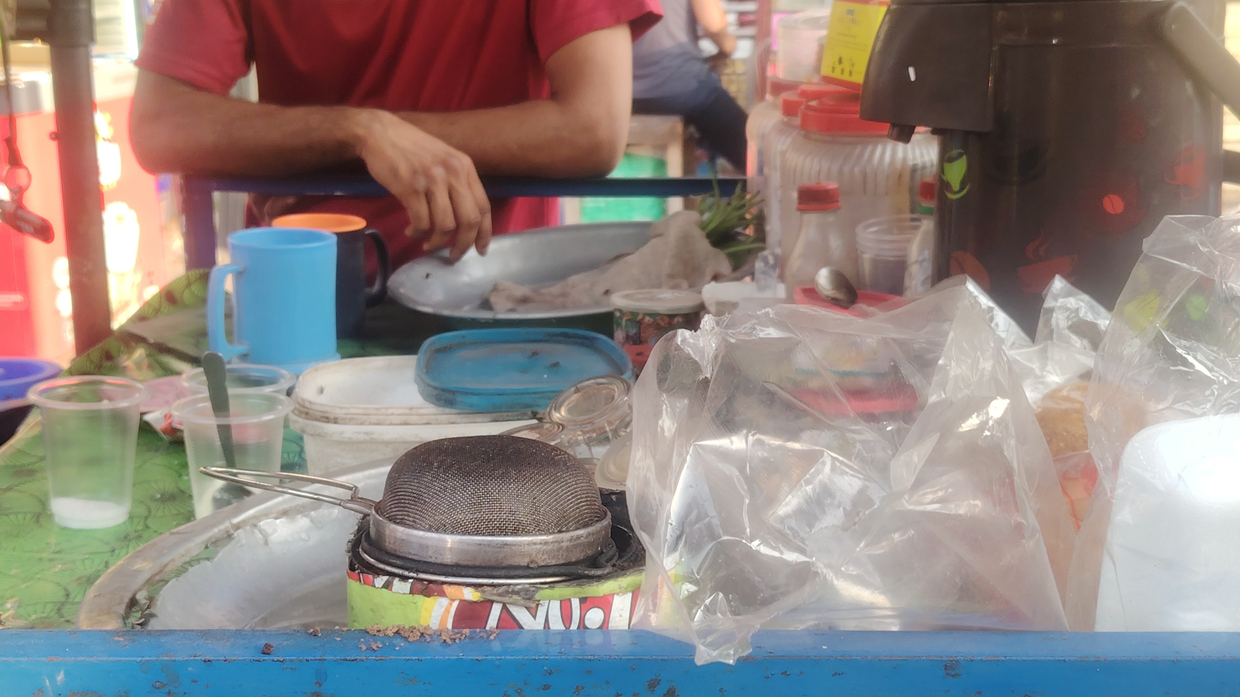 Since they are located on the side of the road, their environment is a bit untidy, but there are chairs around the shop for people to sit and the shop is also located under a large umbrella. The umbrella is provided so that the sun does not fall from above and so that it remains dry even if it rains.