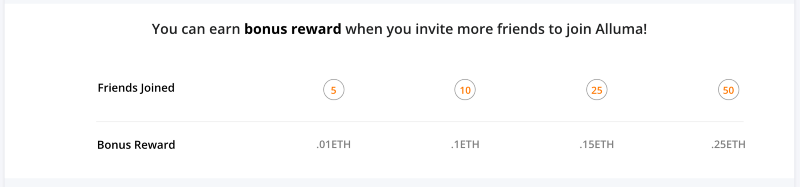 Bonus rewards are in ETH are credited on the last day of each month and sent directly to your ETH wallet on Alluma.
