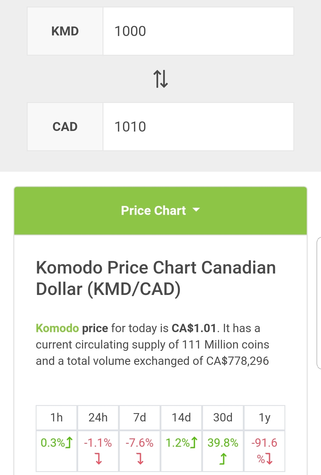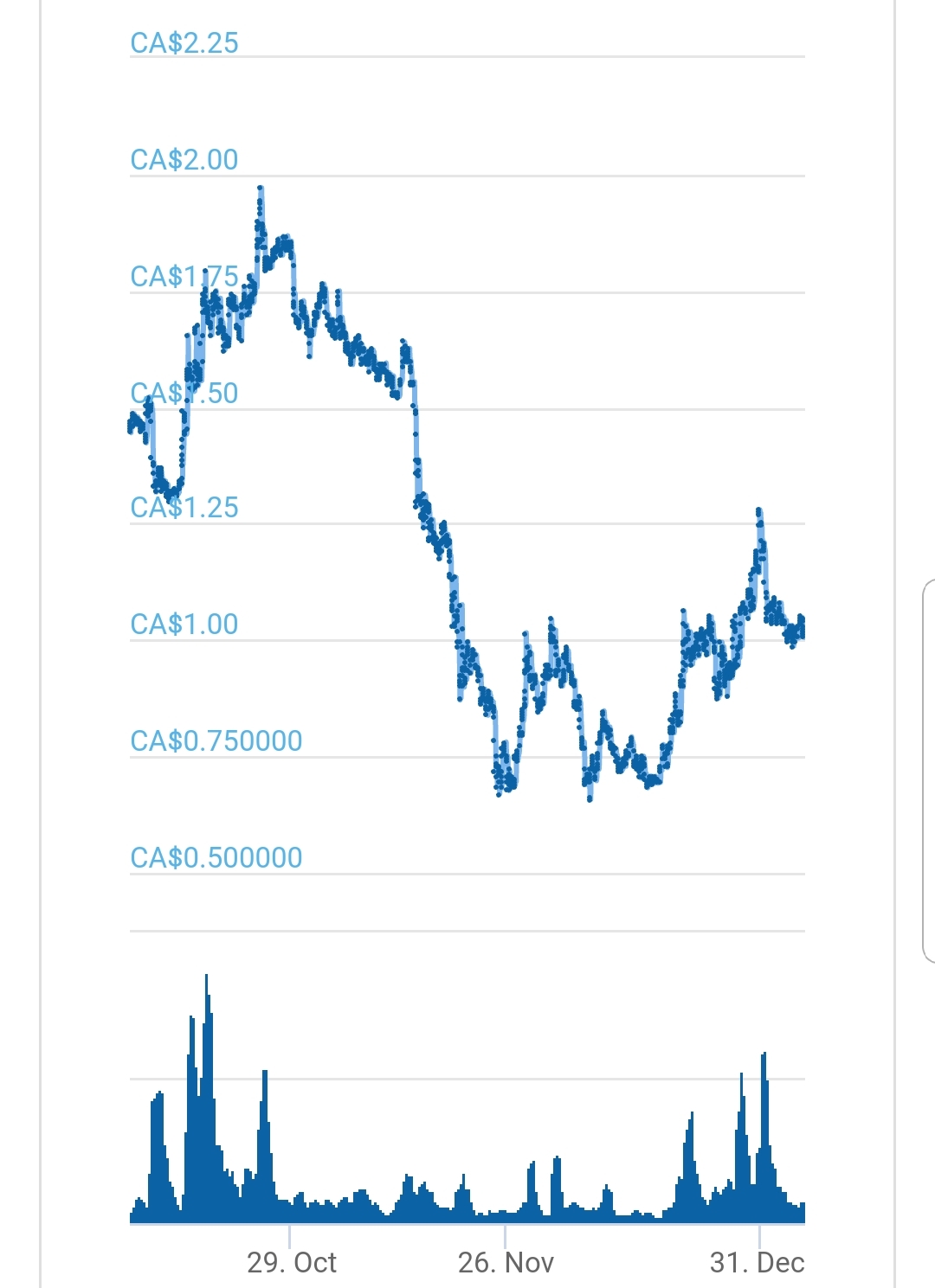 I have been watching this coin for a while and I thought I should do an update of the price while it is about a dollar Canadian.
