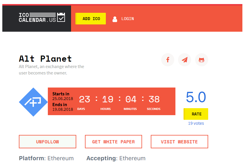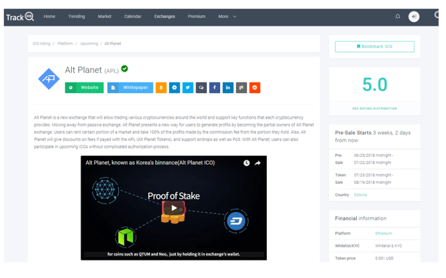 알트플래닛(Alt planet)의 해외 ICO rating 평가점수