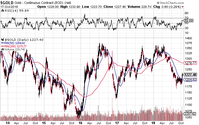 Gold's return from 2016 lows has been slow, its not likely to speed up overnight without a major market event taking place. Although it does appear to be bottoming out lately.