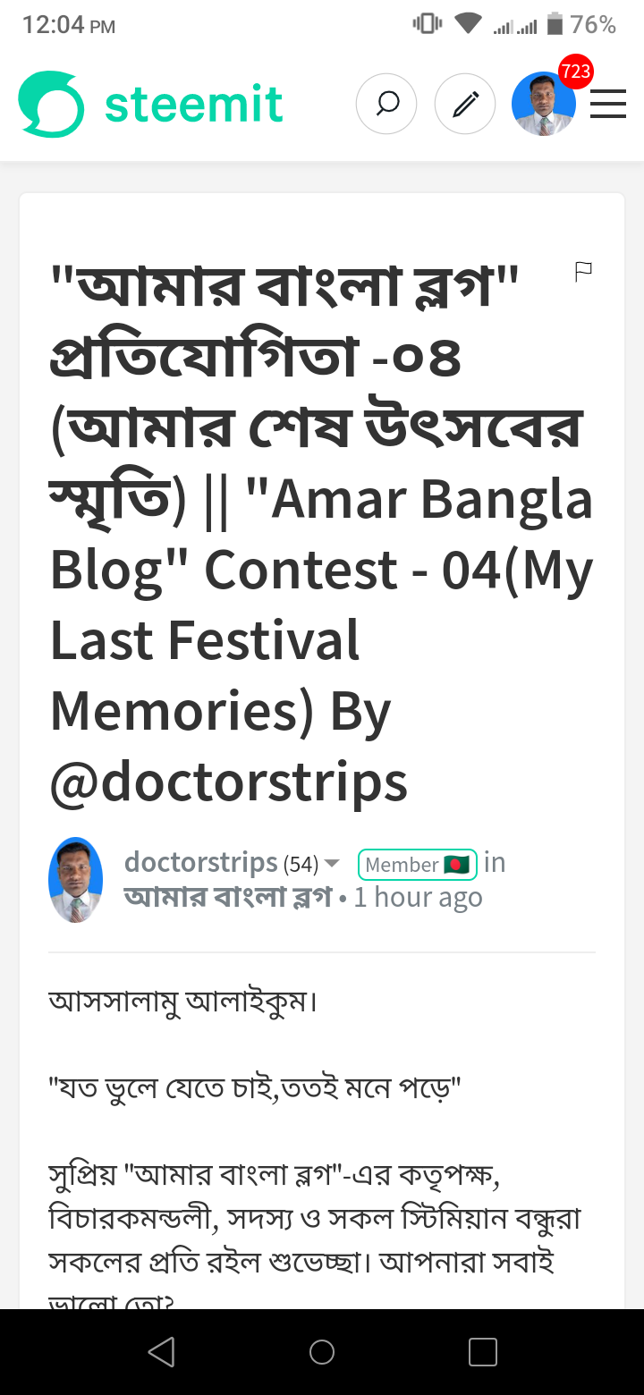 আমার বাংলা ব্লগ" প্রতিযোগিতা -০৪ ( আমার শেষ উৎসবের স্মৃতি) || পোস্ট লিংক