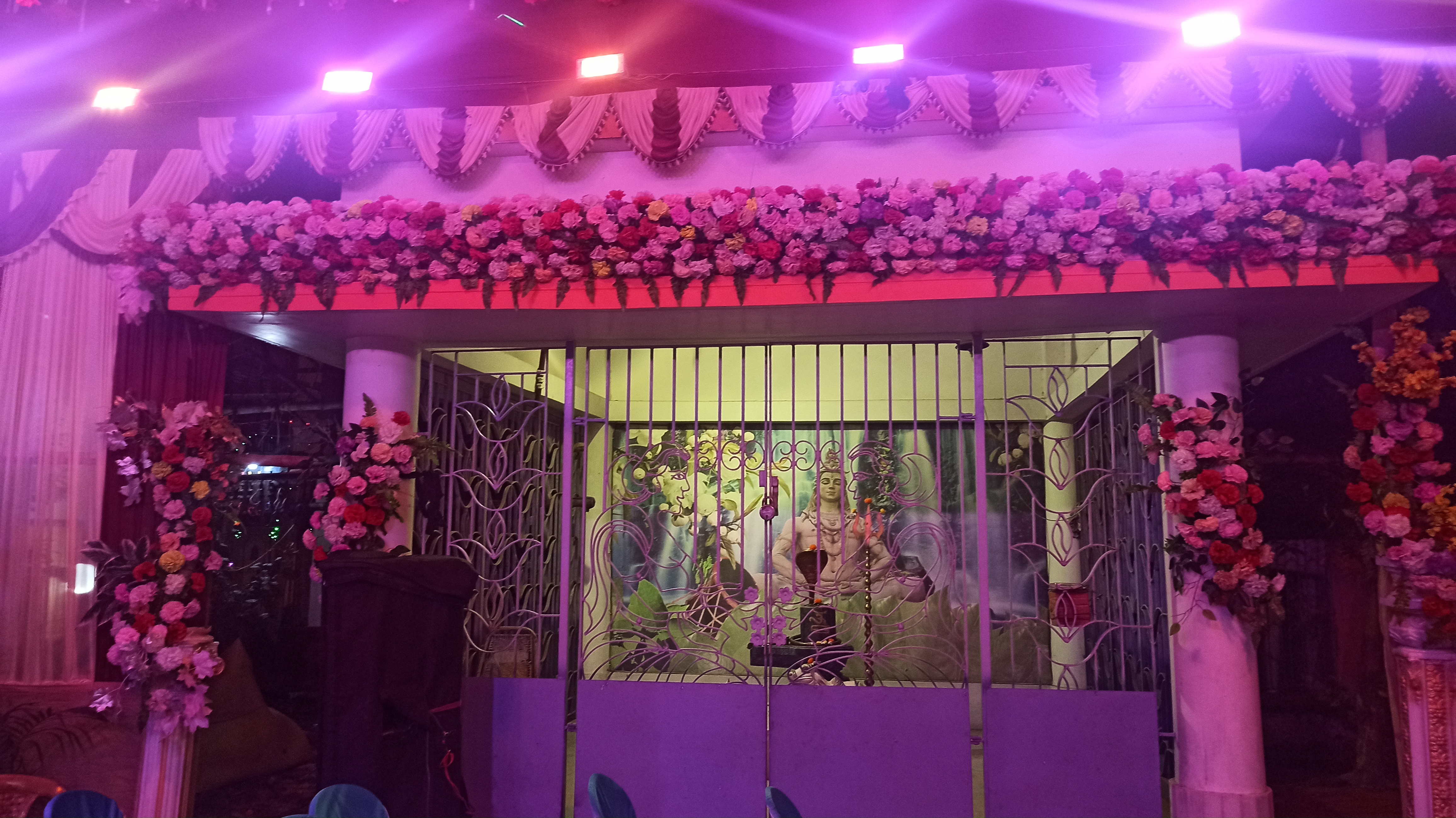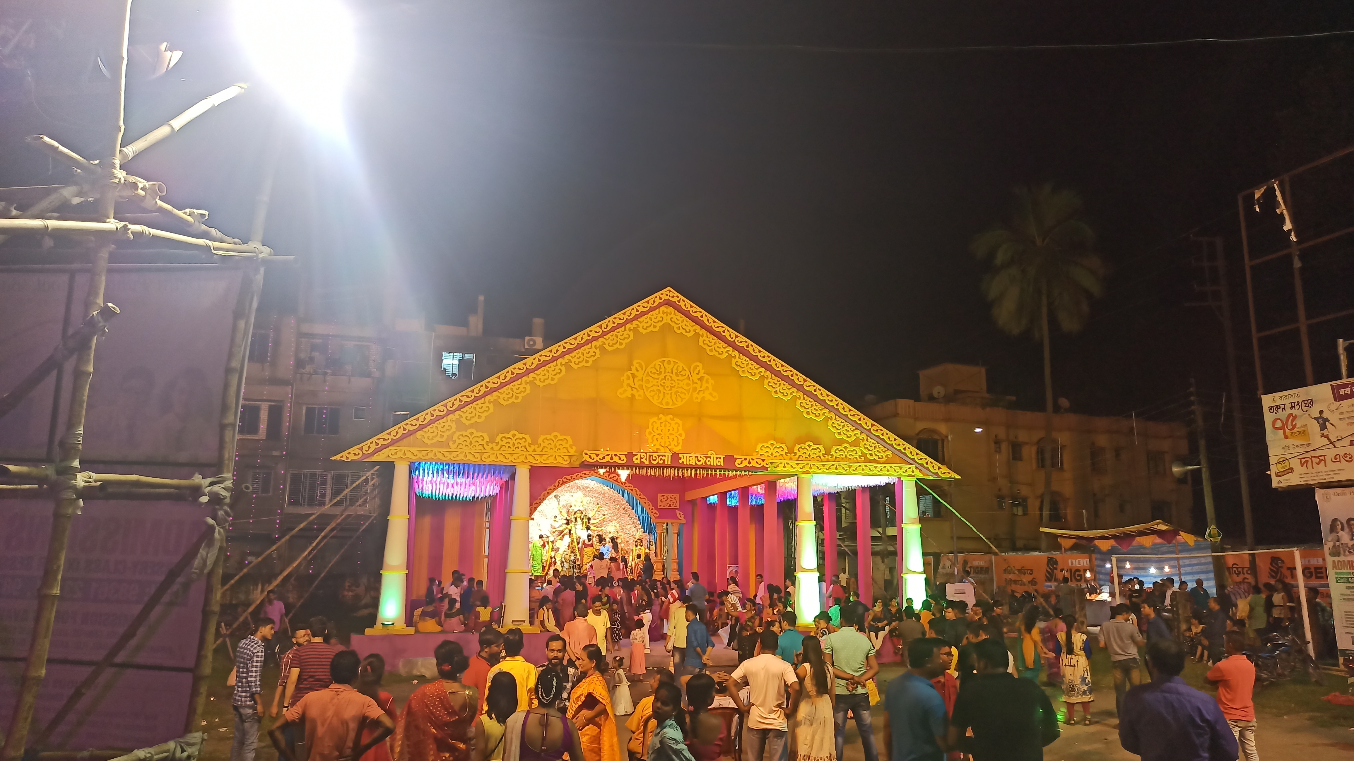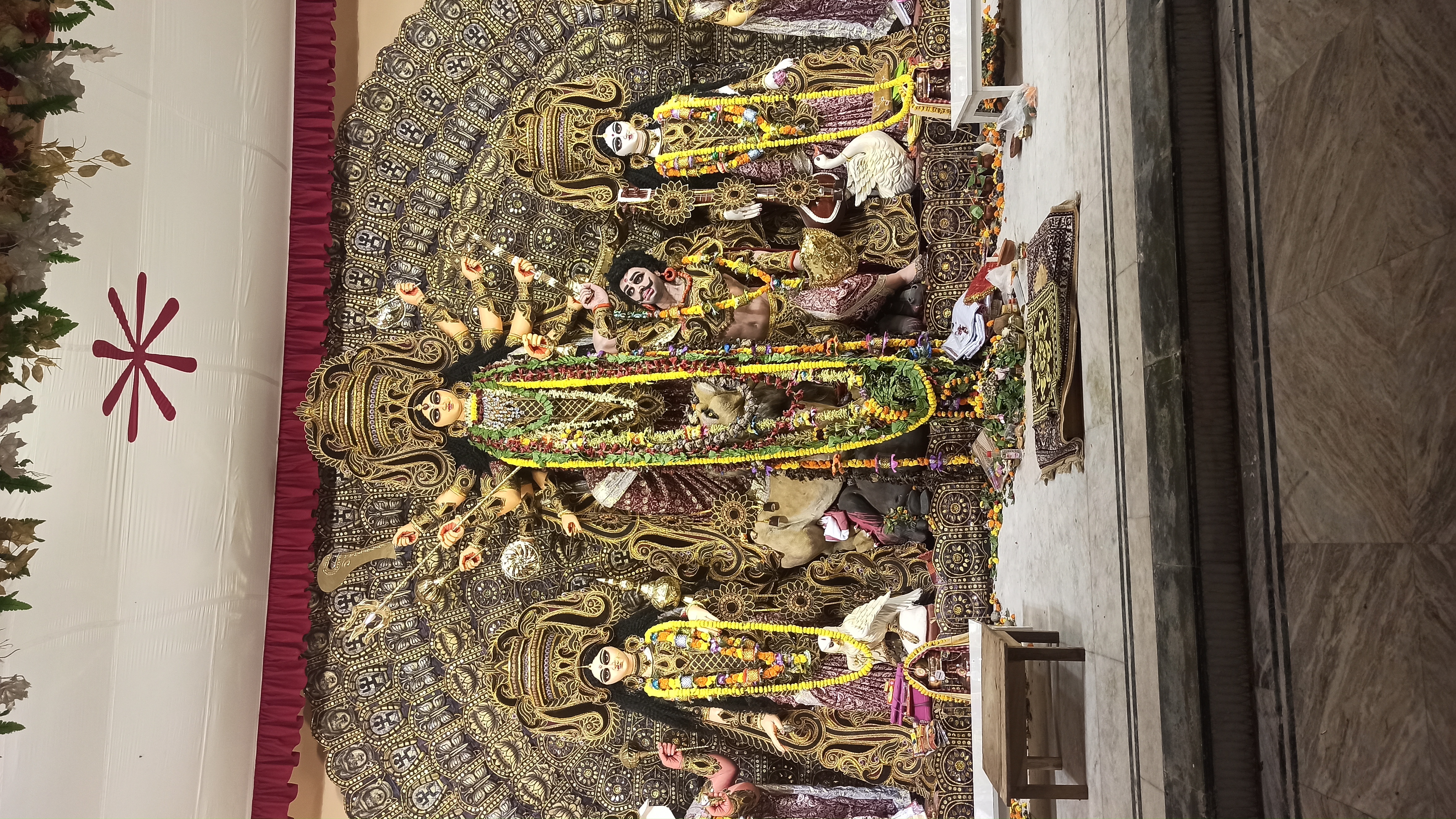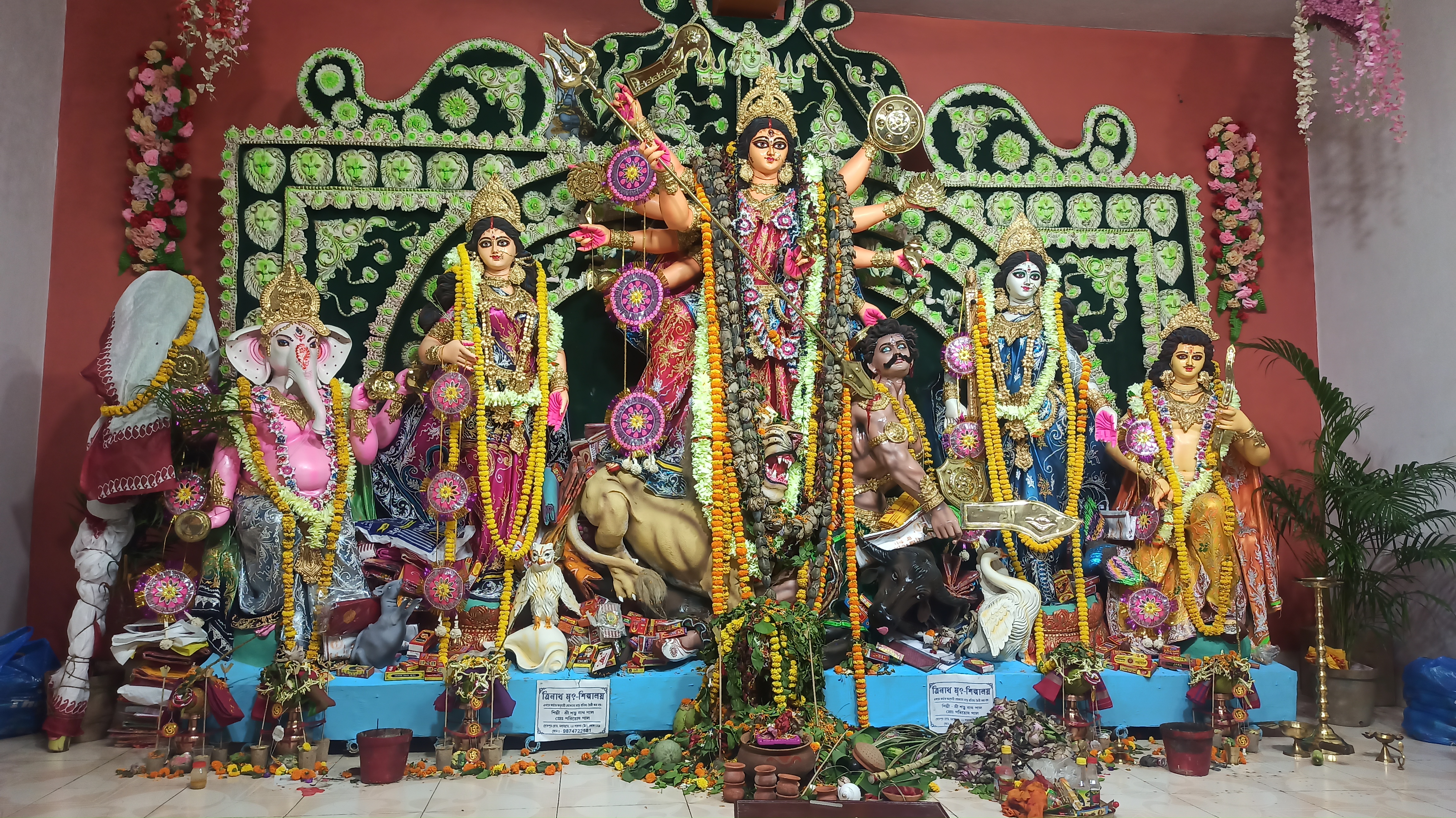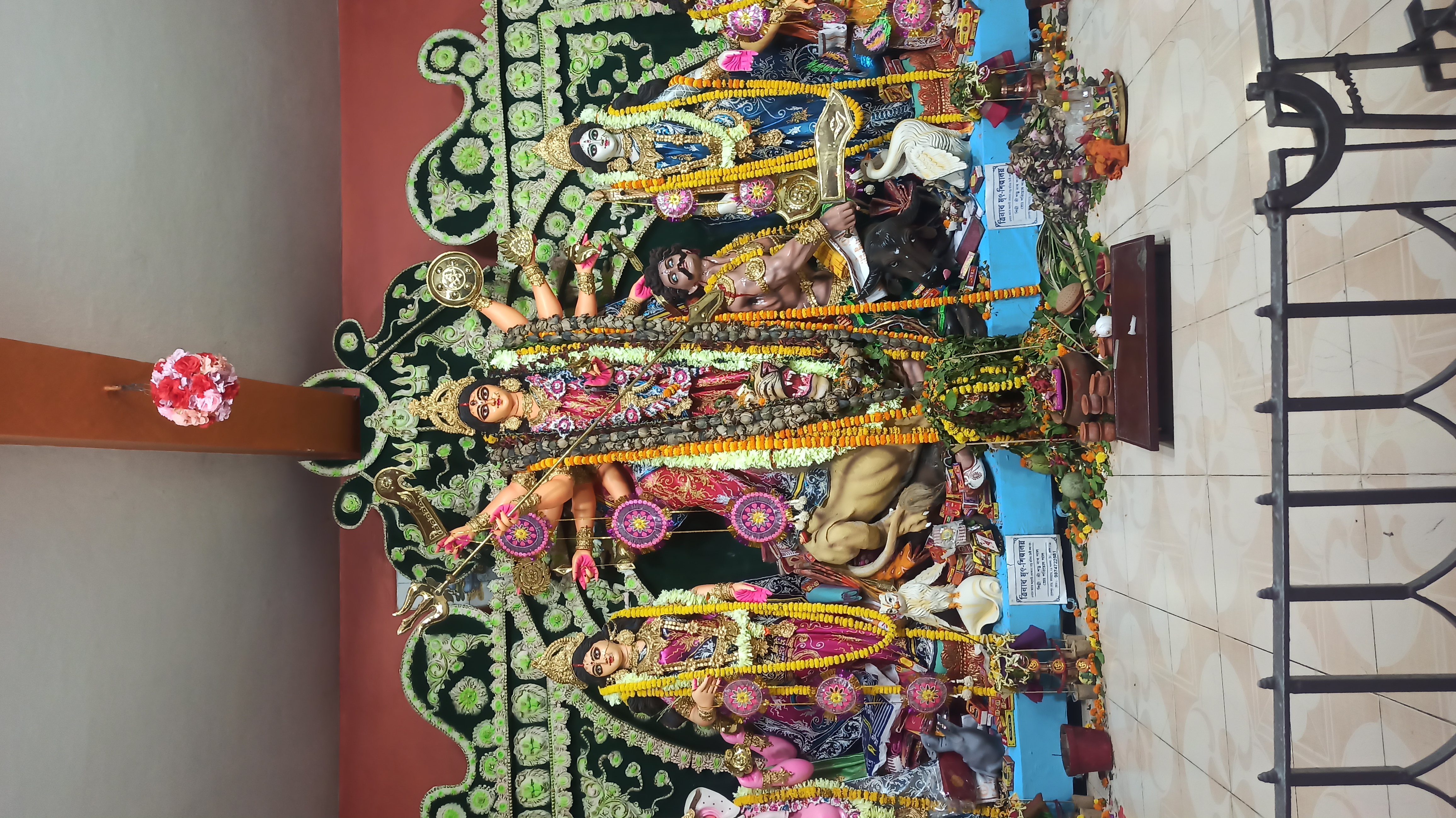 এটি মধ্যম গ্রাম চৌ মাথা মোড় রবার ফ্যাক্টরিতে তৈরি করা হয়েছে।ছোট ছোট কাগজের ফুল দিয়ে সাজানো হয়েছে। খুব একটা জাক জনক পূর্ন নয় তারপরও অনেক সুন্দর করে সাজানো হয়েছে। এত সুন্দর মায়ের মূর্তি তৈরি করেছেন শিল্পী হরিপদ পাল। বরণ করার আগের মুহূর্তের ফটোগ্রাফি।