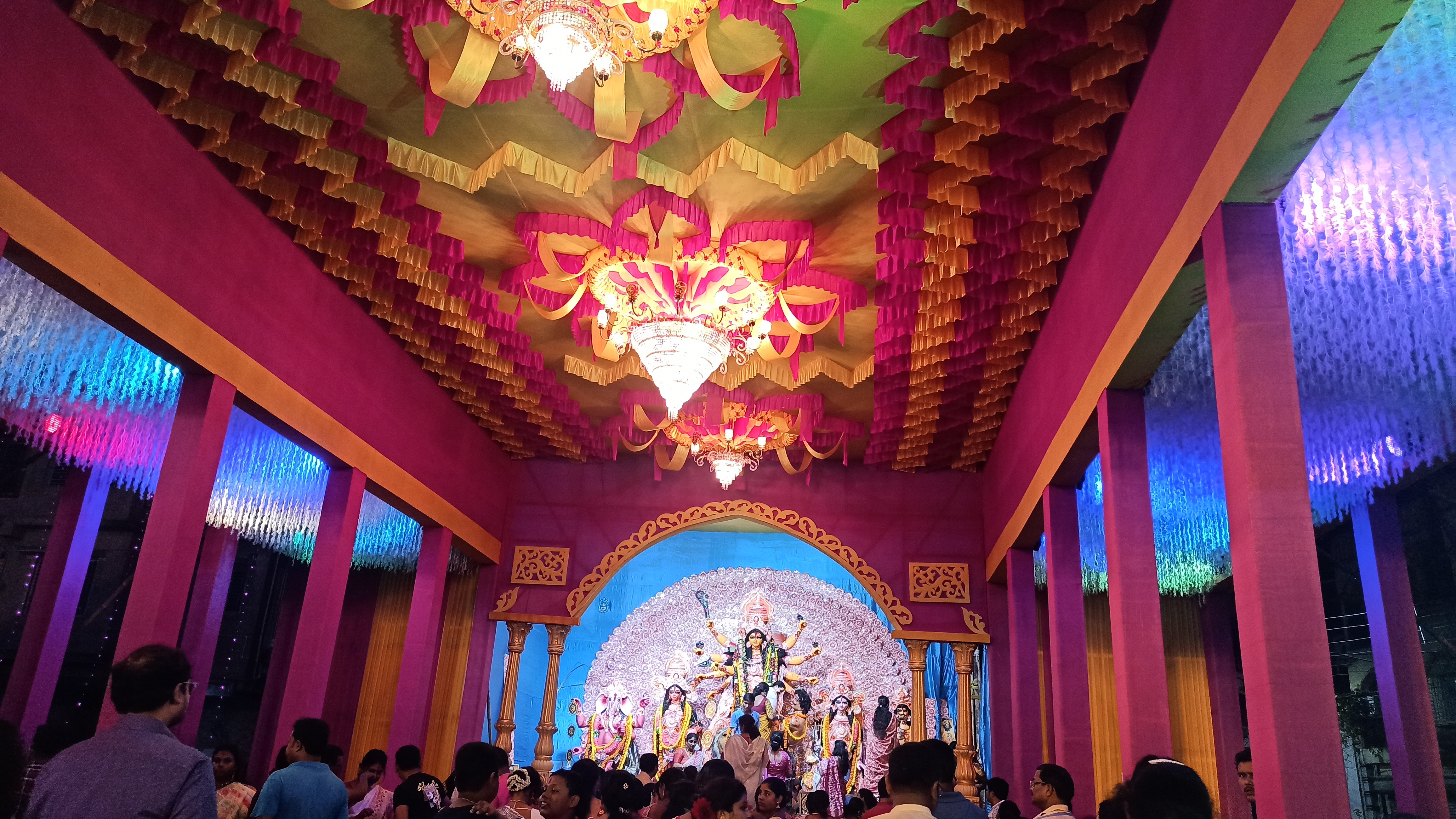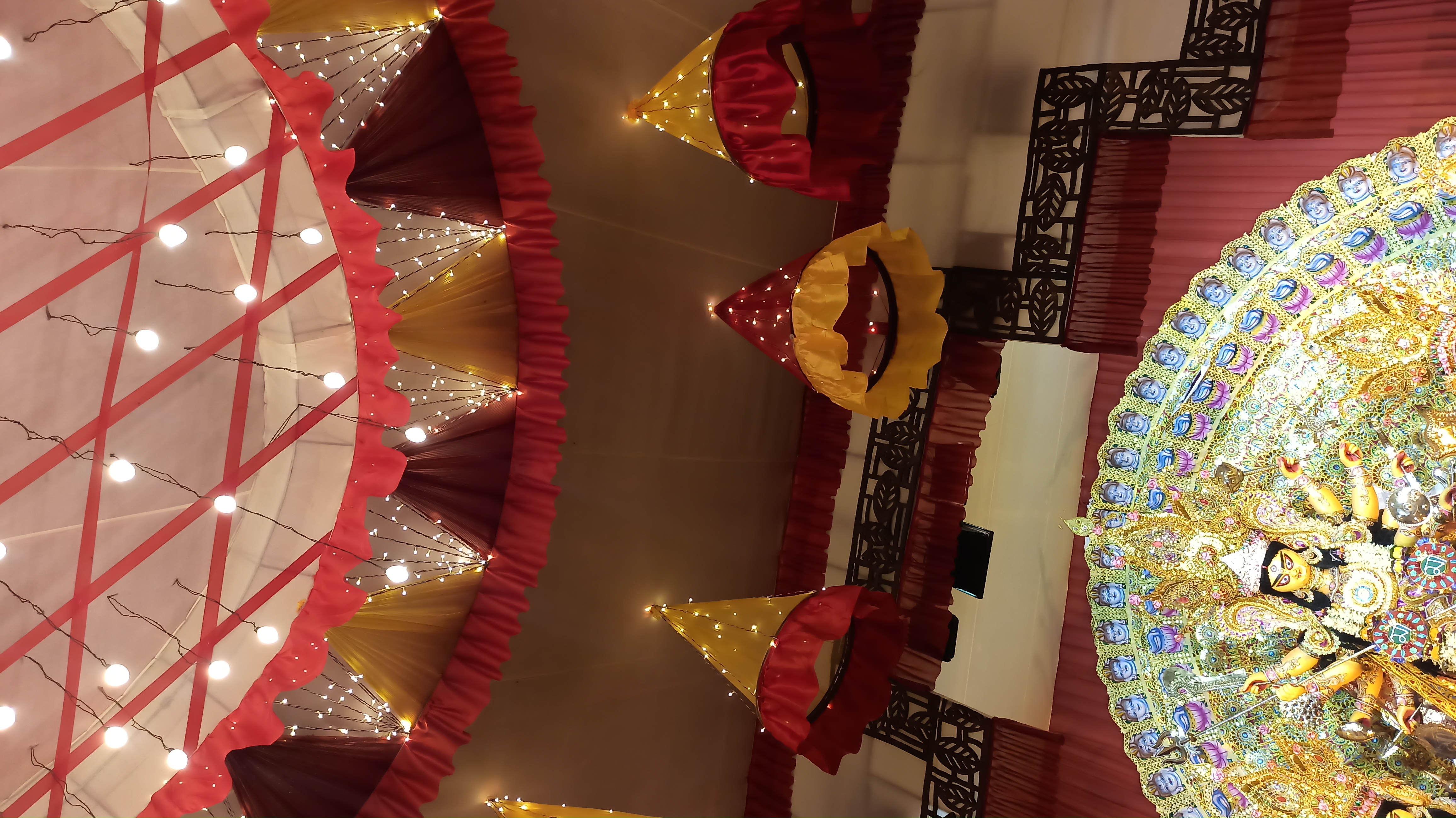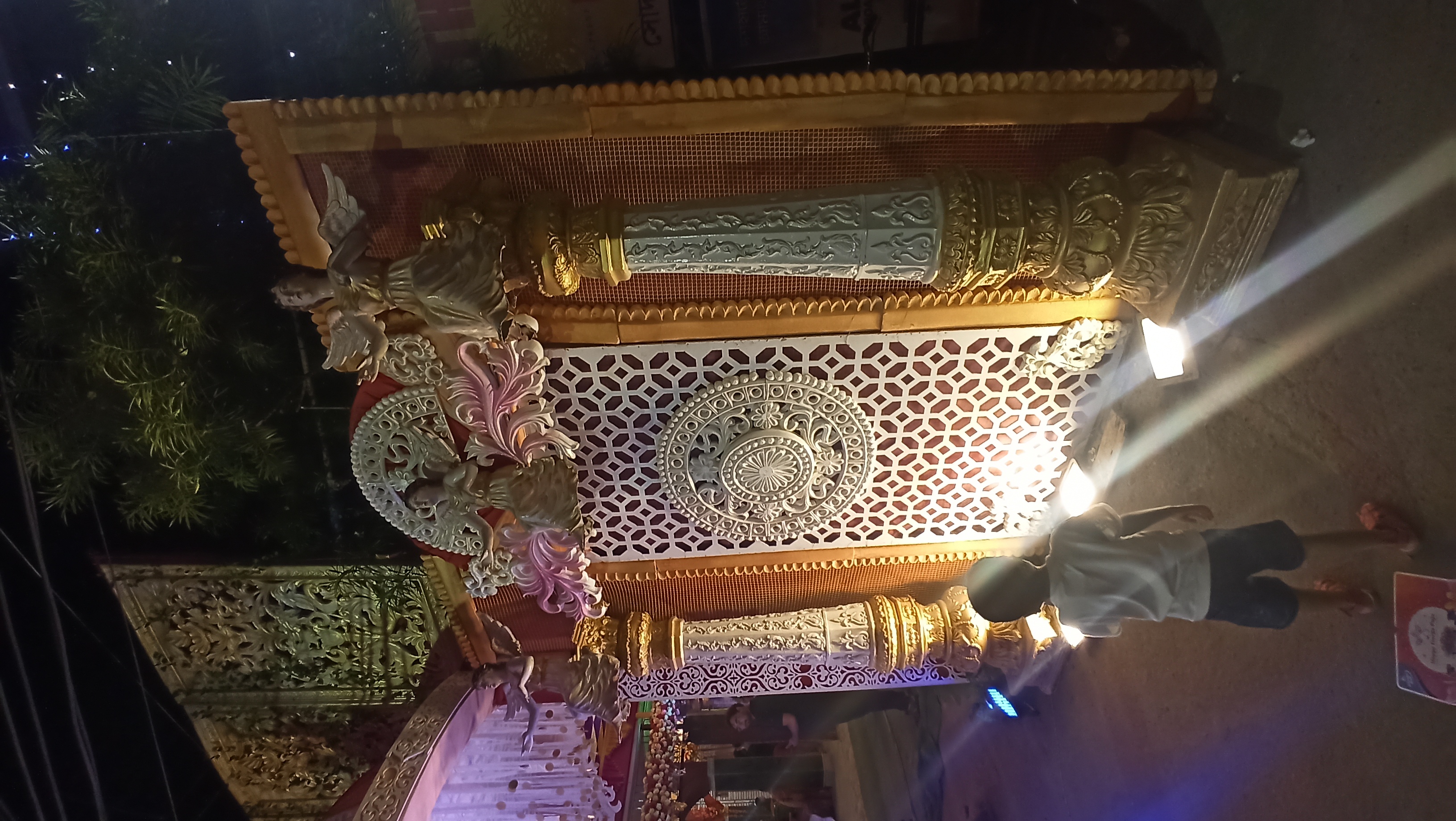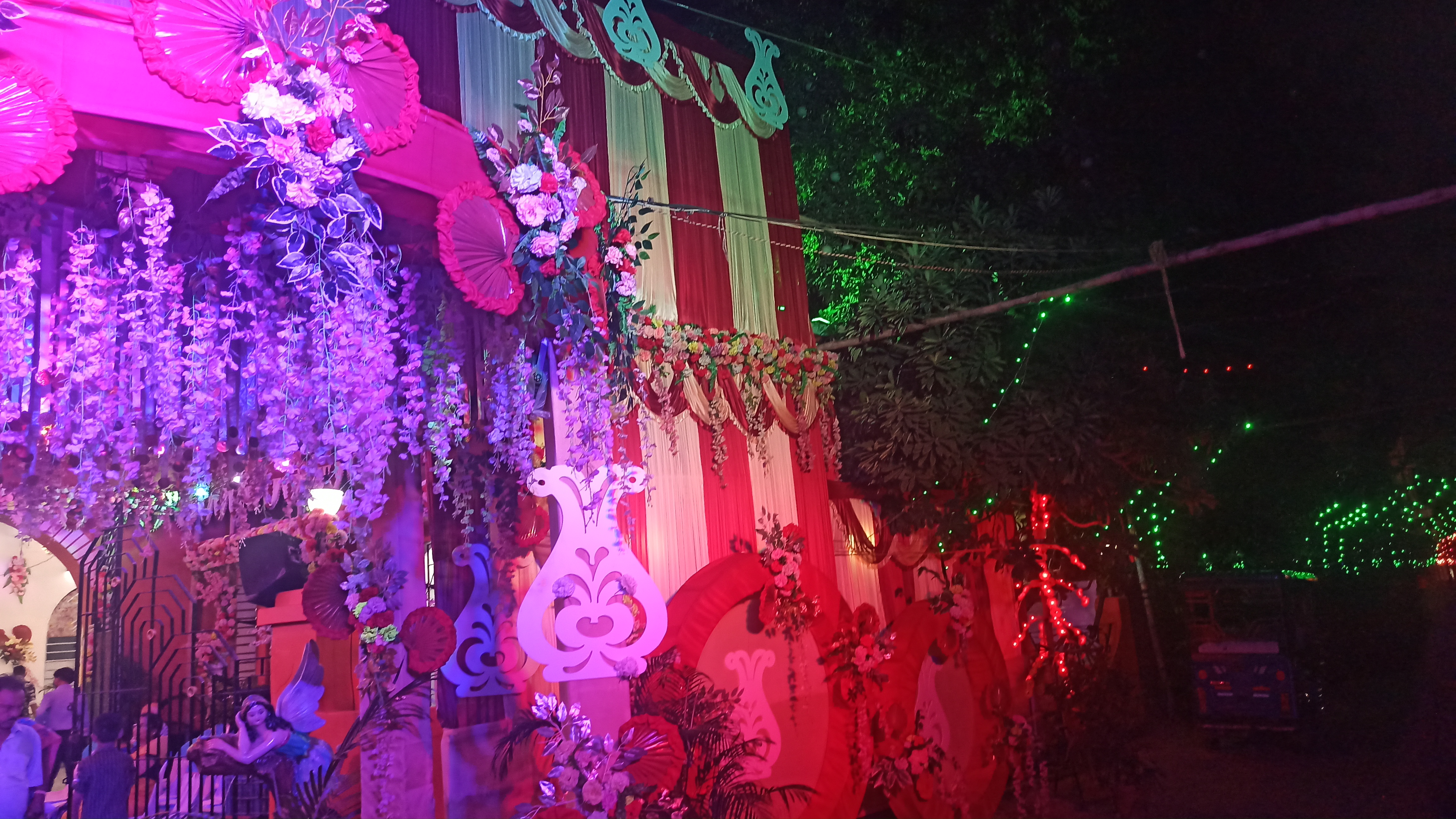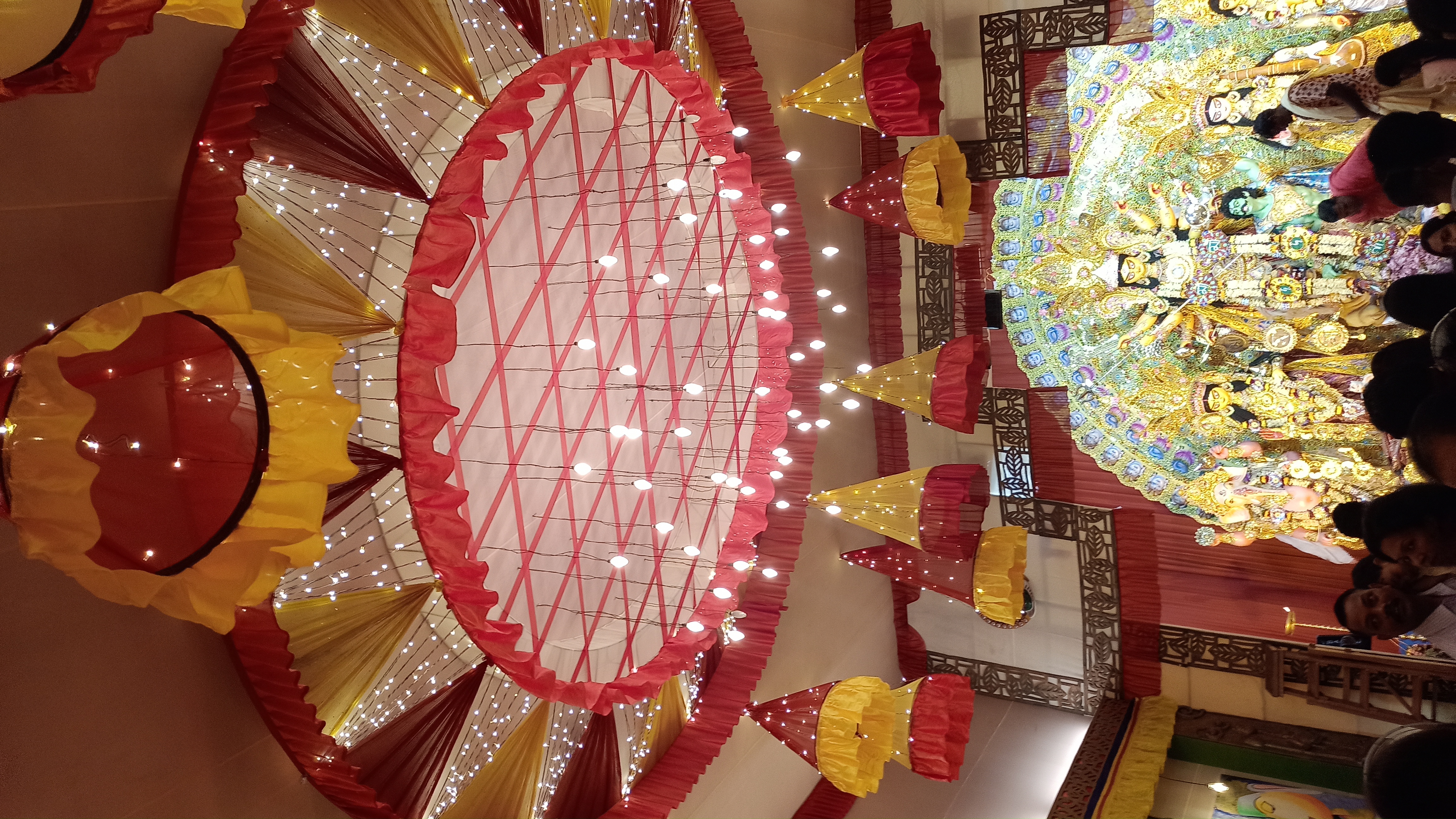 এই প্যান্ডেলের ভেতরে ঢুকতেই চোখে পড়বে দুই পাশে দুটি জল পরী বানানো হয়েছে। আবার বিভিন্ন ধরনের লাইট বসানো হয়েছে । আবার মাকে অপরূপ সাজে সাজানো হয়েছে