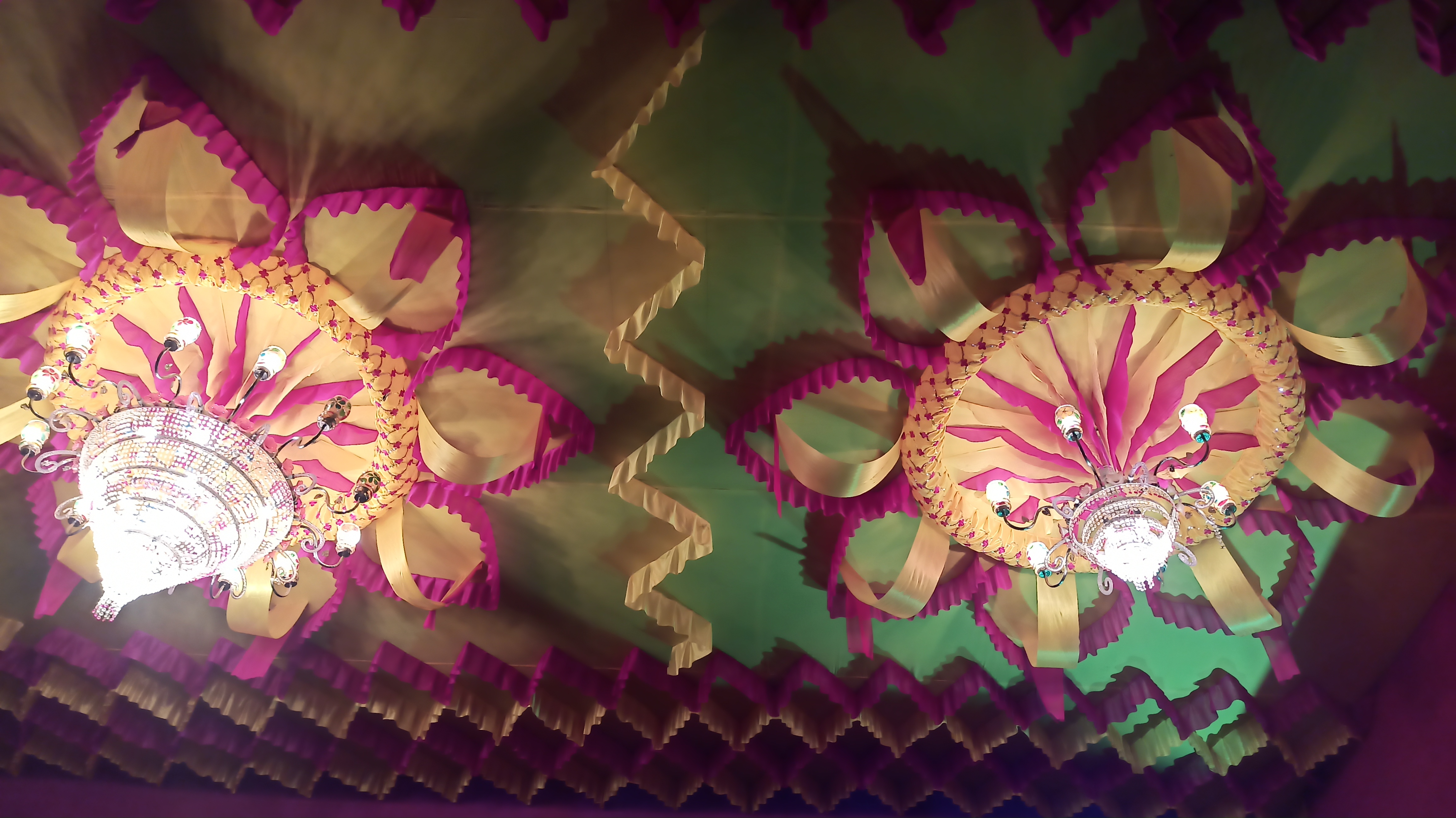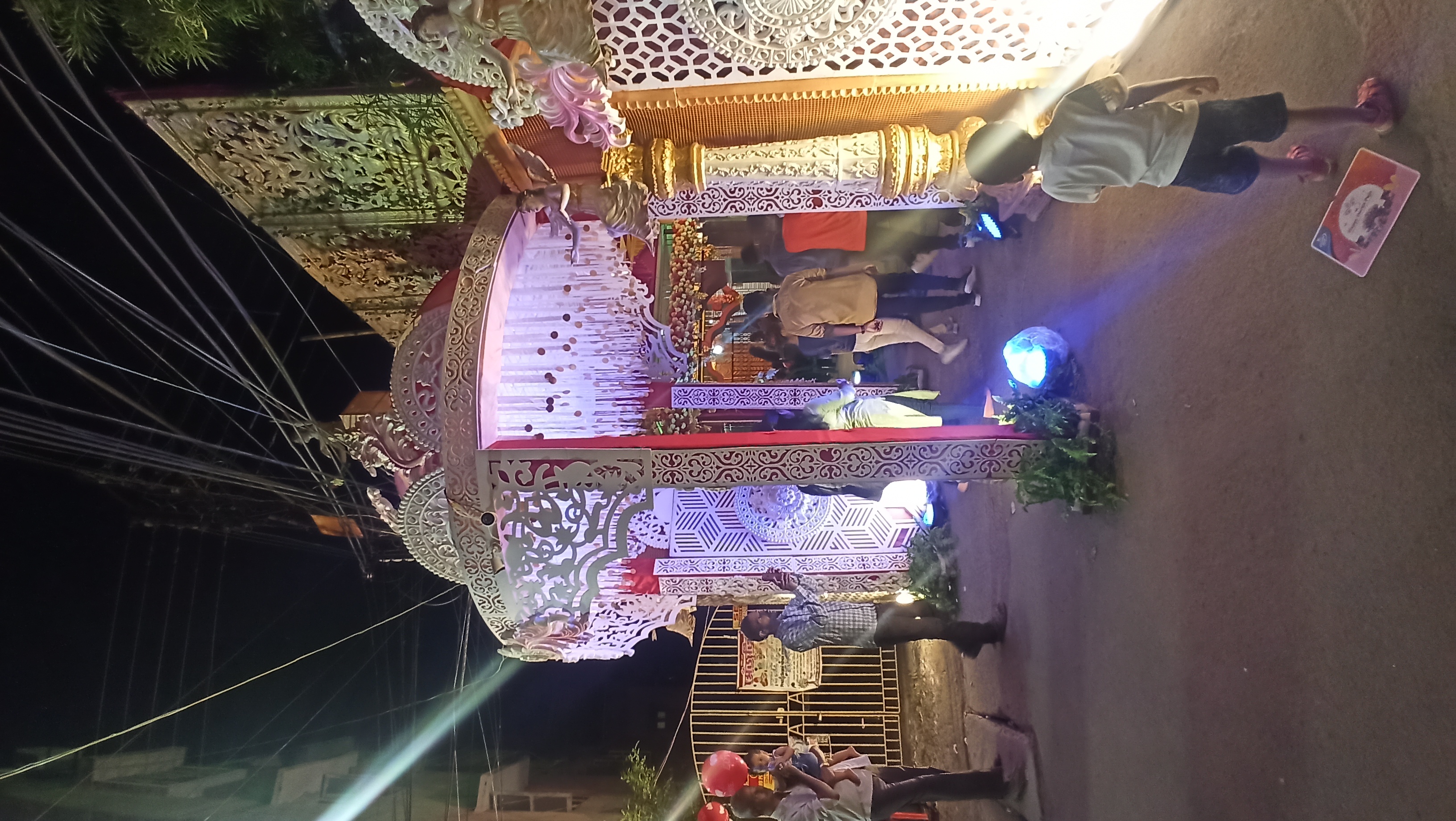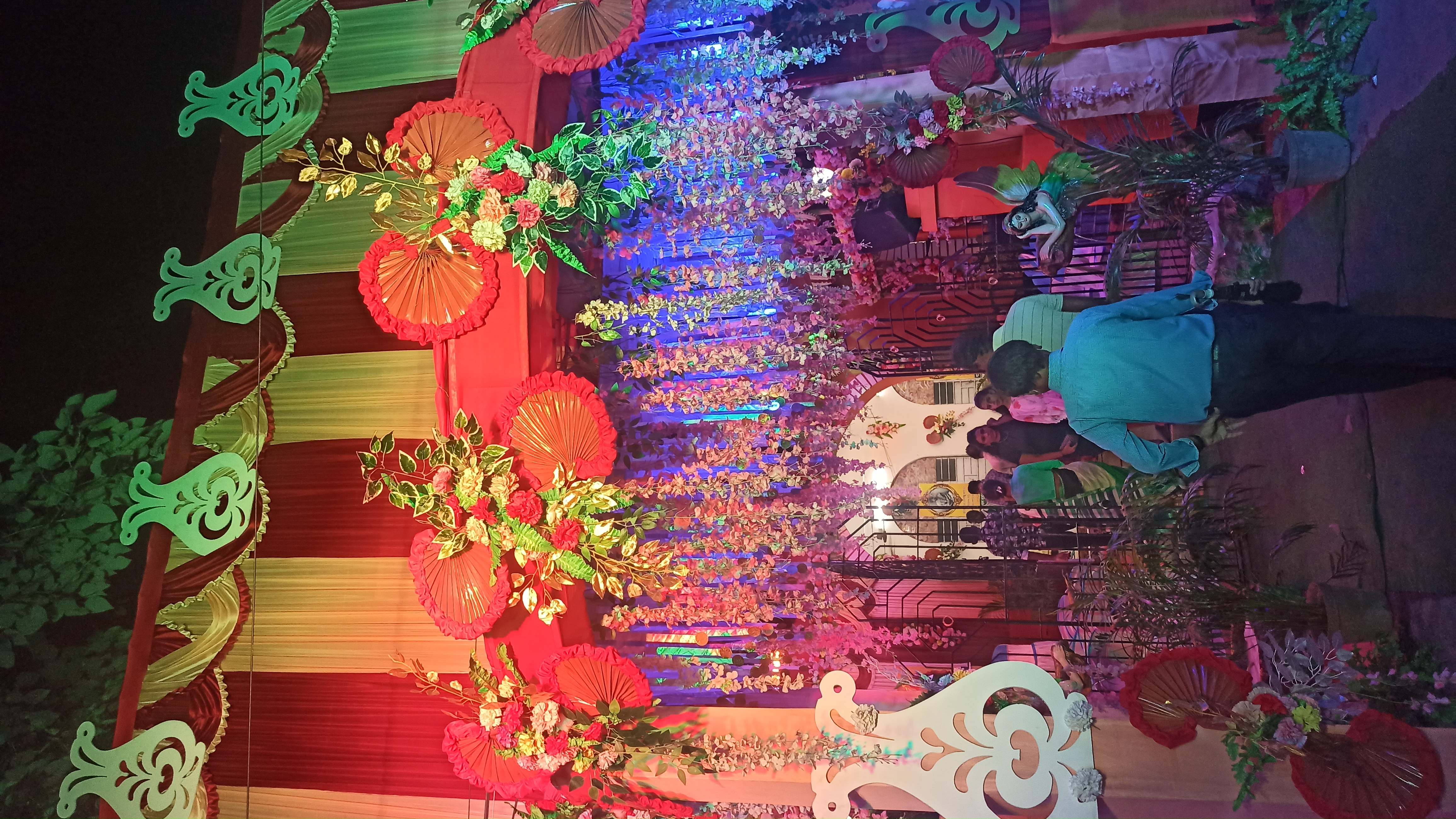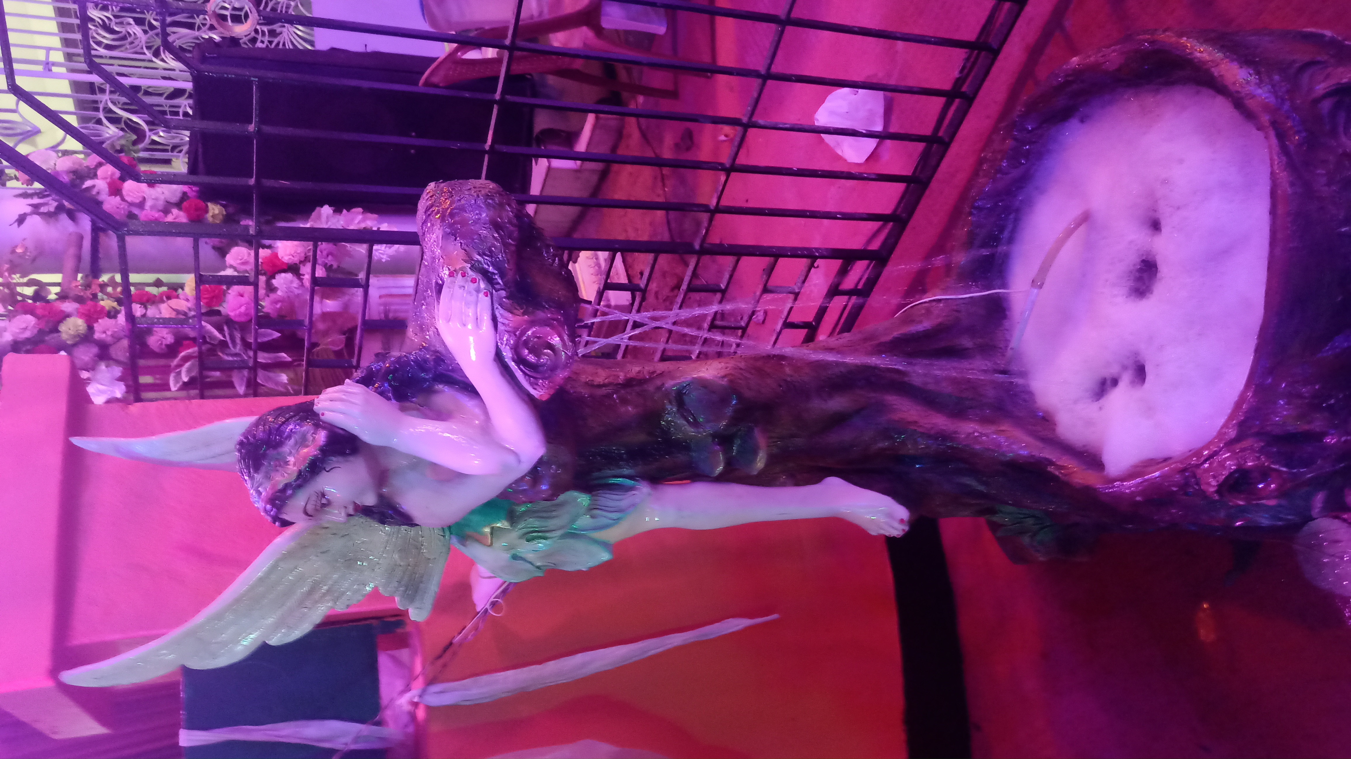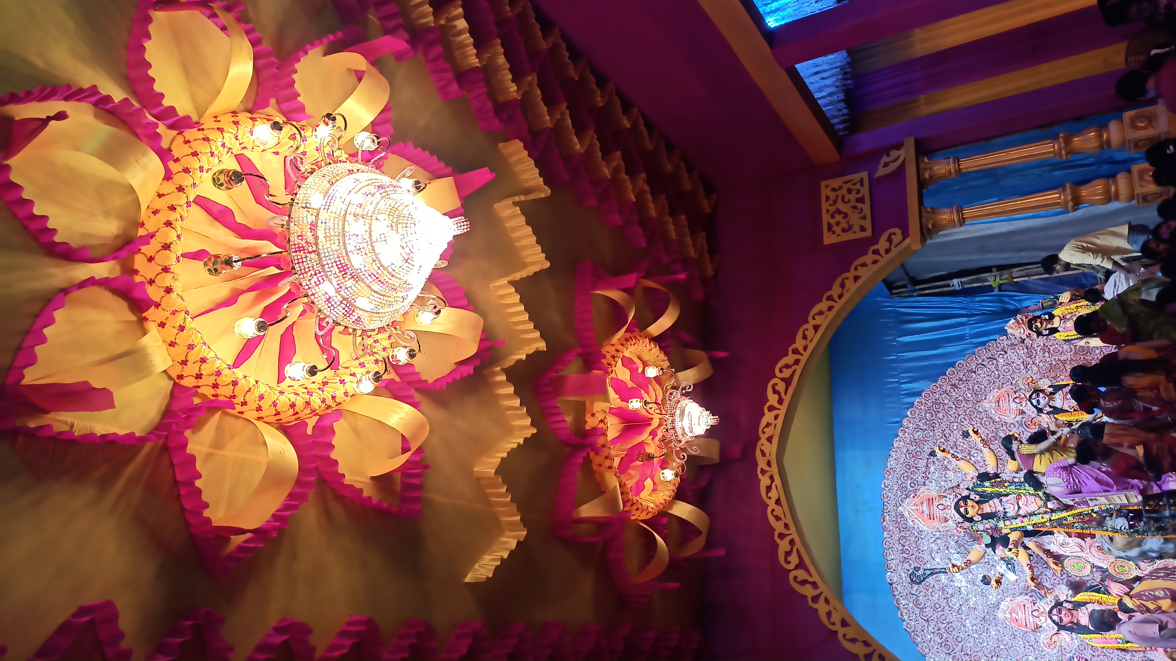 এই প্যান্ডেলের ভেতরে ঢুকতেই চোখে পড়বে দুই পাশে দুটি জল পরী বানানো হয়েছে। আবার বিভিন্ন ধরনের লাইট বসানো হয়েছে । আবার মাকে অপরূপ সাজে সাজানো হয়েছে