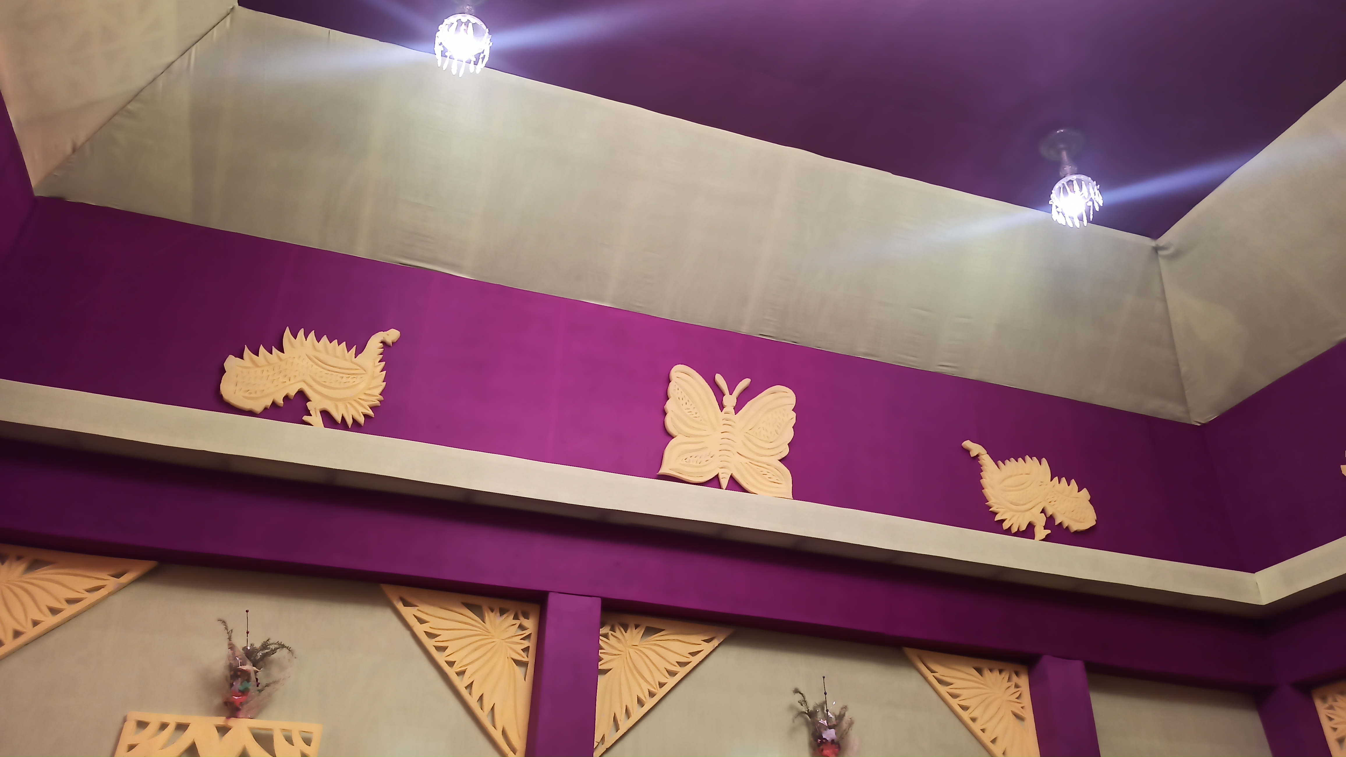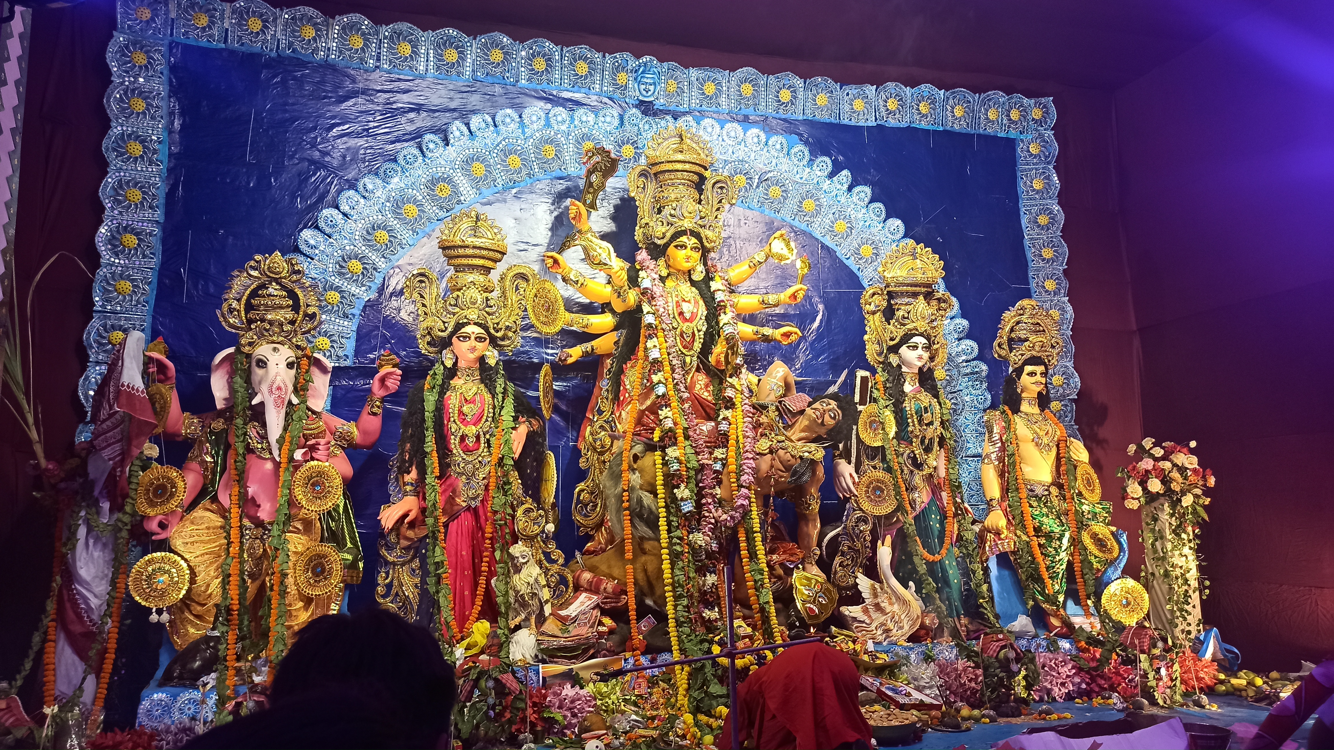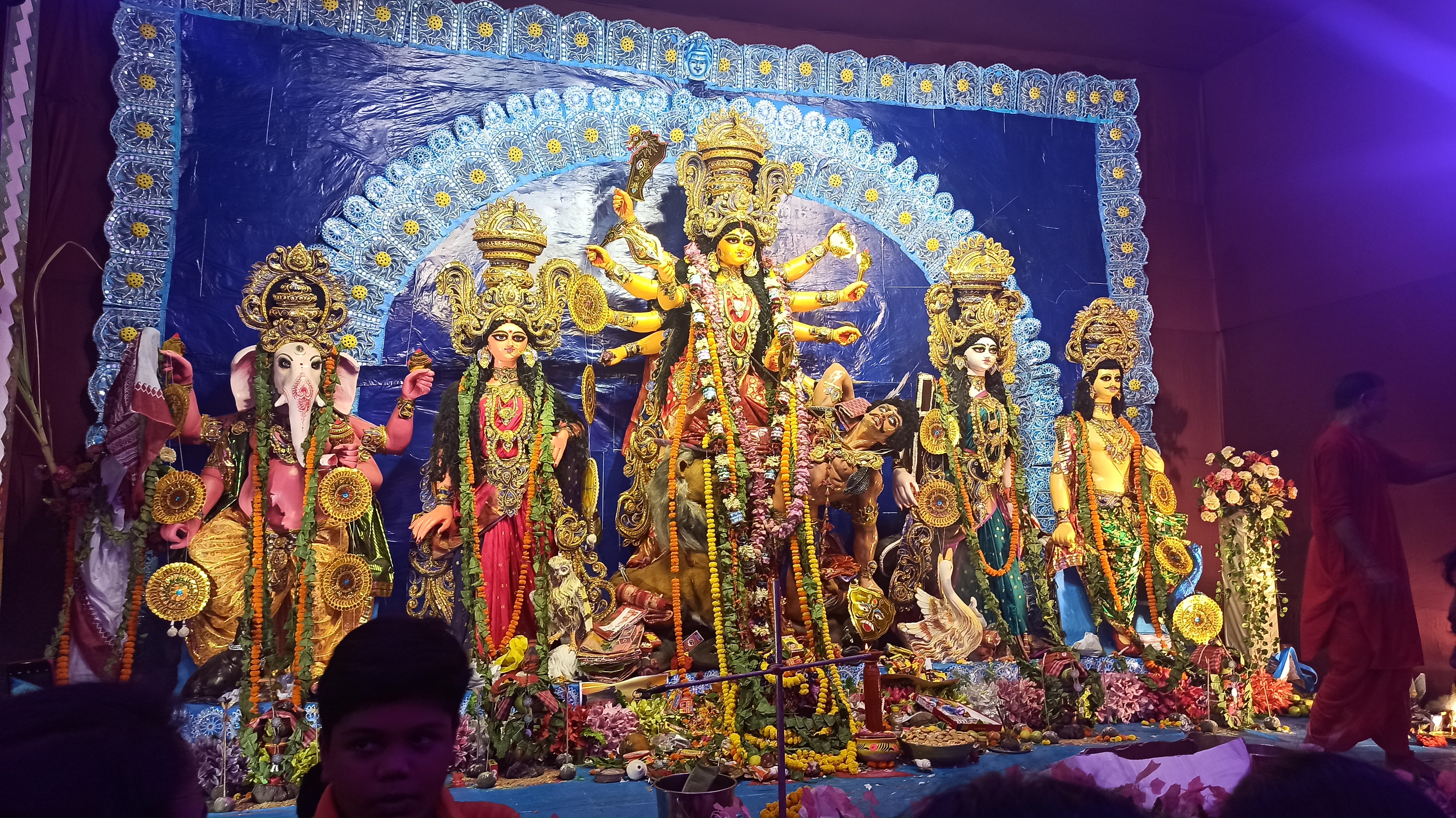বারাসাত শেত পুকুর মানবতা ক্লাবের পক্ষ থেকে সার্বজনীন দুর্গোৎসব আয়োজন করা হয়েছে। এখানের প্যান্ডেল দেখলে সেই ছেলেবেলার কথা মনে পড়ে যায়। এখানে রবীন্দ্রনাথের সহজ পাঠের থিম বানানো হয়েছে। প্যান্ডেলের ভিতরে ঢুকতেই রবীন্দ্রনাথের মূর্তি চোখে পড়বে। প্যান্ডেলের ভেতরে দুপাশে ছোট ছোট মূর্তি বানানো হয়েছে সেগুলো পড়ে আপনাদের সাথে শেয়ার করছি। এরপর ভেতরে ঢুকতেই মায়ের তেজস্বী রূপ চোখে পড়বে। এত সুন্দর প্রতিমা তৈরি করেছেন শিল্পী মোহন বাঁশি রুদ্র পাল ও তপন রুদ্র পাল। প্যান্ডেলের ভেতরে চারপাশে। ছেলে বেলার সেই কারুকাজ করা।