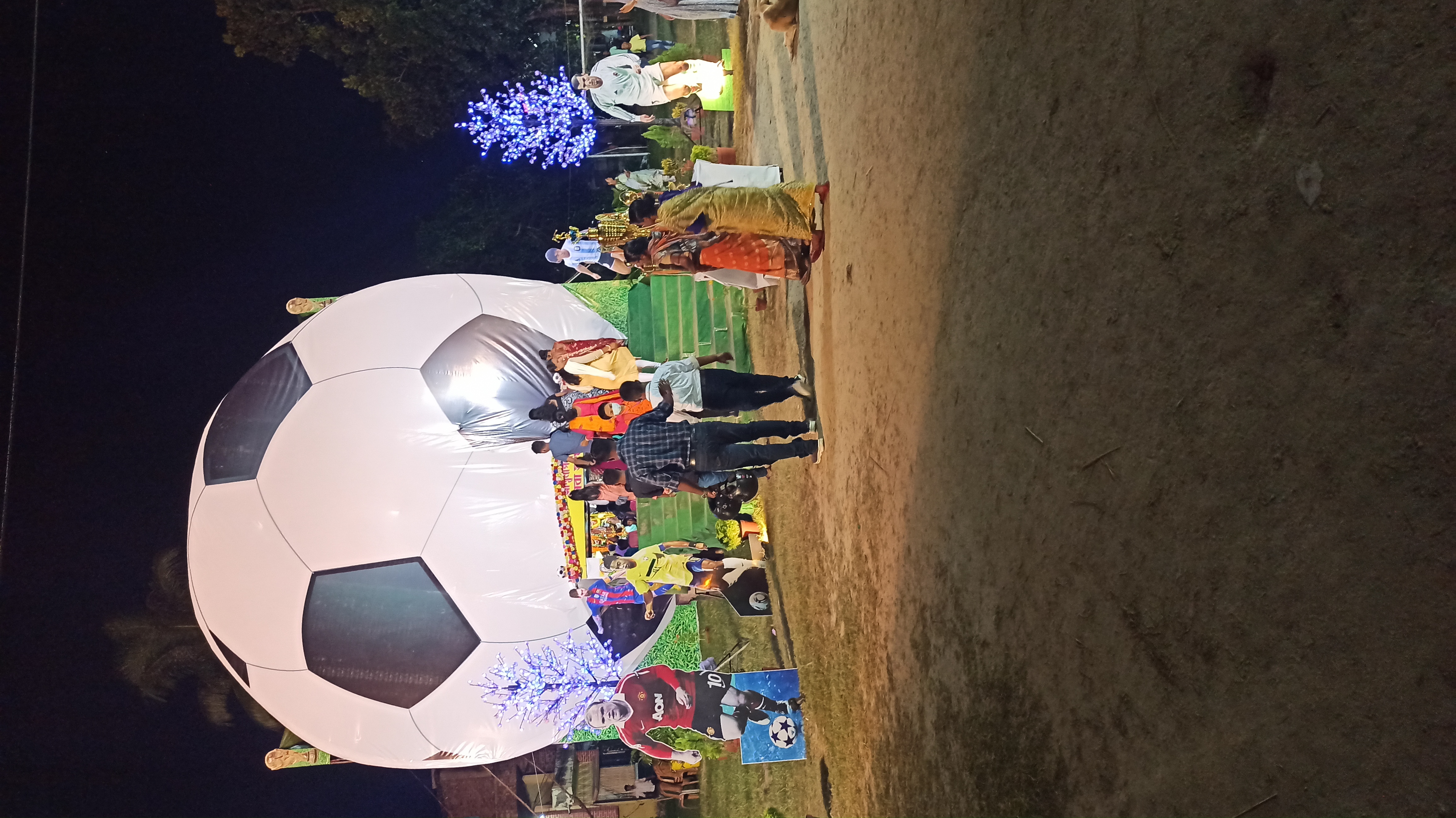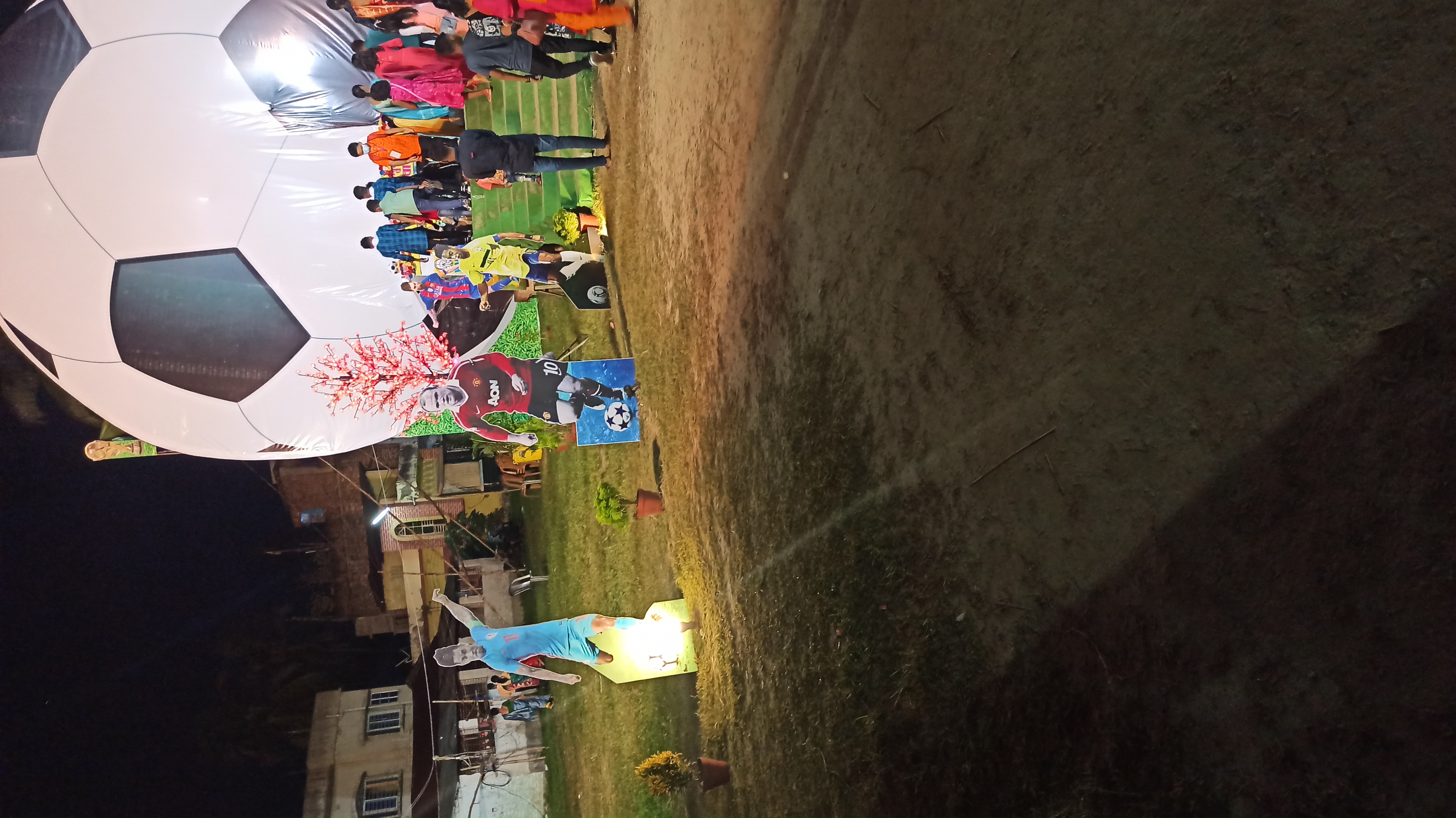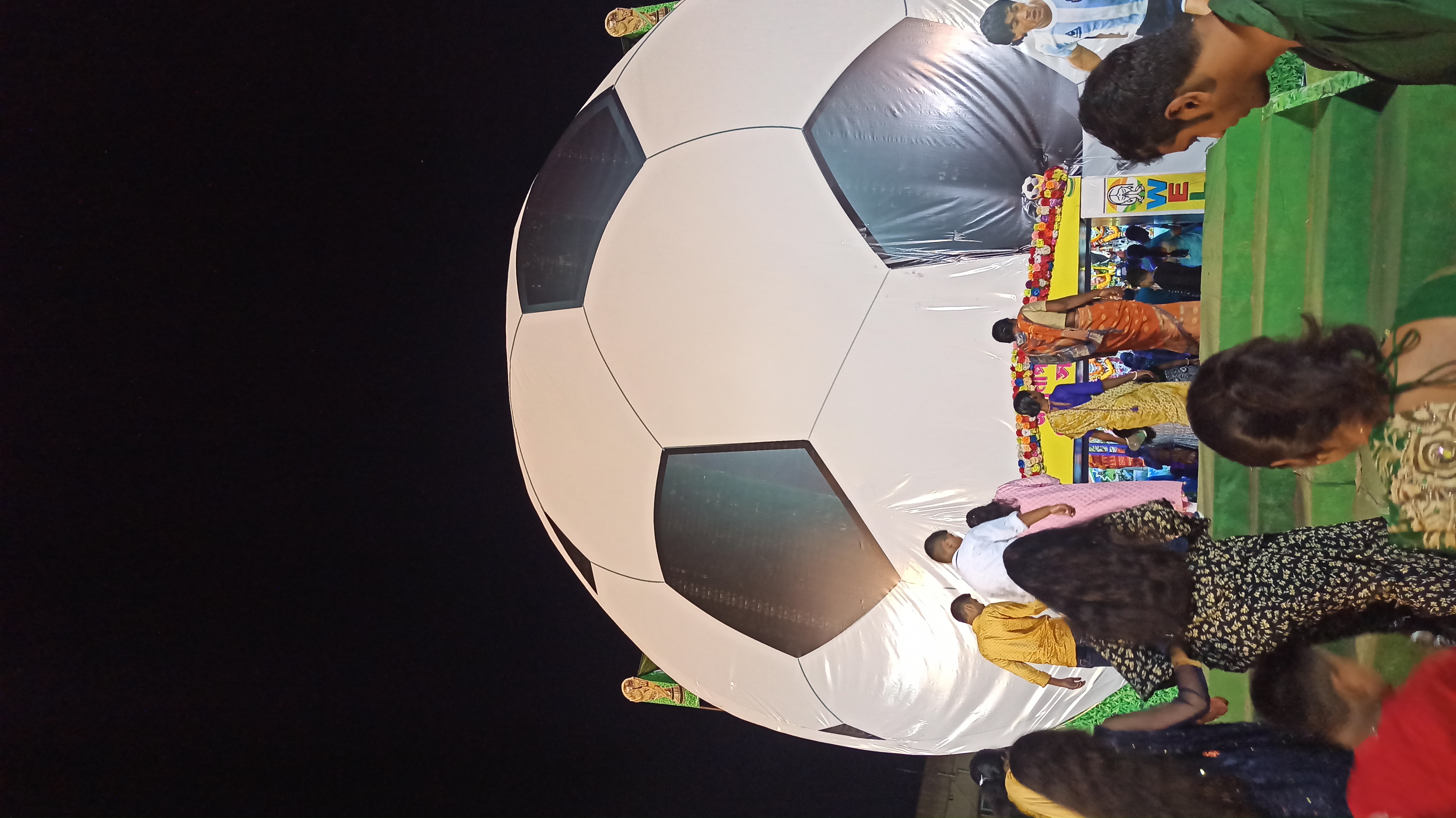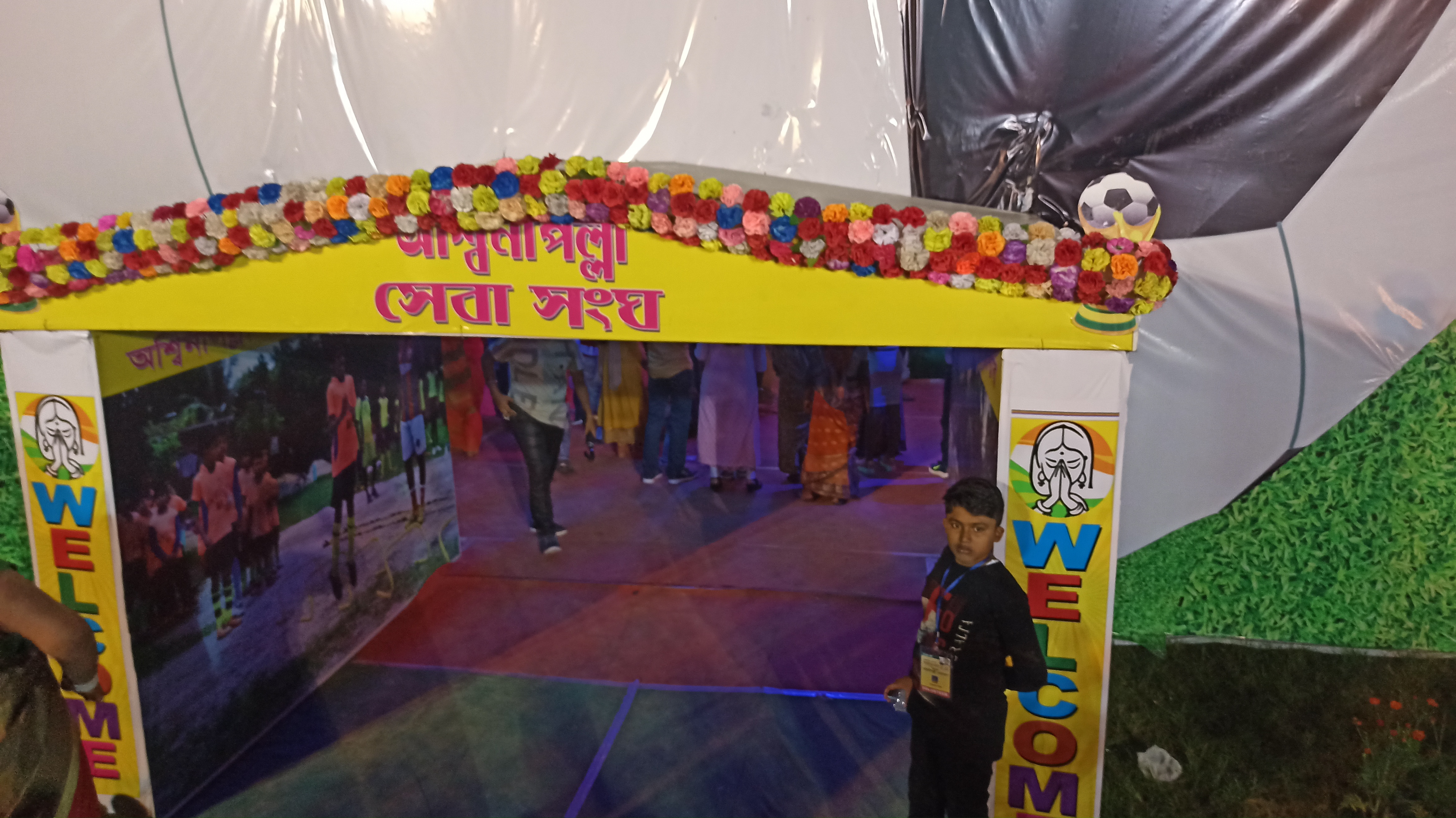 এখানে ফুটবলের আদলে তৈরি করা হয়েছে। প্যান্ডেলের ভেতরে প্রবেশ করতে চোখে পড়বে ফুটবল খেলোয়াড় ছবি। ভেতরে প্রবেশ করতেই চোখে পড়বে মায়ের তেজস্বী সেই রূপ।
