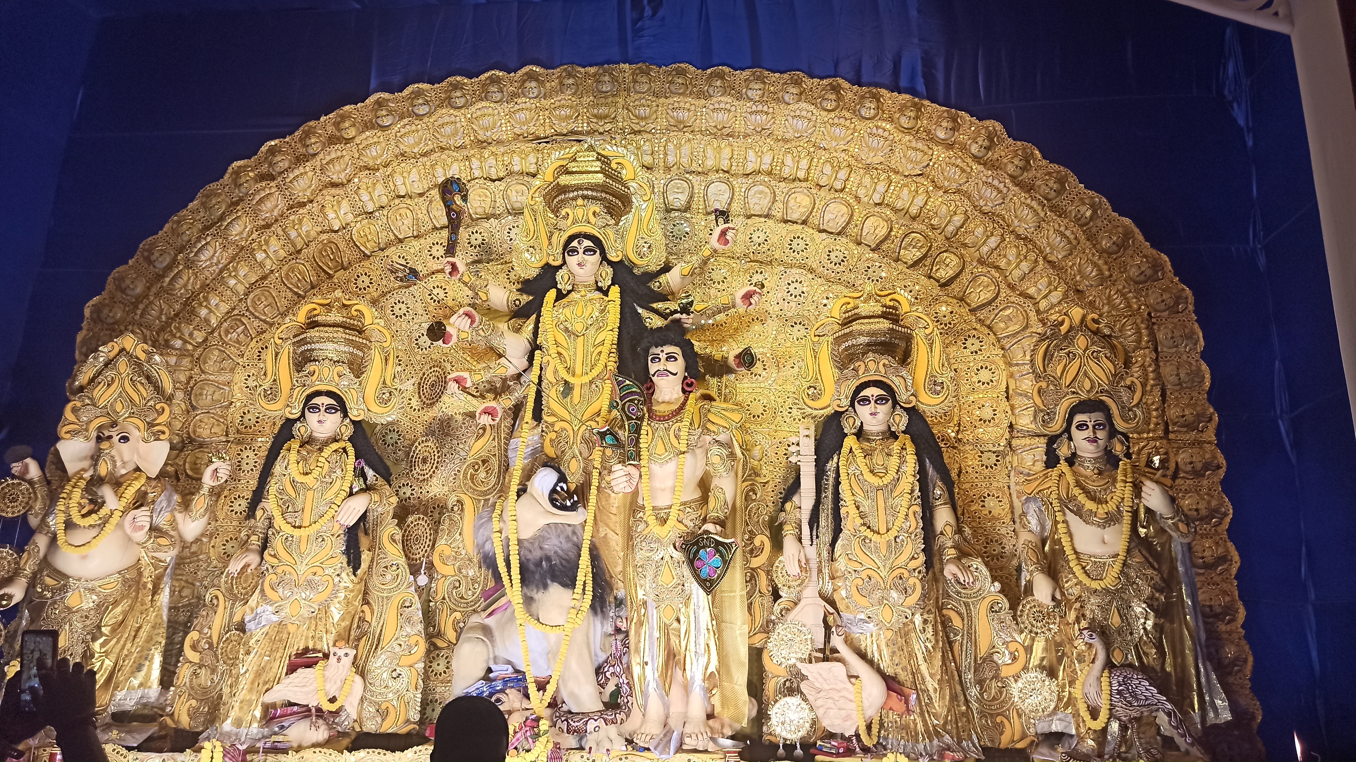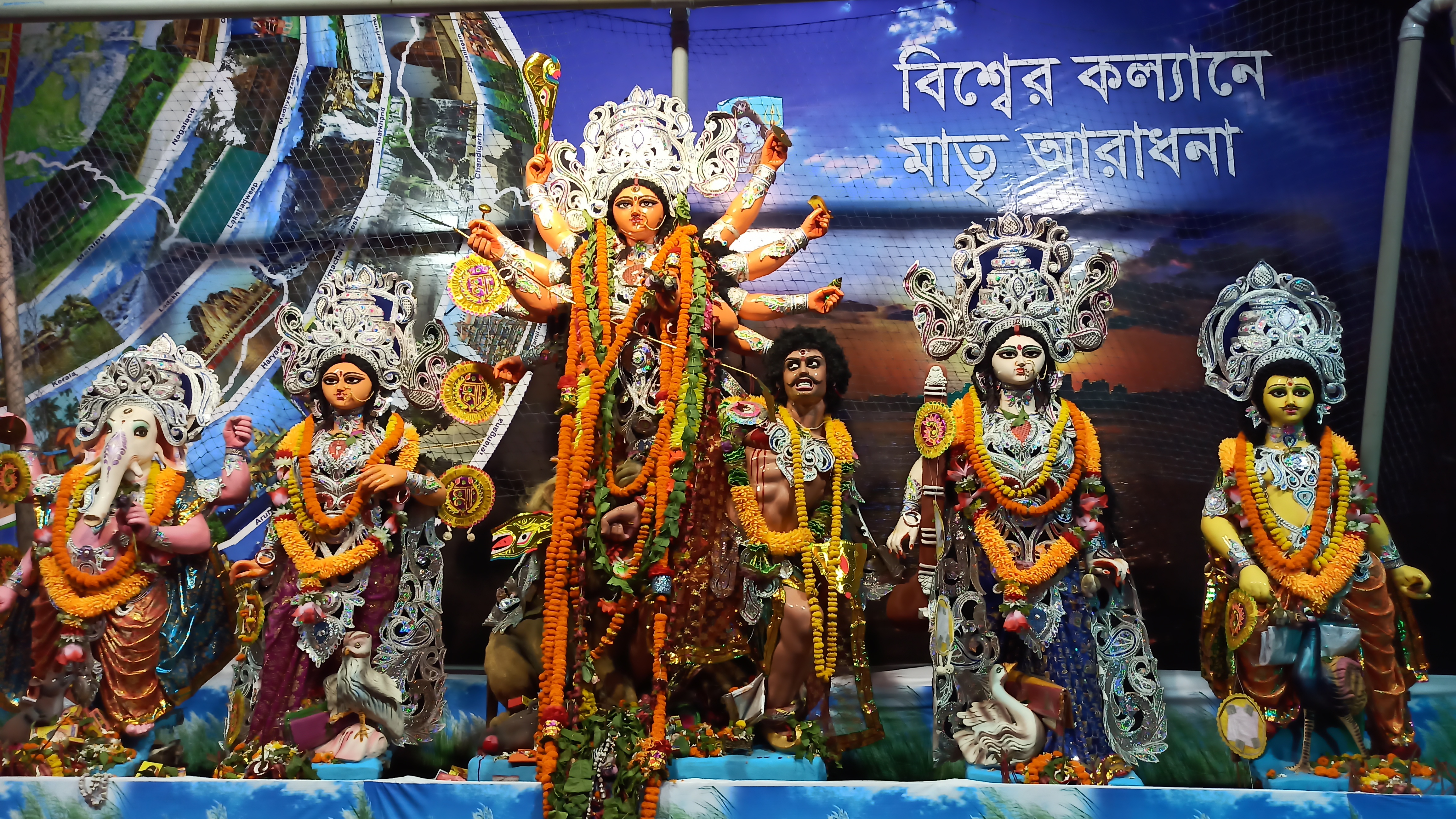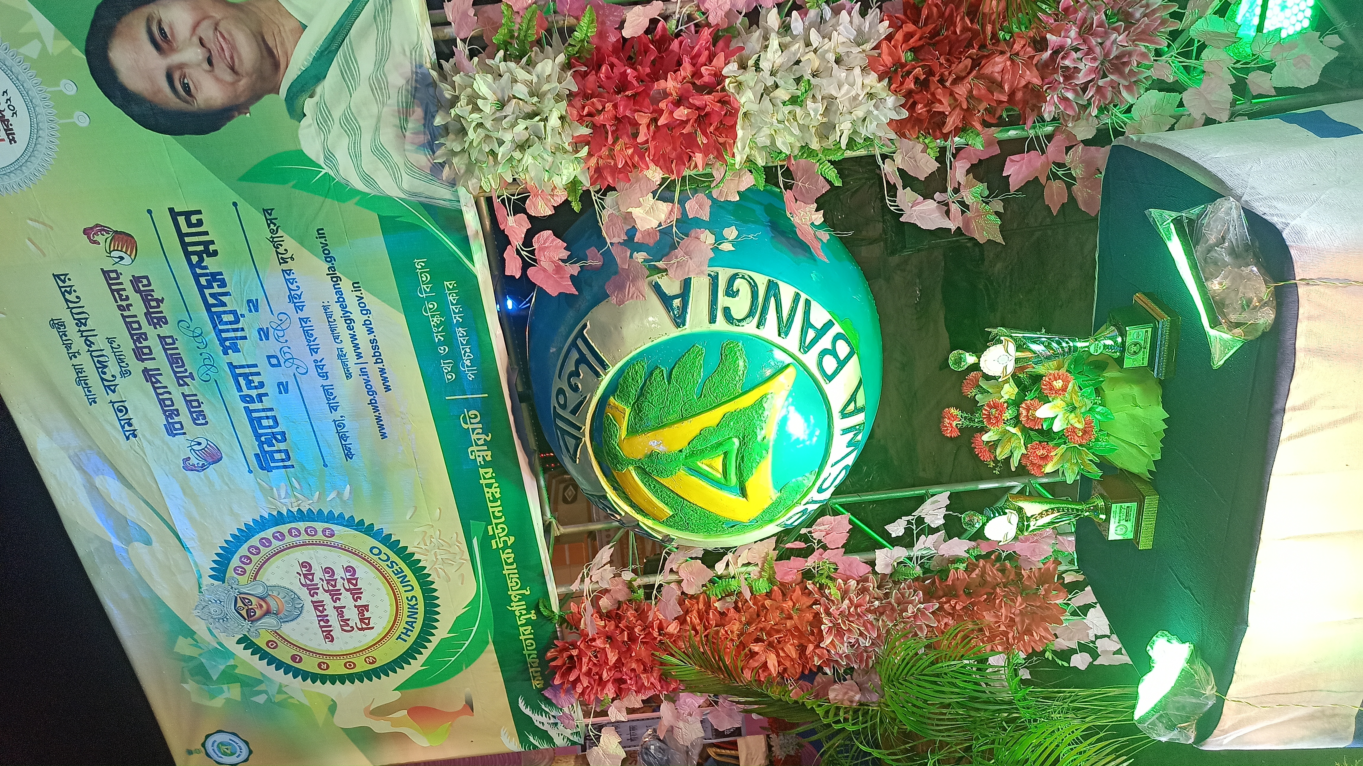 এই প্যান্ডেলে প্রবেশ করার আগে চোখে পড়বে বিশ্ব বাংলার চিত্র। এটি ছোট রাধা গোবিন্দ মন্দিরের আদলে তৈরি করা হয়েছে। এই প্যান্ডেলটি সাজানো হয়েছে ছোট ছোট অনেকগুলো ঝাড়বাতি দিয়ে। এটি ছোটর ভিতরে ও দেখতে অনেক সুন্দর লাগছে। এরপর ভেতরে প্রবেশ করার পর চোখে পড়বে মায়ের তেজস্বী রূপ।