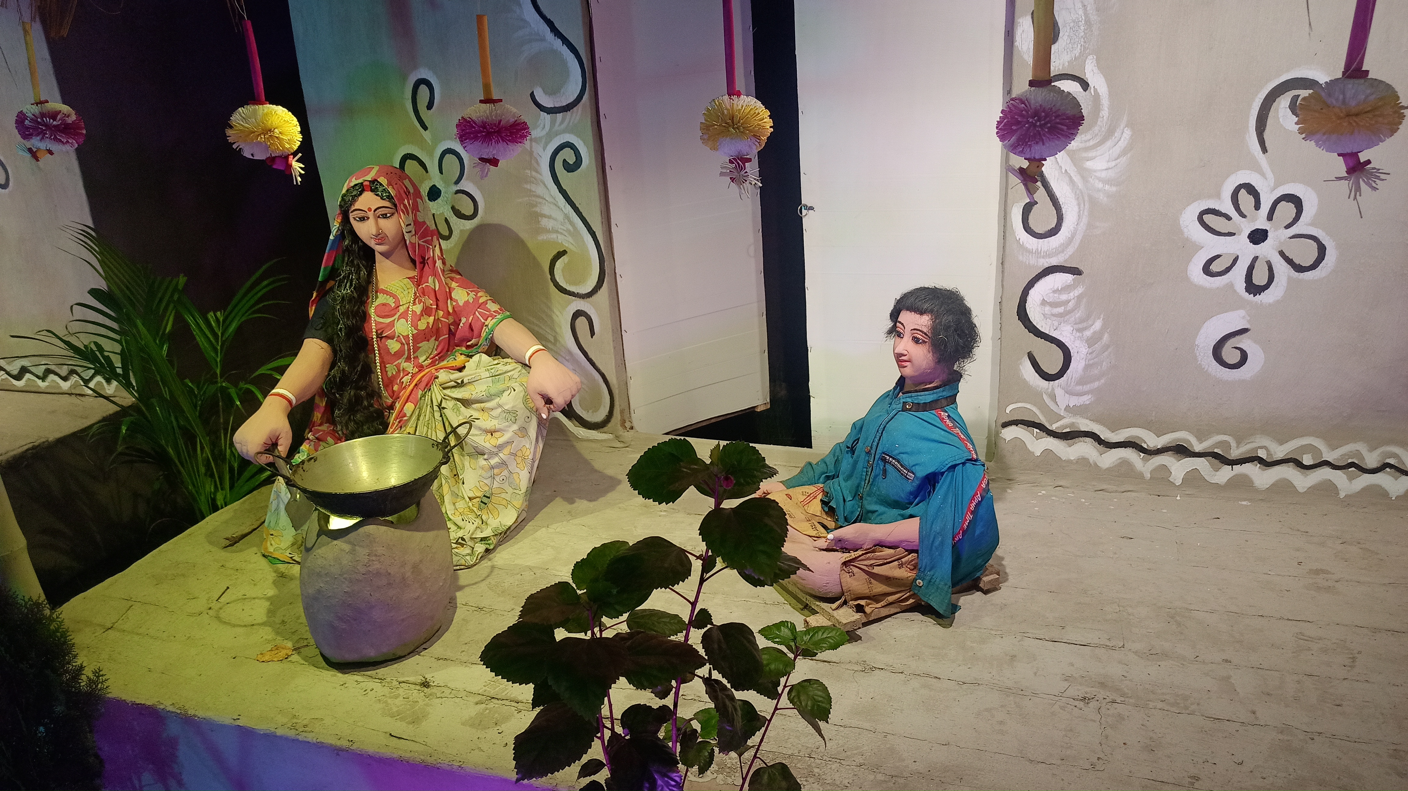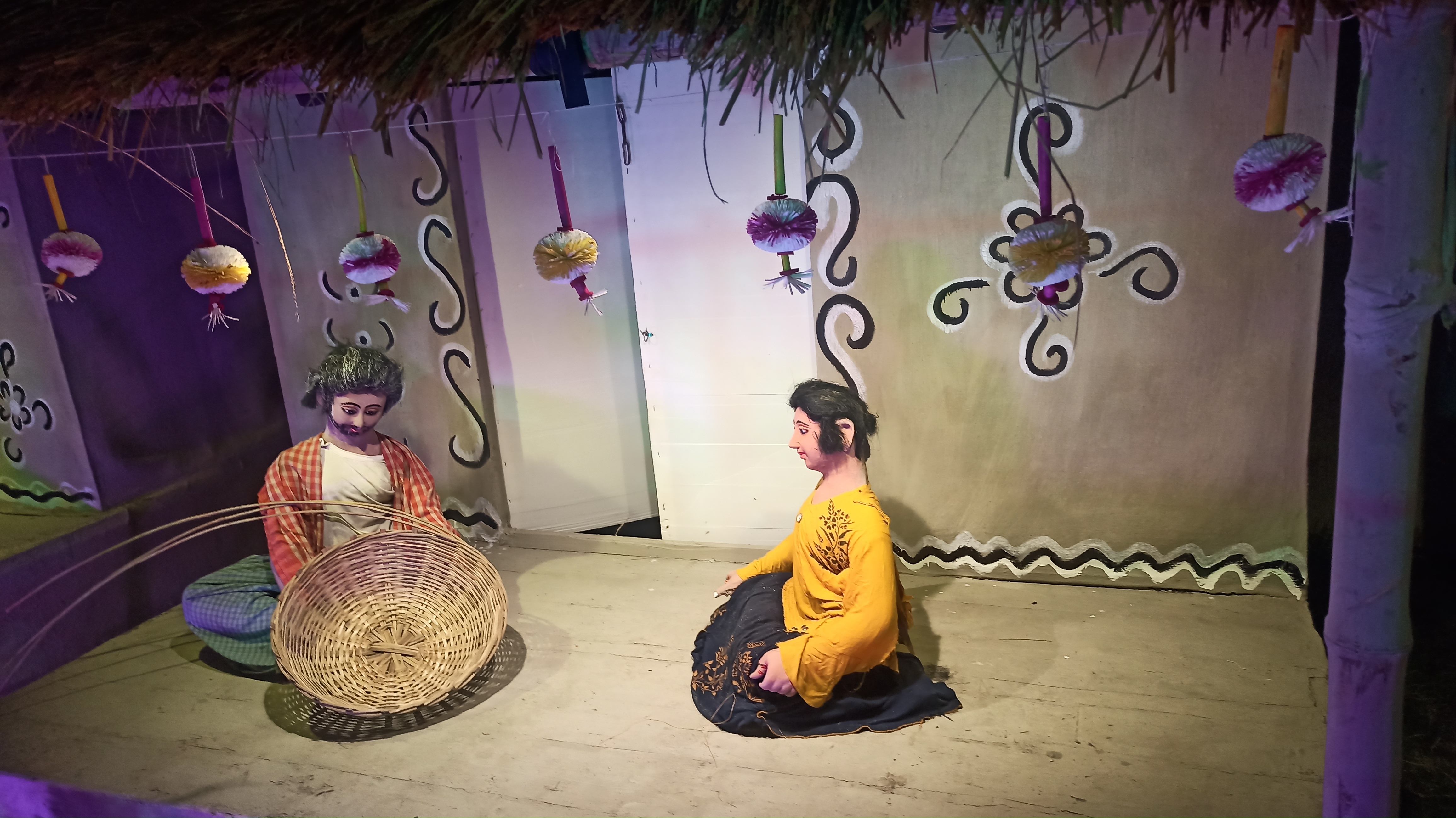 এখানে বাচ্চাদের ছেলেবেলার খেলার সেই সেই দৃশ্য বানানো হয়েছে। কি সুন্দর করে খড় ও মাঠি দিয়ে তৈরি করা হয়েছে। যা দেখে সেই বেলার কথা মনে পড়ে যায়।