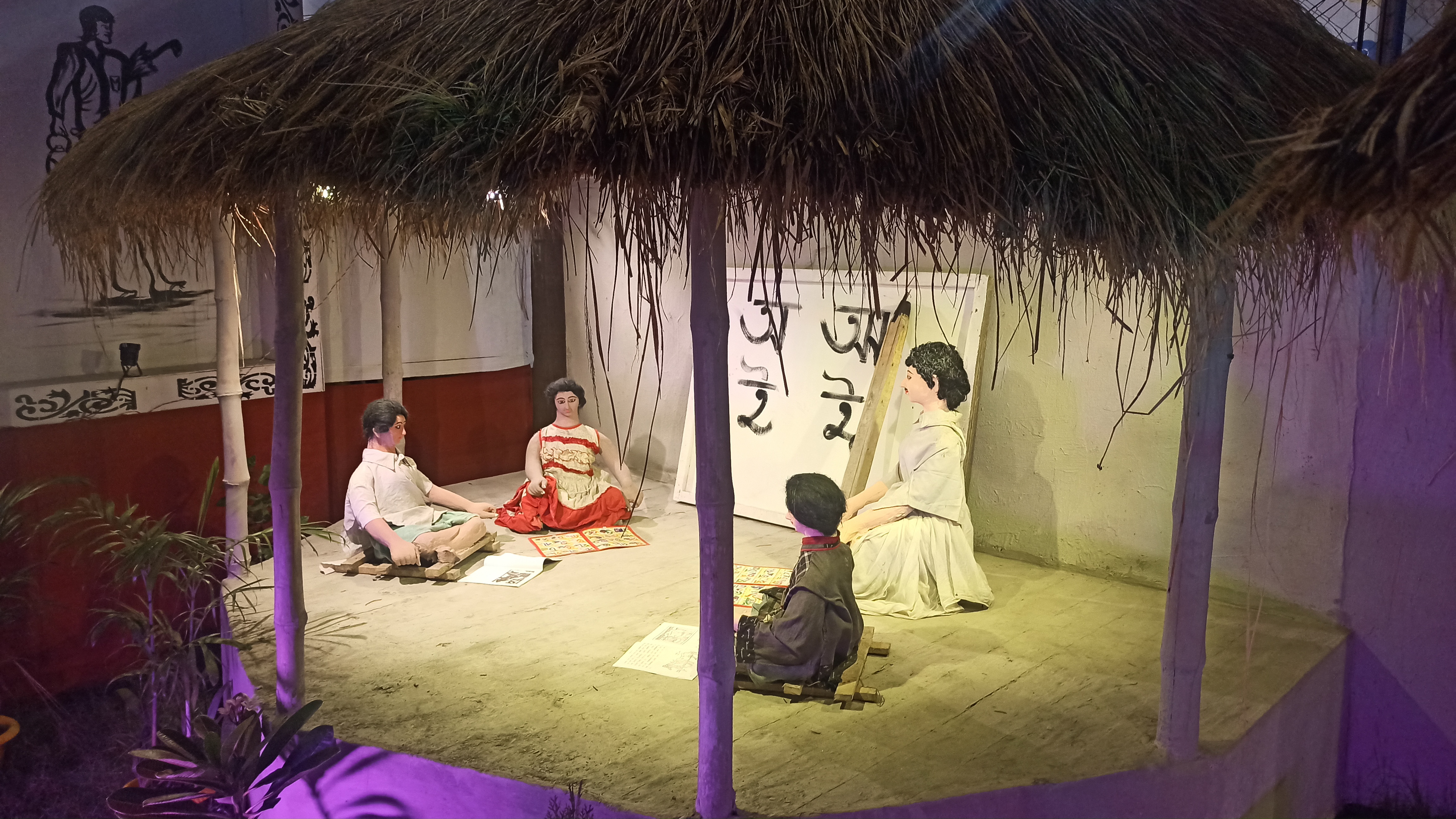 পাঠশালায় পড়ার দৃশ্য এখানে ফুটিয়ে তোলা হয়েছে।শিক্ষক কয়েক জন ছেলে মেয়ে পড়ছে।