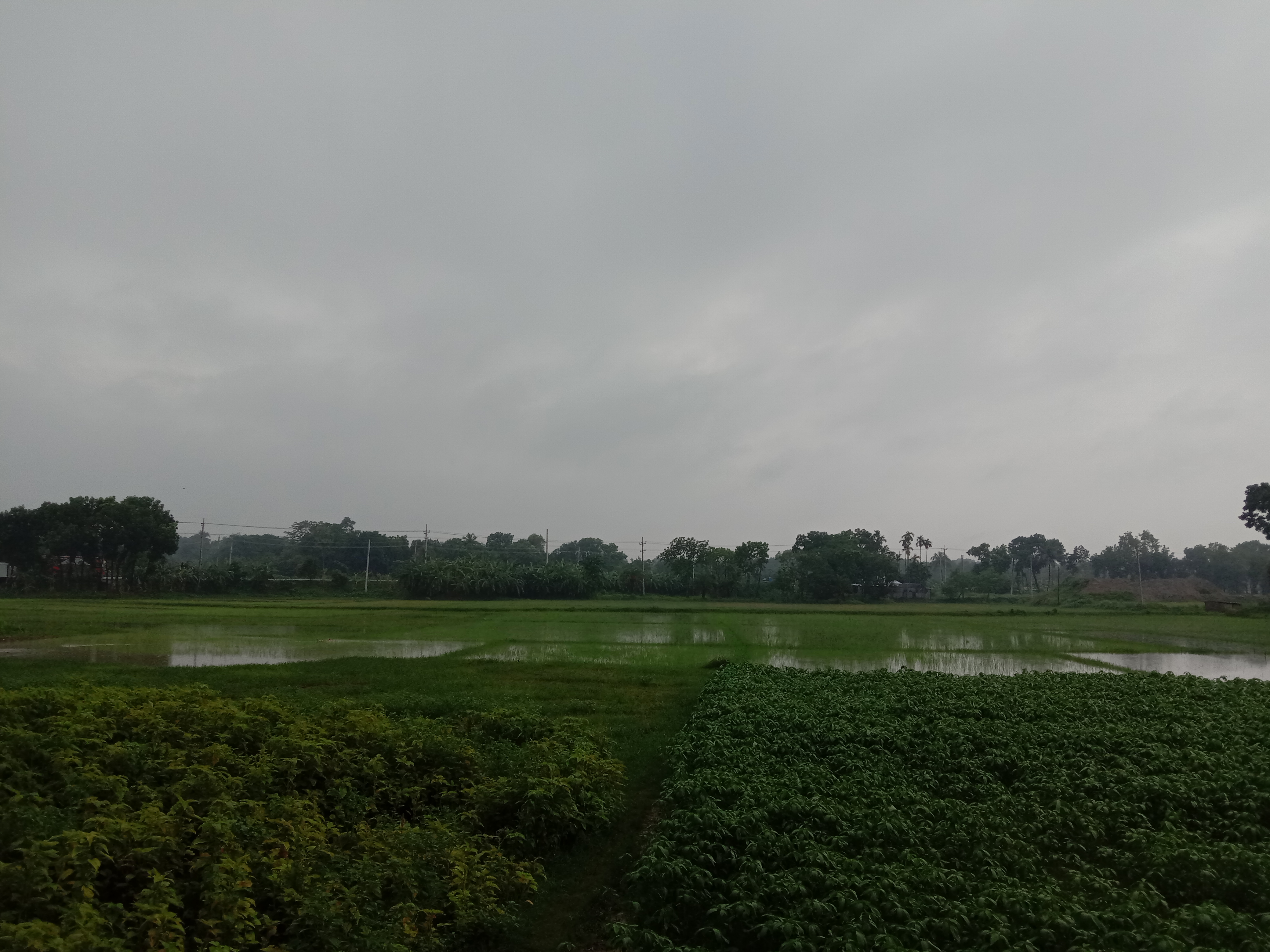 এটা আমার এলাকার একটি স্থান। প্রথম জায়গাটি হলো আমার গ্রামের পশ্চিম দিকের মাঠের। বৃষ্টির পর আকাশ মেঘলা থাকা অবস্থায় ছবিটি তোলা হয়েছিল। প্রতিটি ফসলের ডগায় বৃষ্টির পানি লেগে আছে। এবং এখানে যেন সারাজীবন তাকিয়ে থাকতে ইচ্ছে আমার। এত সুন্দর প্রাকৃতিক দৃশ্য আমি কীভাবে অবহেলা করব। এবং দ্বিতীয় ছবিটি হলো আমার গ্রামের ঈদগাহ ময়দানের। এখানে বৃষ্টির স্পষ্ট ছাপ রয়েছে।