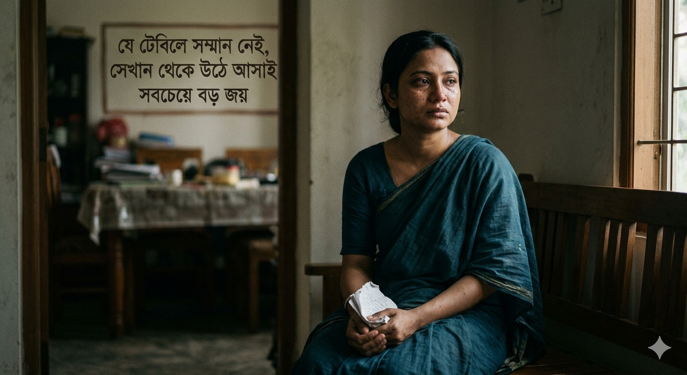 আমরা প্রায়ই সম্পর্কের মায়া কিংবা পরিস্থিতির দোহাই দিয়ে এমন সব জায়গায় পড়ে থাকি যেখানে আমাদের সম্মান ধুলোয় মেশানো হয়। ভাবি, হয়তো একদিন সব ঠিক হয়ে যাবে, হয়তো সামনের মানুষটি আমার ত্যাগের মূল্য বুঝবে। কিন্তু বাস্তবতা বড়ই নির্মম। আপনি একবার নিজের সম্মান বিলিয়ে দিলে, মানুষ সেটাকে আপনার দুর্বলতা ভেবে নিতে শুরু করে। আমি নিজের জীবন থেকে দেখেছি, যখন আপনি বারবার অন্যায় সহ্য করে চুপ করে থাকেন, তখন অপরপক্ষ ধরে নেয় যে আপনাকে অপমান করাটাই স্বাভাবিক। অপমান সহ্য করা কোনো মহত্ত্ব নয়, বরং এটি নিজের ব্যক্তিত্বকে তিল তিল করে মেরে ফেলা। যে পরিবেশে আপনার কথা বলার সুযোগ নেই, আপনার মতামতের কোনো গুরুত্ব নেই এবং আপনার উপস্থিতি কেবল অবহেলার পাত্র—সেখানে থাকা মানে হলো নিজের আত্মাকে প্রতিদিন অপমান করা।