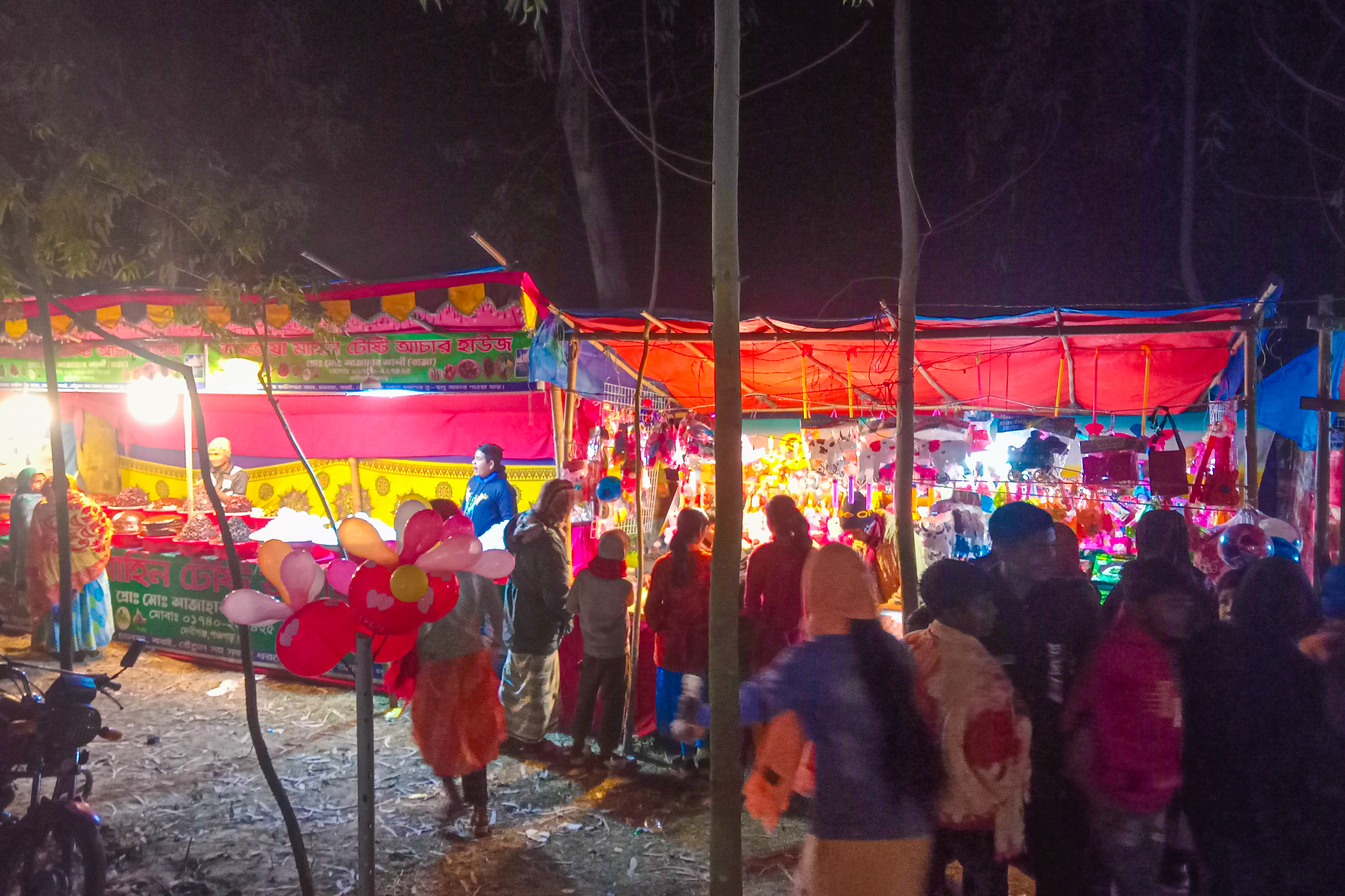 এই মেলাটা ছোট একটি গ্রামে বসেছিলো ৷ যেটা আমাদের এখান থেকে বেশ কিছুটা দূরে ৷ সেদিন ঘোরাঘুরির মাঝে হঠাৎ এই মেলায় চলে আসি আমি ৷ আগে থেকে জানতাম নাহ এখানে মেলা বসেছে ৷ যাই হোক , মেলা দেখে আমার বেশ ভালোই লাগে ৷ এরপর সেখানে বেশ খানিকটা সময় কাটানোর চেষ্টা করি ৷ এই মেলাটা মূলত মাজার'কে কেন্দ্র করে বসেছে ৷ সেদিন মাজারের ধর্মীয় কেনো উৎসব ছিলো ৷ সেকারণেই সেথানে ছোট এই মেলাটা বসেছে ৷ মেলায় মানুষ জন বেশ ভালোই হয়েছে ৷ বিকেল বেলায় এই মেলায় কিছুটা সময় কাটানোর পর সেদিন নদীর পারে ঘুরতে গেছিলাম ৷ এরপর নদীর পাড়ে সময় কাটানোর পর আবার মেলায় এসে সন্ধ্যা থেকে রাত্রি পর্যন্ত সময় কাটাই ৷ বেশ ভালো লেগেছে ৷ রাত্রি বেলা অনেকেই ঘুরতে আসছে ৷ সব জাতের মানুষই মেলায় দেখতে পেলাম ৷ যে যার মতো মেলার উৎসবমুখর পরিবেশেটা উপভোগ করছে ৷