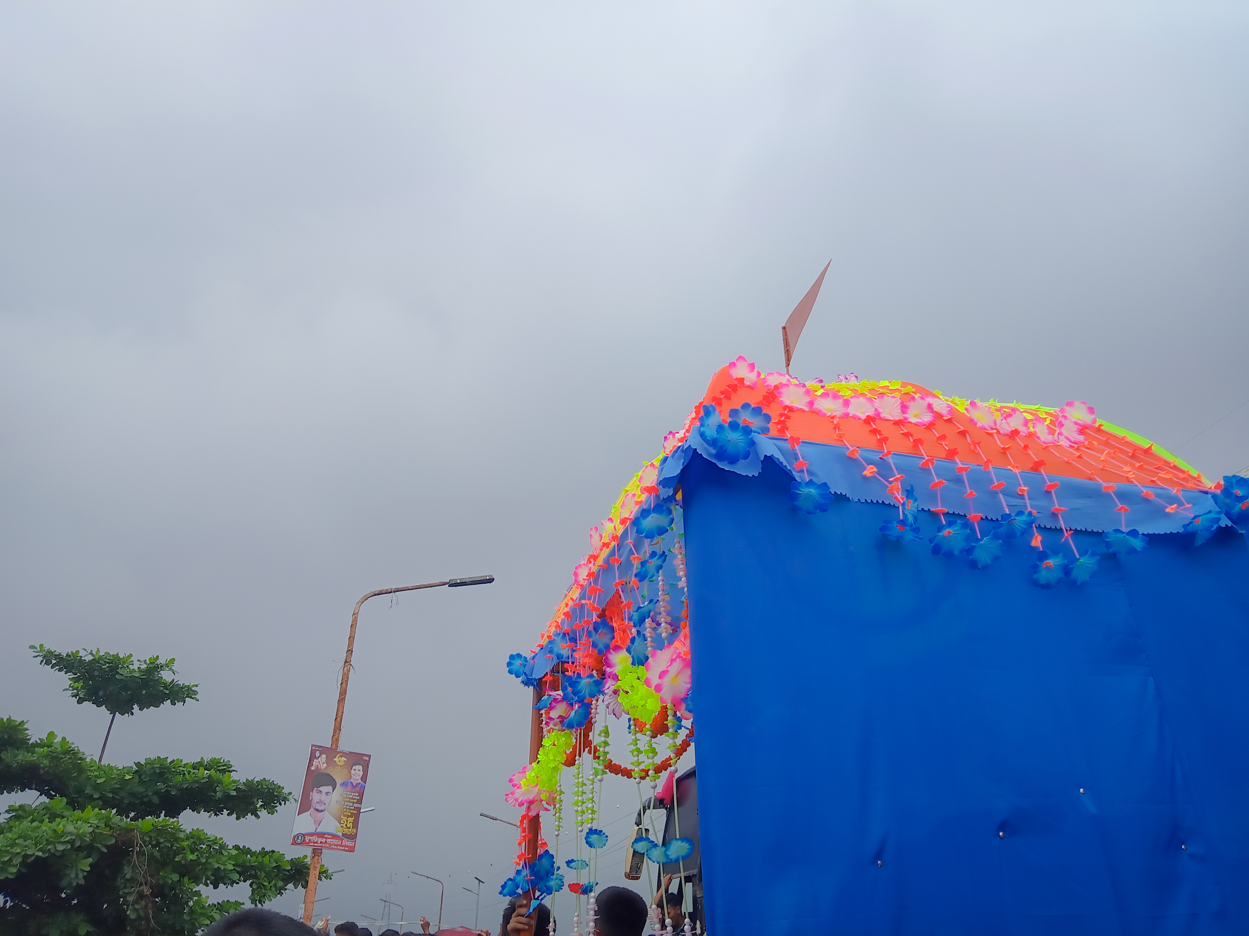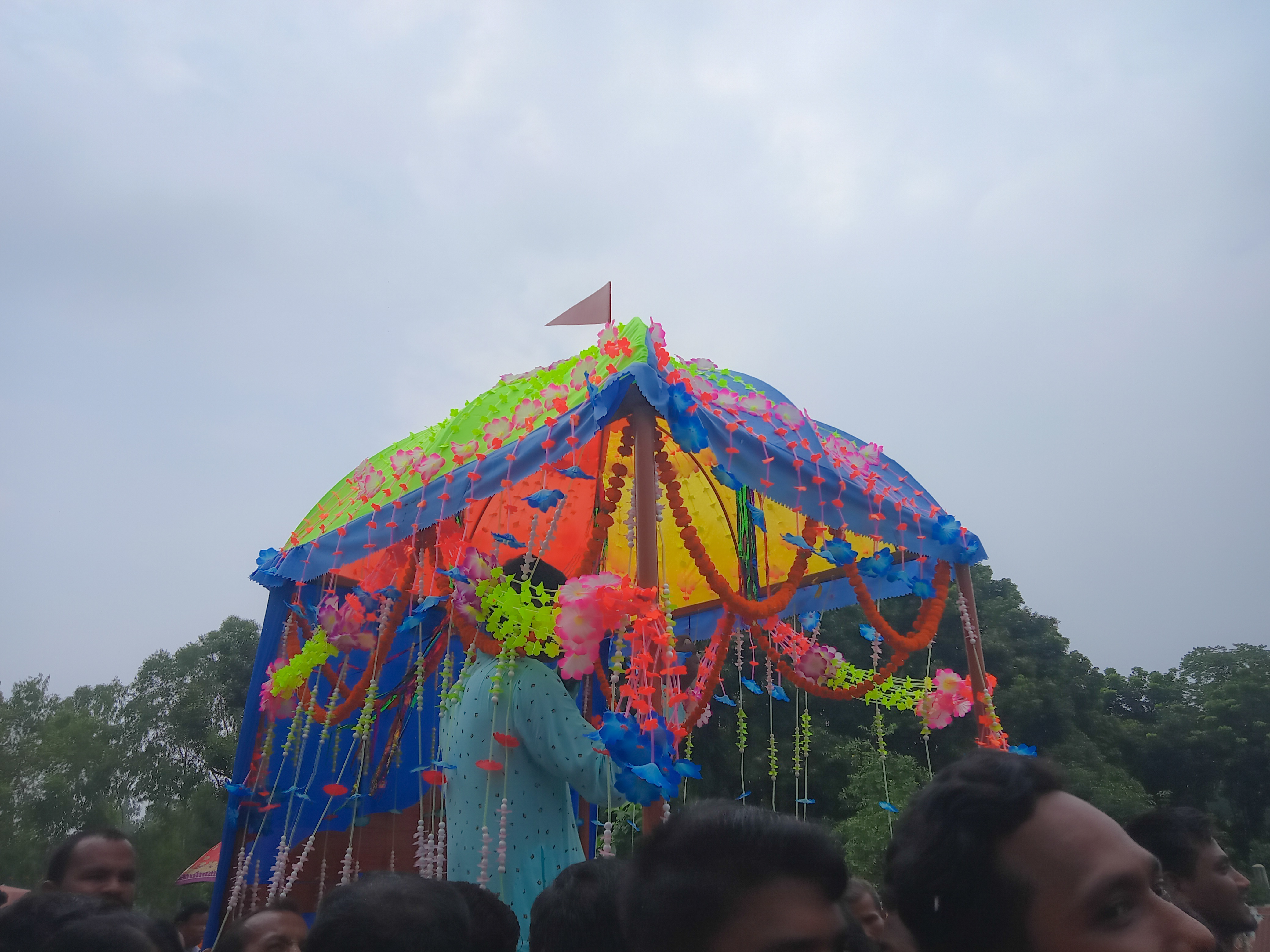 বেশ কিছুক্ষণ পূজাঅর্চনা করার পর কাঠের ছোট রথে তোলা হলো ঠাকুর ৷ ততক্ষণে মানুষের ভীর আরো অনেকটাই বেড়েছে ৷ বিশাল দুটো রশি রথের সাথে বেধে দেওয়া হয়েছে সামনে ৷ সেই রশি ধরে সবাই রথ টানার জন্য ব্যস্ত ৷ সামান্য জায়গায় নেই রশি ধরে রথ টানার ৷ মানুষের এতো-এতোই ভীর ৷ তাই এবার আর ইচ্ছে হলো না রথ টানার ৷ মানুষের ভীর ঠেলে ঠাকুর ছুয়ে একবার প্রণাম করে নিলাম ৷ অন্যদিকে আকাশটাও বেশ মেঘলা ৷ এই বুঝি বৃষ্টি হবে এমনই অবস্থা ৷ এসবের মাঝে আমি আর রথের সাথে গেলাম না ৷ মন্দির থেকে রথ নিয়ে গেলো , আমি সেখানেই দারিয়ে কয়েকটা ফটোগ্রাফি করে নদীর ধারে চলে আসলাম ৷