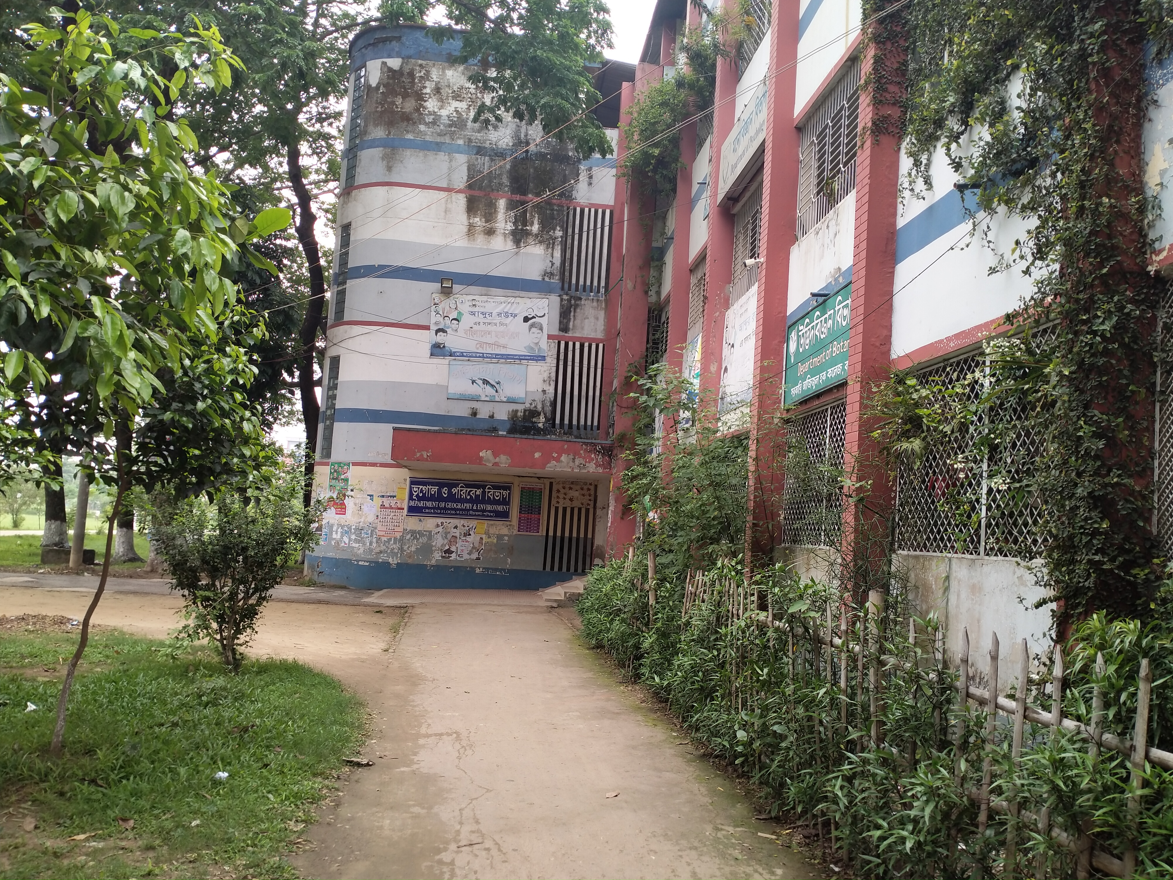 গল্প করতে করতে দুই ভাই বোন এগিয়ে যাচ্ছিলাম। তারপর পৌঁছে গেলাম আজিজুল হক কলেজের অ্যাডমিন ভবনের সামনে। ওখানকার পরিবেশ বেশ টাও বেশ। আসে পাশে বসার জায়গা আছে। অনেকে বিয়ের ফটোগ্রাফি করতে আসে এসব জায়গায়।
