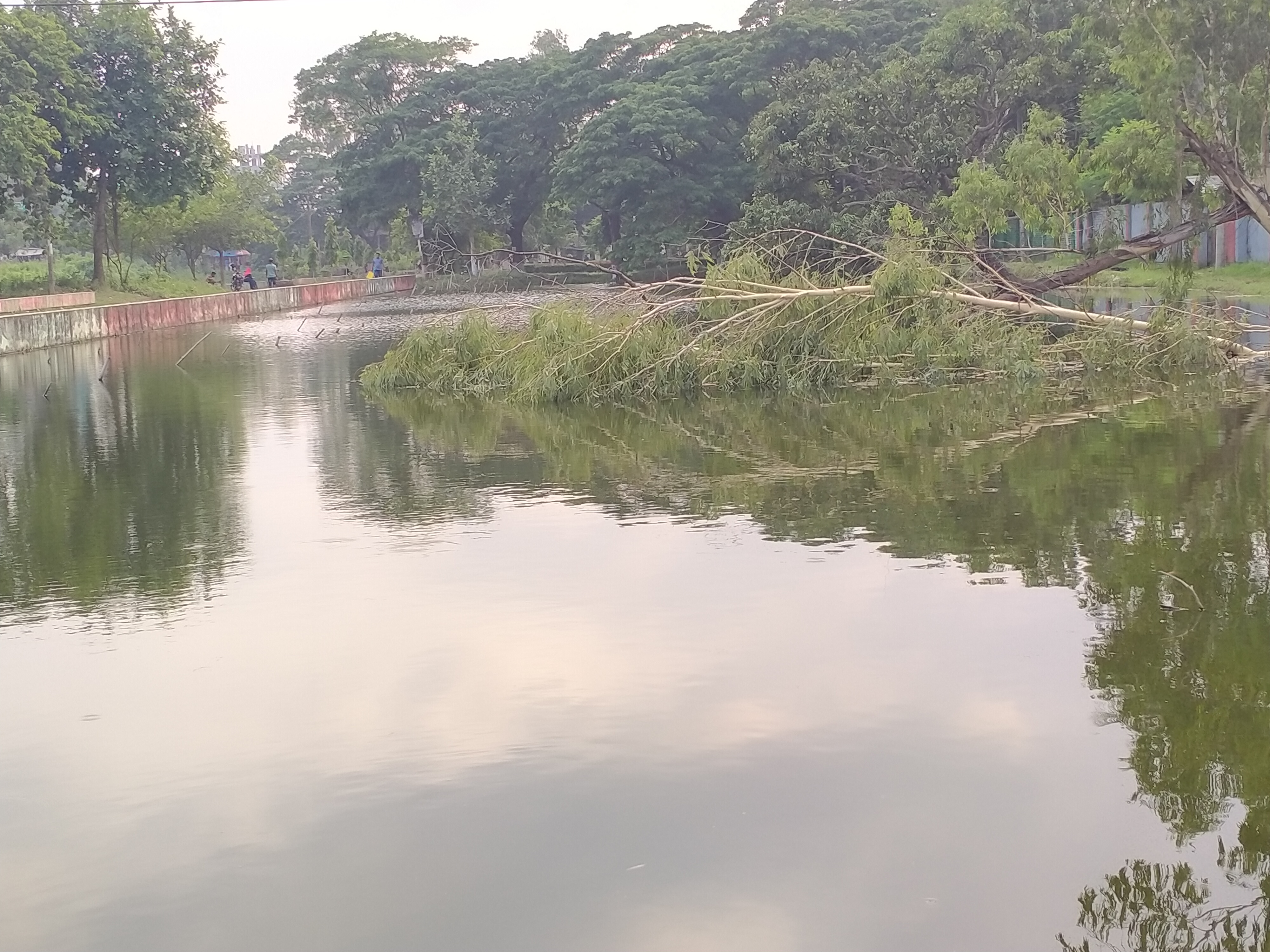 ঢুকতেই হাতের ডান পাশে একটা সুন্দর ঝিল দেখতে পেলাম। এত চমৎকার তার পরিবেশ। সেটা যে দেখেছে সেই জানে। আমি ভালো ছবি তুলতে পারি না। কোন রকমে দুটো ছবি তুলে নিয়েছিলাম। ঝিলে শাপলা ফুল ফুটে ছিল। এক পাশে আম গাছ দিয়ে ভরা আর এক পাশ দিয়ে বাধানো বসার জায়গা। অনেক ছেলে মেয়ে সেখানে বসে গল্প করছে । বেশ ভালো লাগছিল সব দেখতে।
