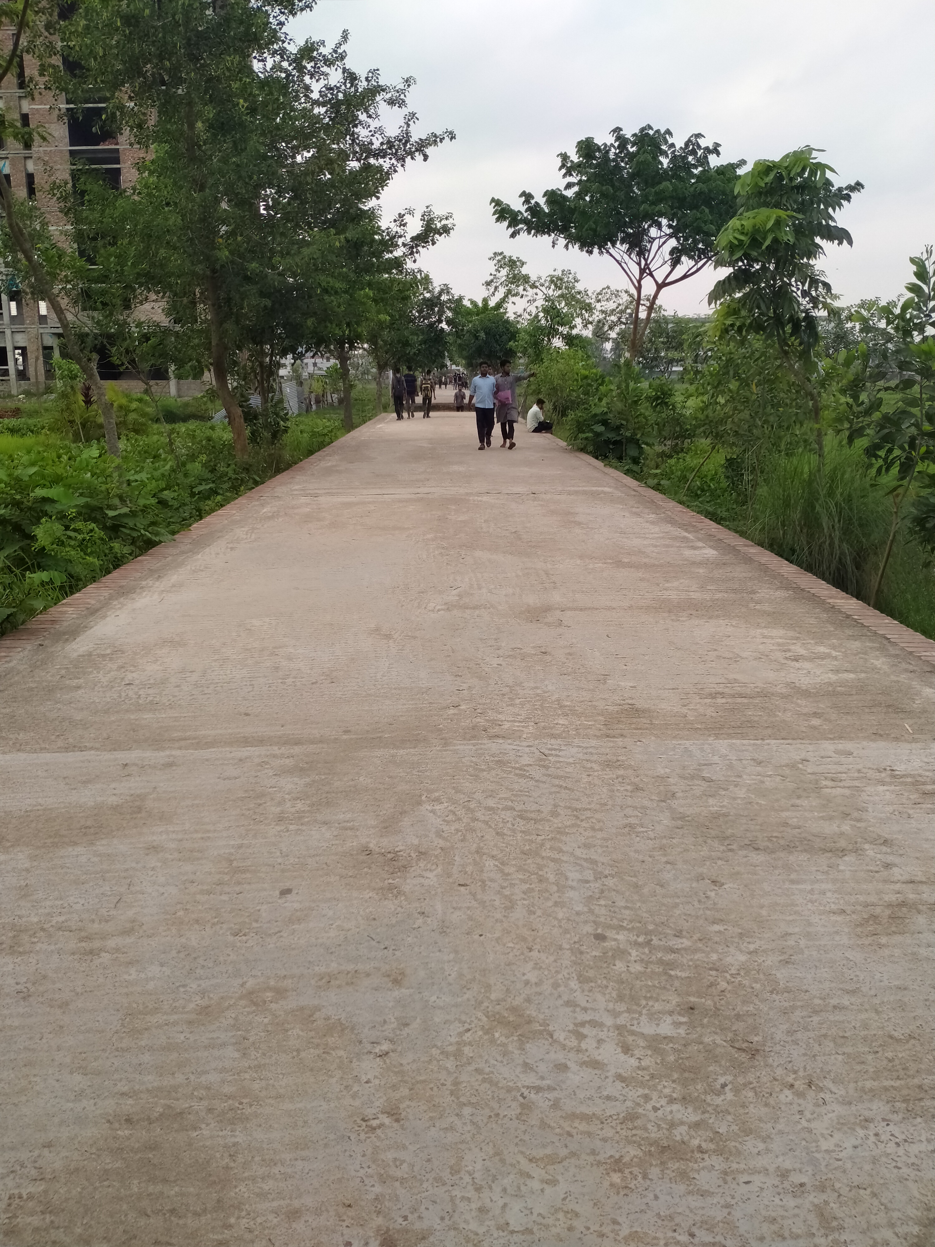 তারপর পাশের রাস্তা দিয়ে হেটে সামনে যাচ্ছিলাম আরো। আসলে এত সুন্দর নিরিবিলি মনটা এমনি ভালো লাগছিল। ভাবছিলাম যে শহীদ মিনারের পাশে গিয়ে বসে গল্প করবো। কিন্তু দেখলাম সেখানে খেলাধুলা করার জন্য কিছু ছেলে রেডি হচ্ছে। তাই আবার অন্যদিকে চলে গেলাম। বিজ্ঞান এবং কলা ভবনের পাশ দিয়ে মুল কলেজের পেছনের দিক টায়। সুন্দর বাঁধানো হাঁটার রাস্তা। পাশ দিয়ে কত ছেলে মেয়ে বসে আড্ডা দিচ্ছে।