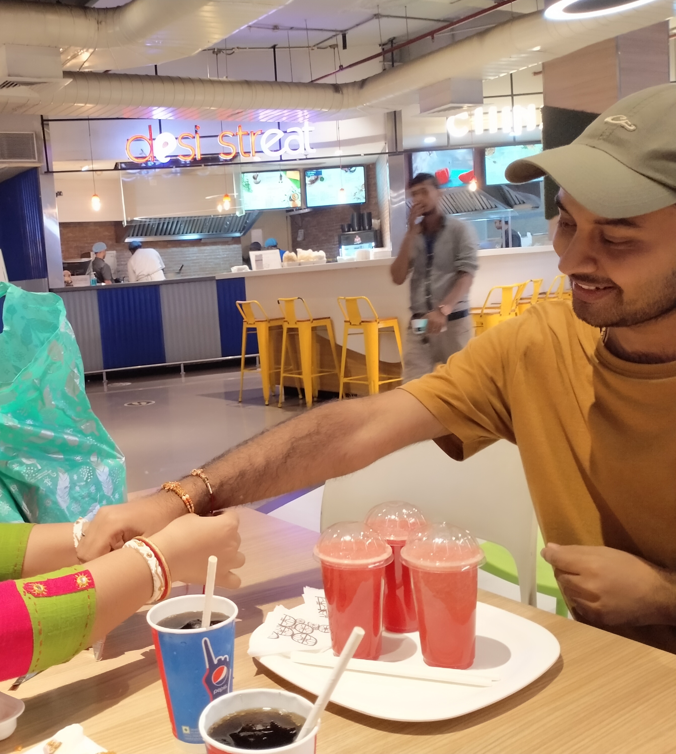 রাখি পূর্ণিমার সকালটা তো বেশ কেটেছিল। গতকালের লেখায় সেটা বলেছি। পুরো অন্যরকম একটা অনুভূতি ছিল। আমার প্ল্যান ছিল সকালে খাওয়া দাওয়া করে বেরিয়ে যাব ঘোরাঘুরি করতে। কিন্তু শরীর একদম পারছিল না। আসলে টানা তিন দিন ছোটাছুটি করে শরীর একদম নিতে পারছিল না এত চাপ। তাই দেবাশীষ দা বলল রেস্ট করে নিতে। কারণ আমাকে বিকালে বেরোতেই হবে। দিদিভাই এর কাছ থেকে রাখি পরতে হবে। ইন্ডিয়া আসার অন্যতম প্রধান কারণ এটাই।