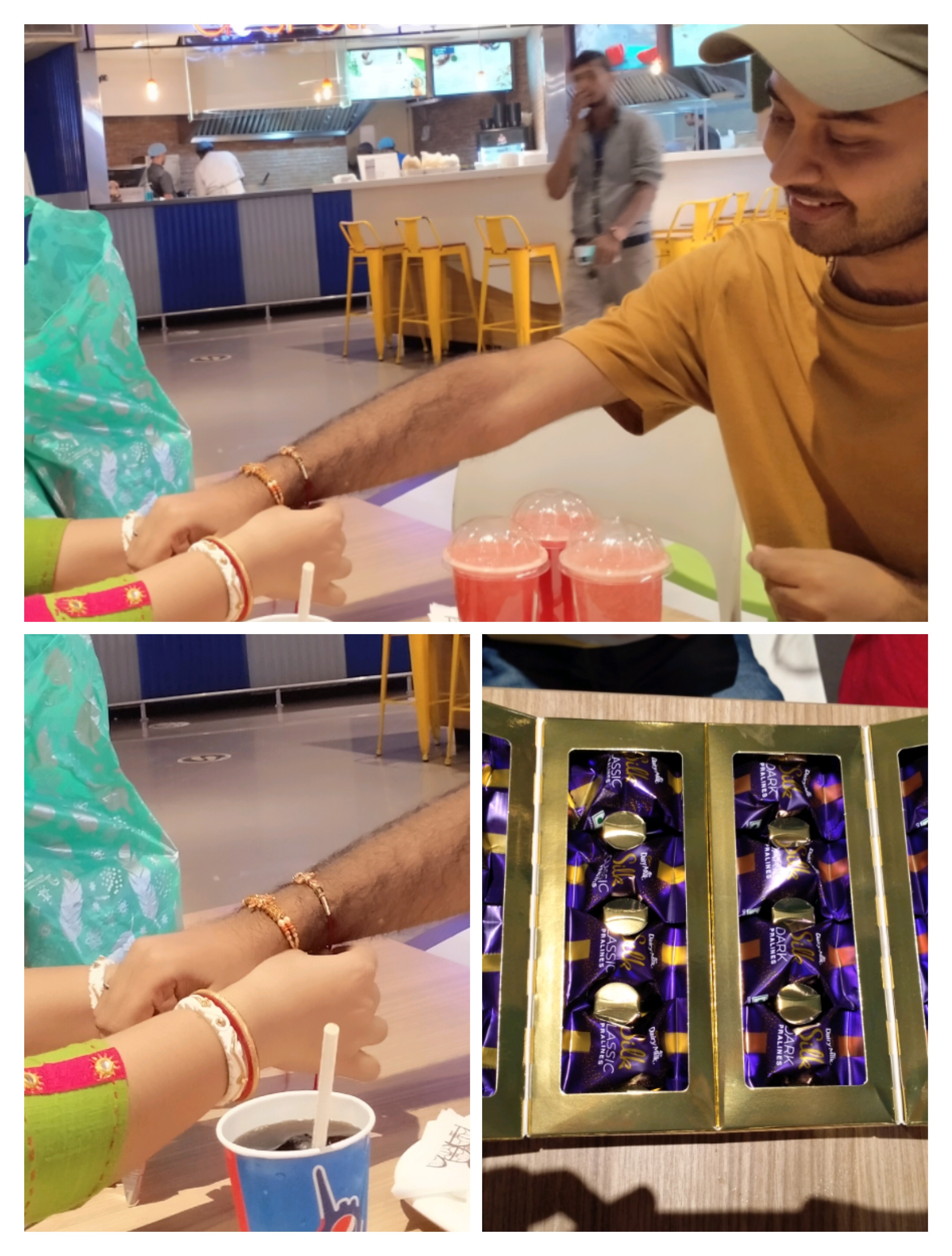 সব কিছুর আগে দিদিভাই আমাকে রাখি পরিয়ে দিলেন। প্রথমবার এমন ভাবে রাখি পরলাম দিদিভাই এর থেকে। ভাই বোনের একটা মিষ্টি সম্পর্কের মিল বন্ধন। ভেতরে কি হচ্ছিল সেটা আমি । দিদিভাই এর থেকে আশীর্বাদ চেয়ে নিলাম। দিদিভাই আমার জন্য মিষ্টি কিছু গিফট নিয়ে এসেছিল। সেগুলো পেয়ে তো দারুন লাগলো। মজায় মজায় খাওয়া দাওয়া শুরু করলাম তারপর। সত্যি বলতে আমার একার এত কিছু খেতে কয়েকদিন সময় লেগে যেত। সবাই অল্প অল্প করে খেয়েছিলাম। তারপরও পার্সেল করতে হয়েছে। সবচে স্পেশাল ছিল সব শেষের ডেজার্ট টা। ঠান্ডা গরমের দারুন একটা কম্বিনেশন বলা যায়।