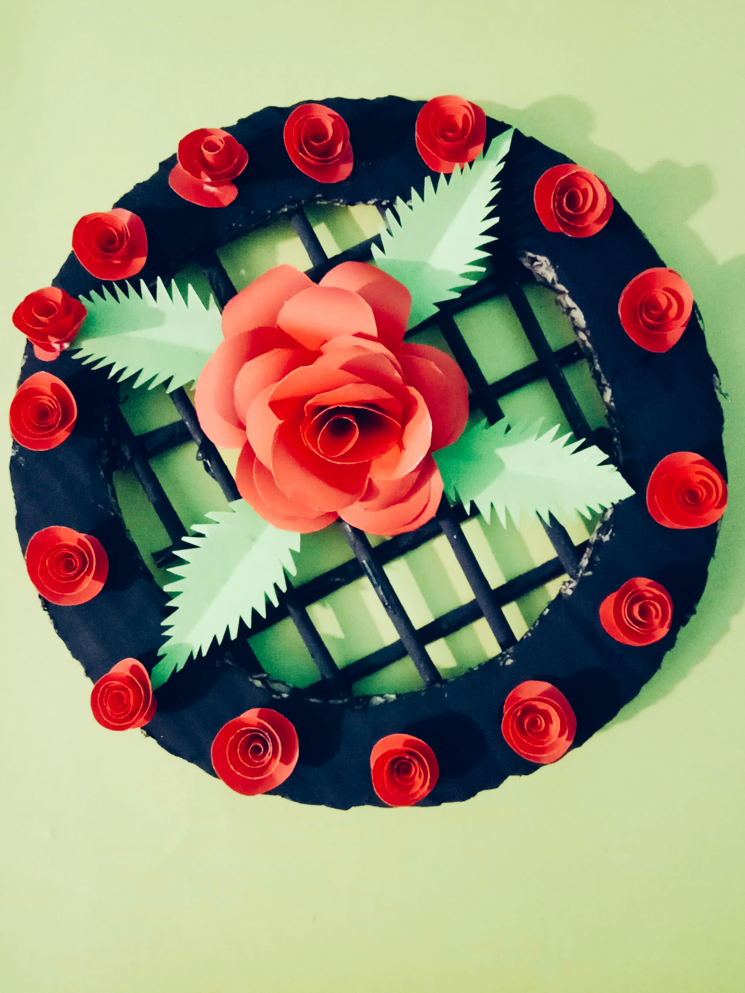 রঙিন কাগজ দিয়ে গোলাপ ফুলের ওয়ালমেট