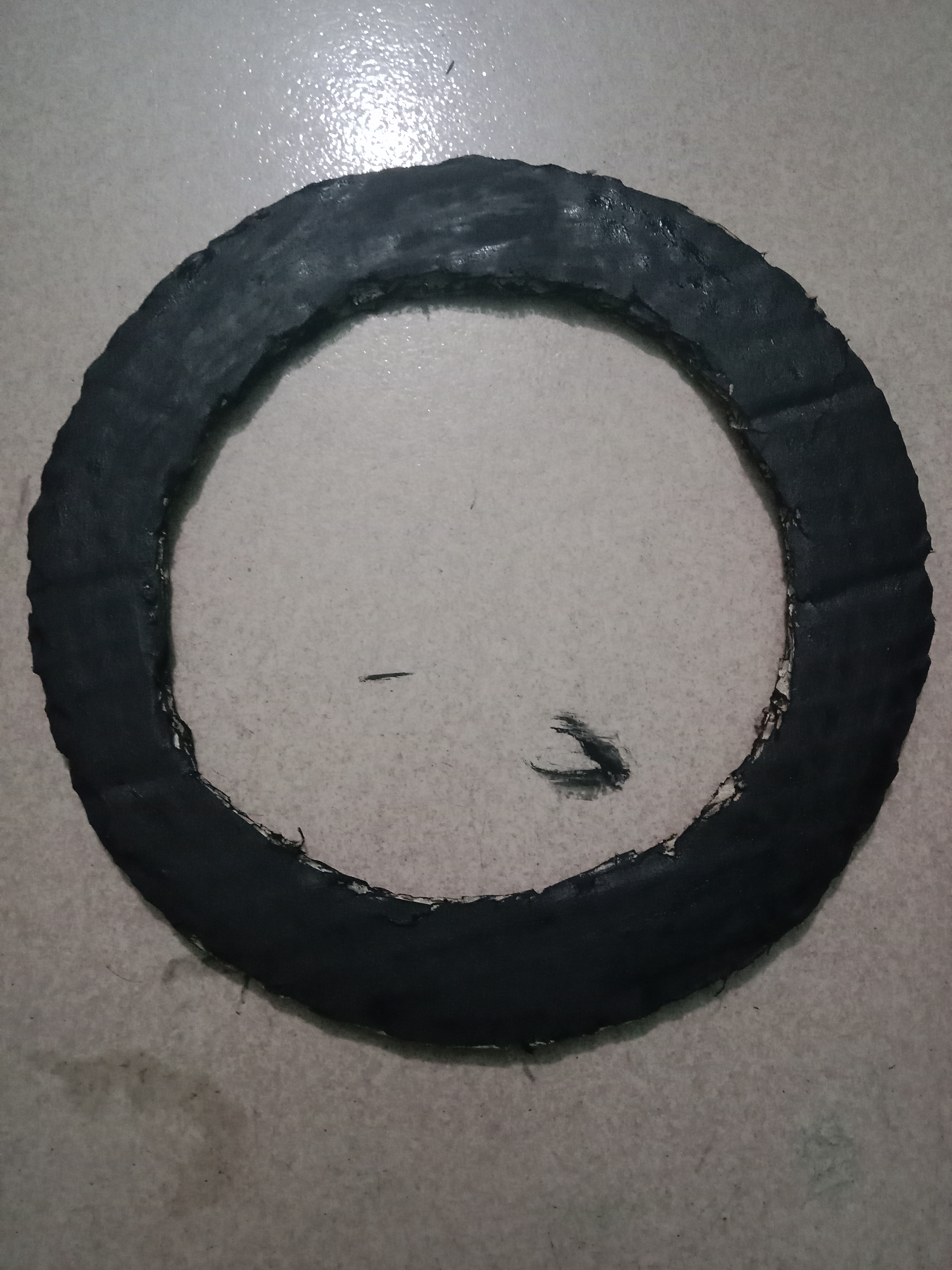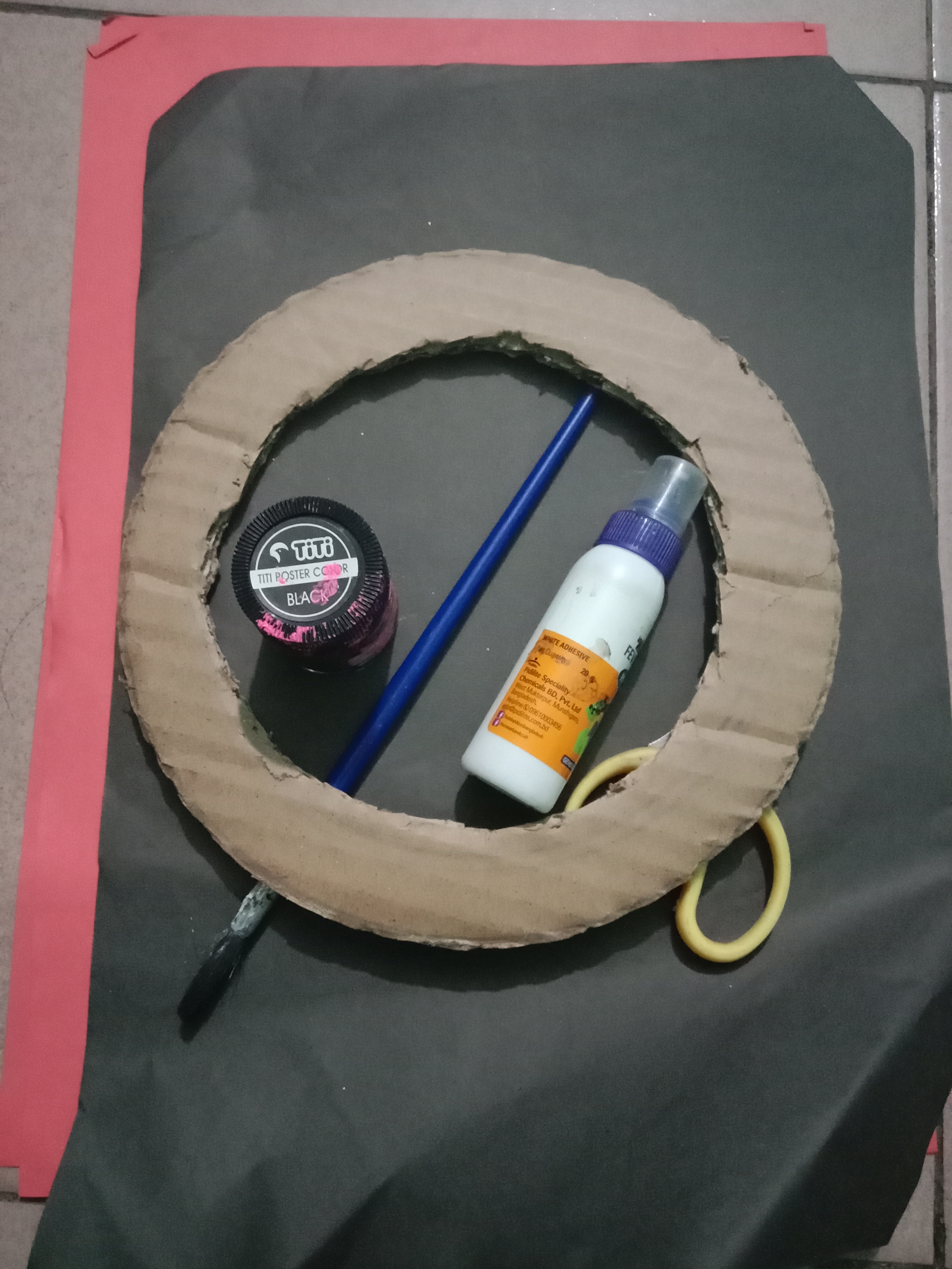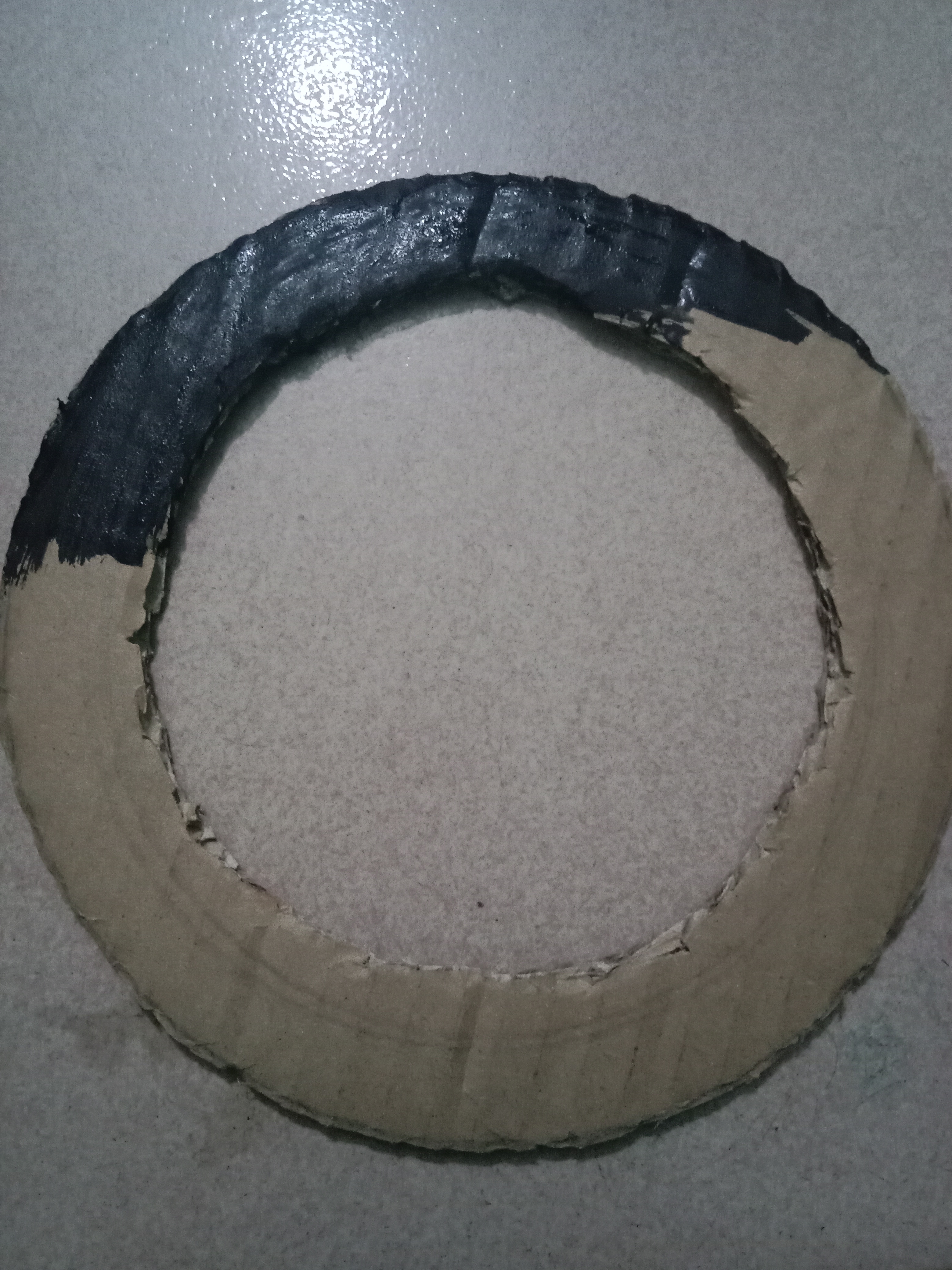 প্রথমে গোল করে কেটে রাখা কাটুন পেপার কে কালো কালার পোস্টার রং দিয়ে কালার করে নিলাম।