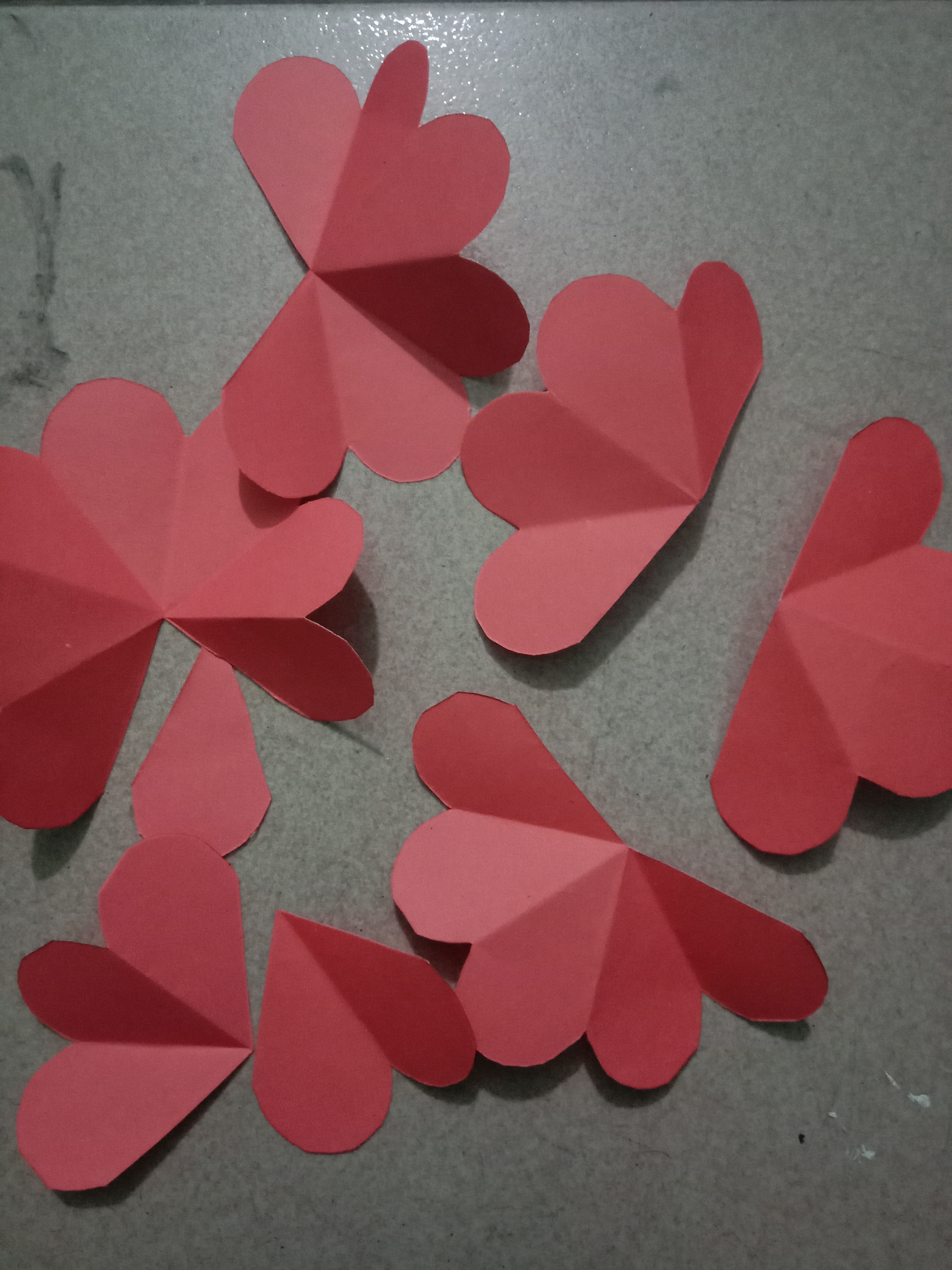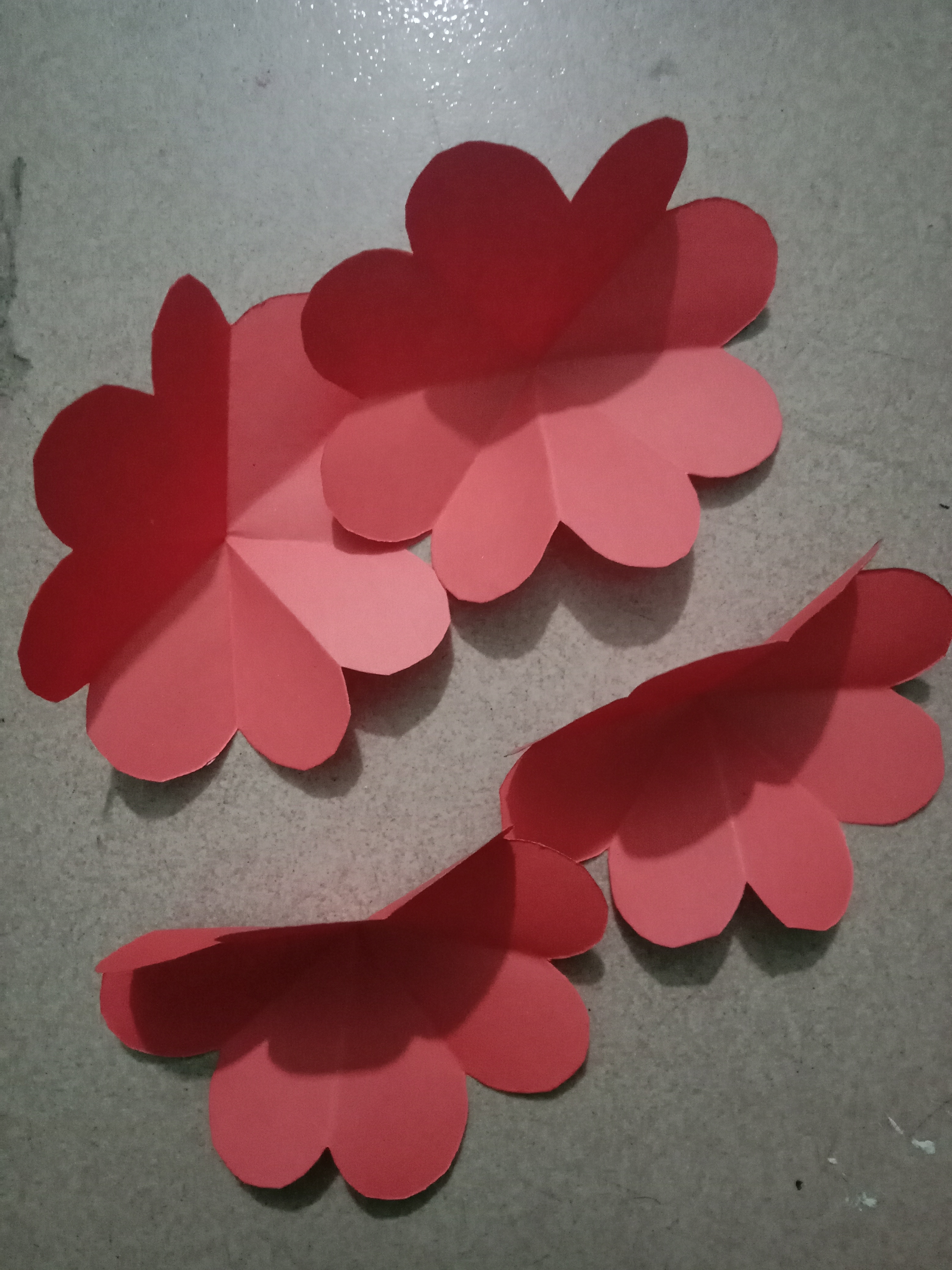 এবার লাভ শেপের মতো করে ফুল এঁকে কেটে নিলাম। এরপর ভাঁজ খুলে নিয়েছি।