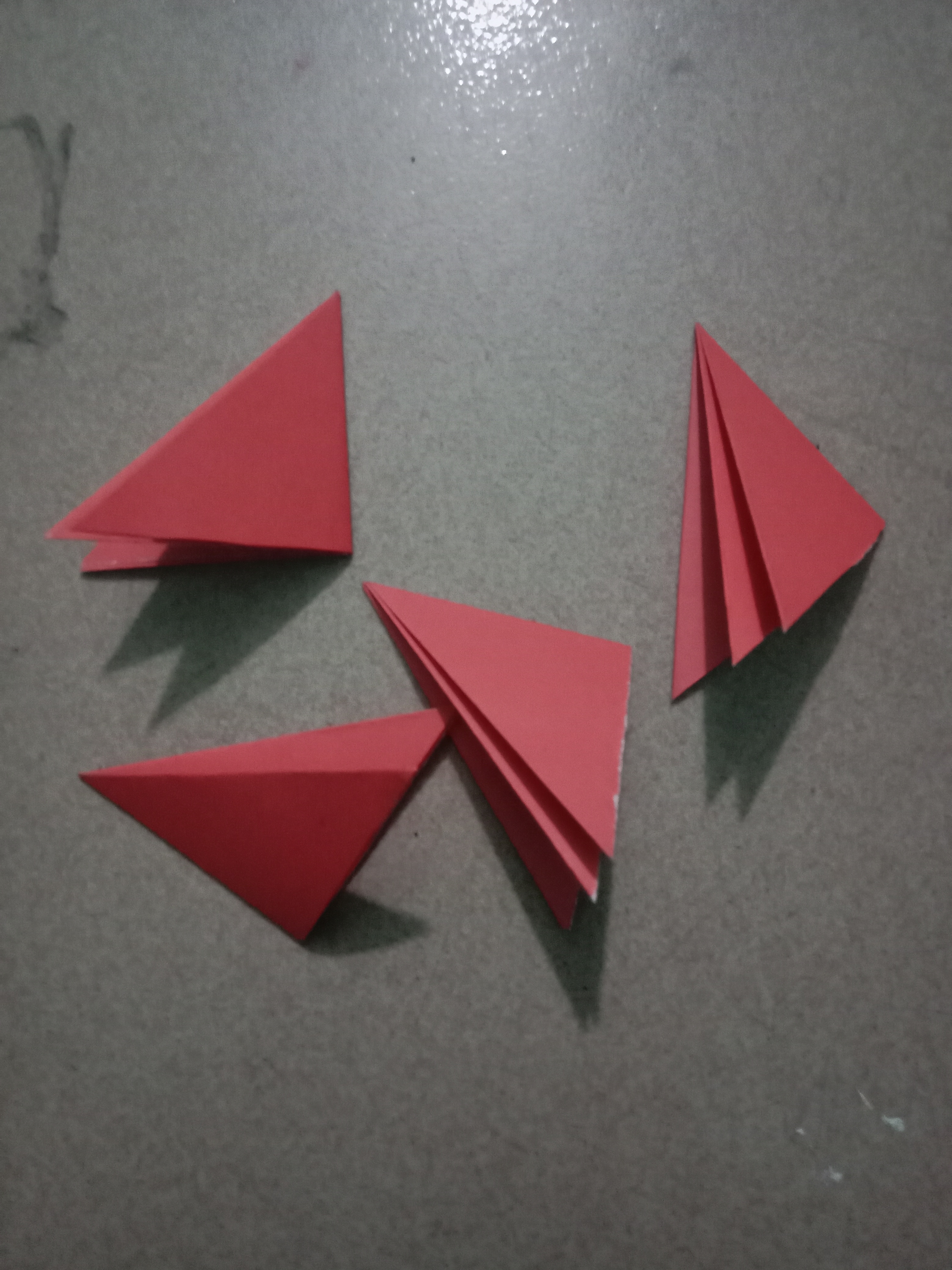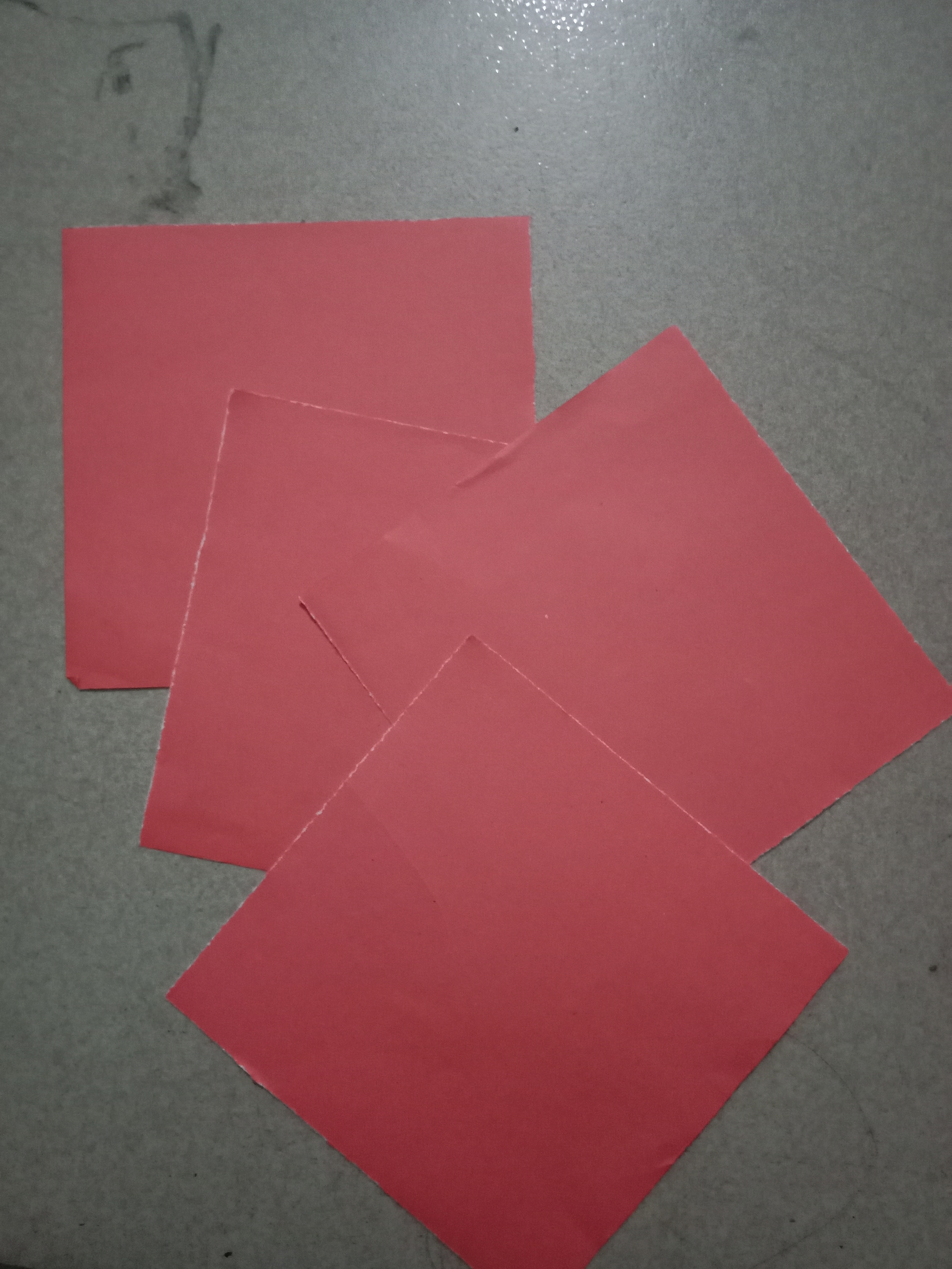 এখন লাল কালার রঙিন কাগজ চার ভাগে কেটে নিয়েছি। এরপর কোণা বরাবর সমান করে ভাঁজ করে নিলাম।
