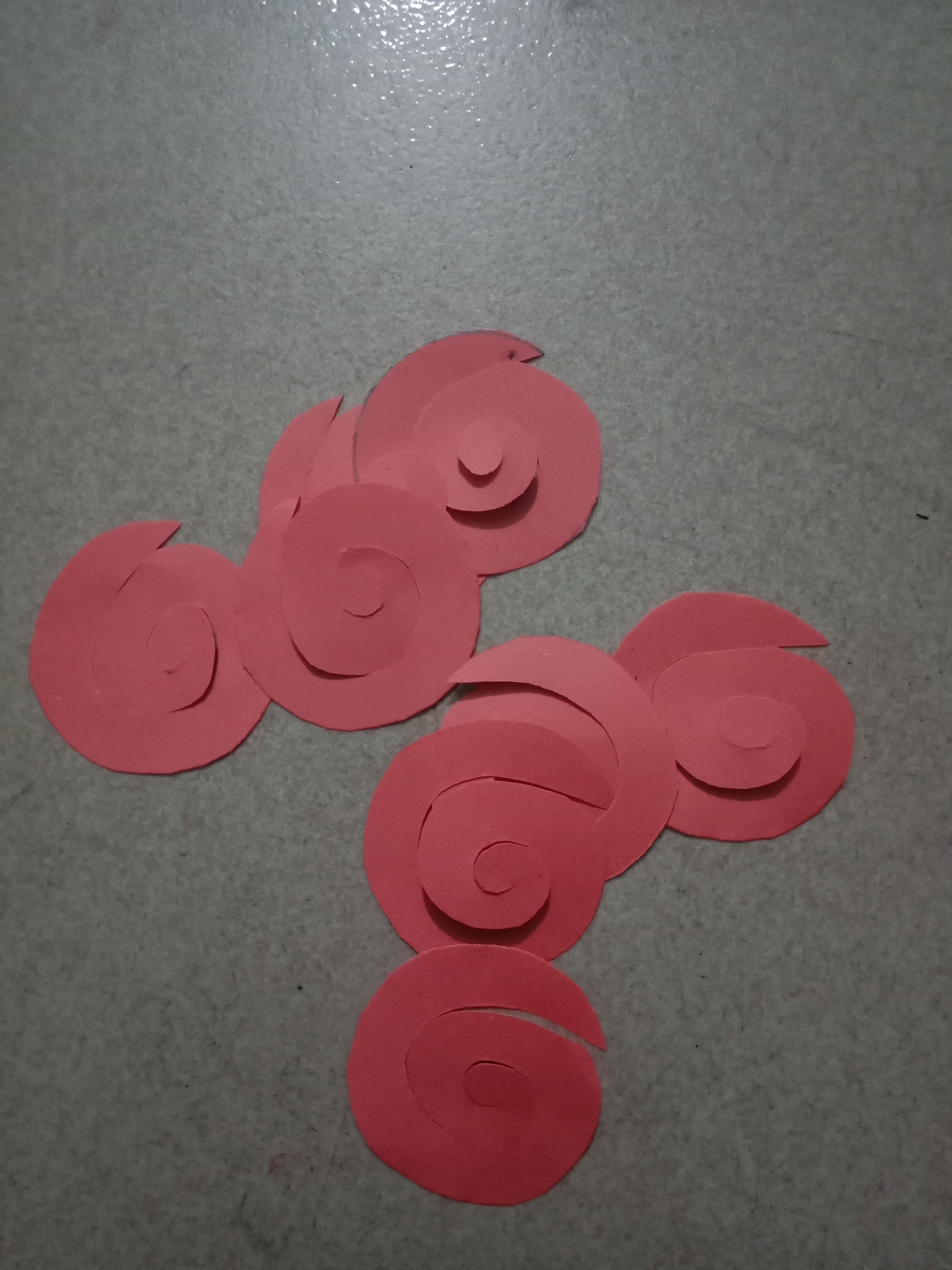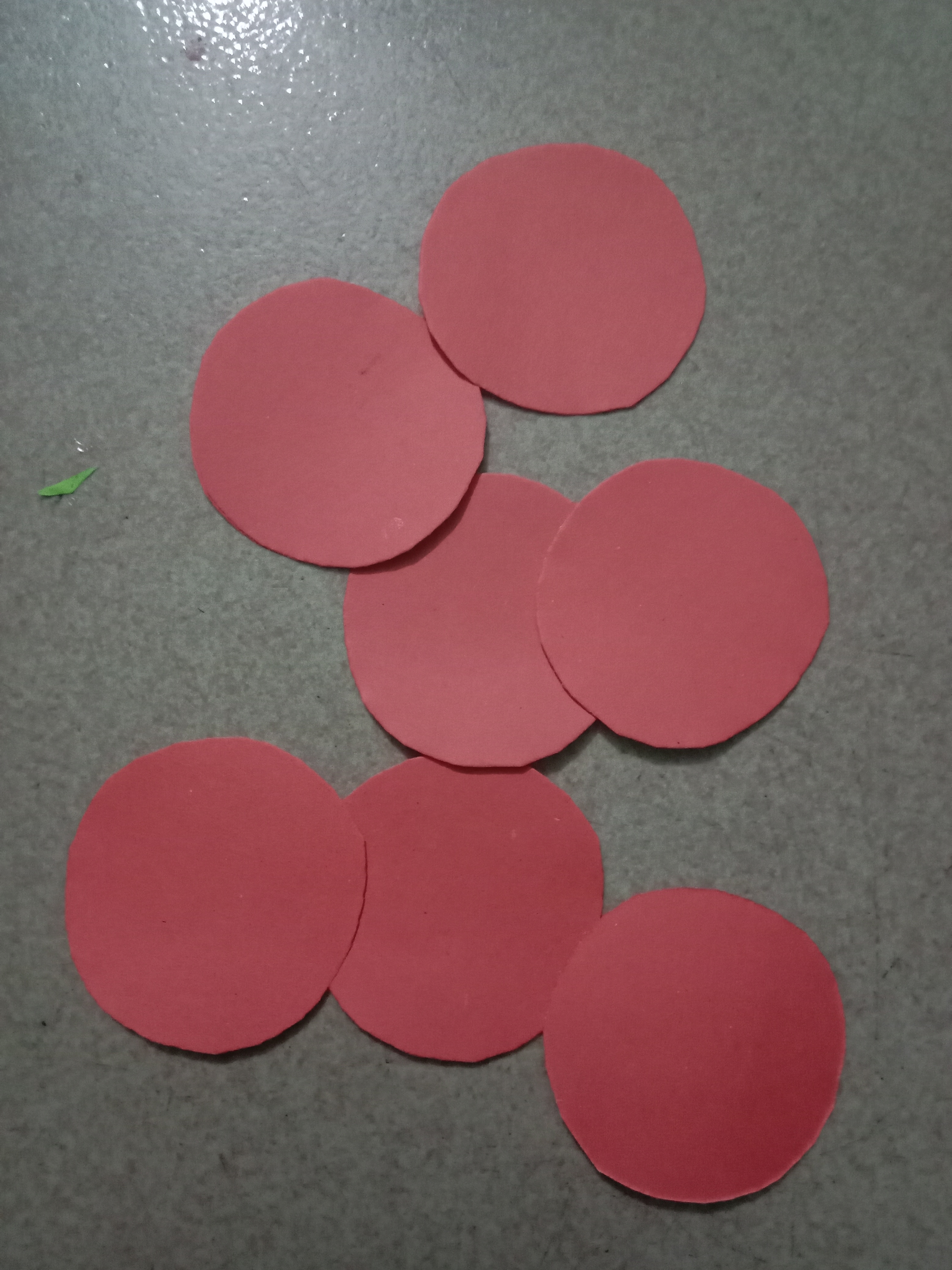 এবার আবারও লাল কাগজ গোল করে কেটে নেবো। এরপর আবার ভিতরে সম্পূর্ণ গোল অংশ কেটে নেবো।