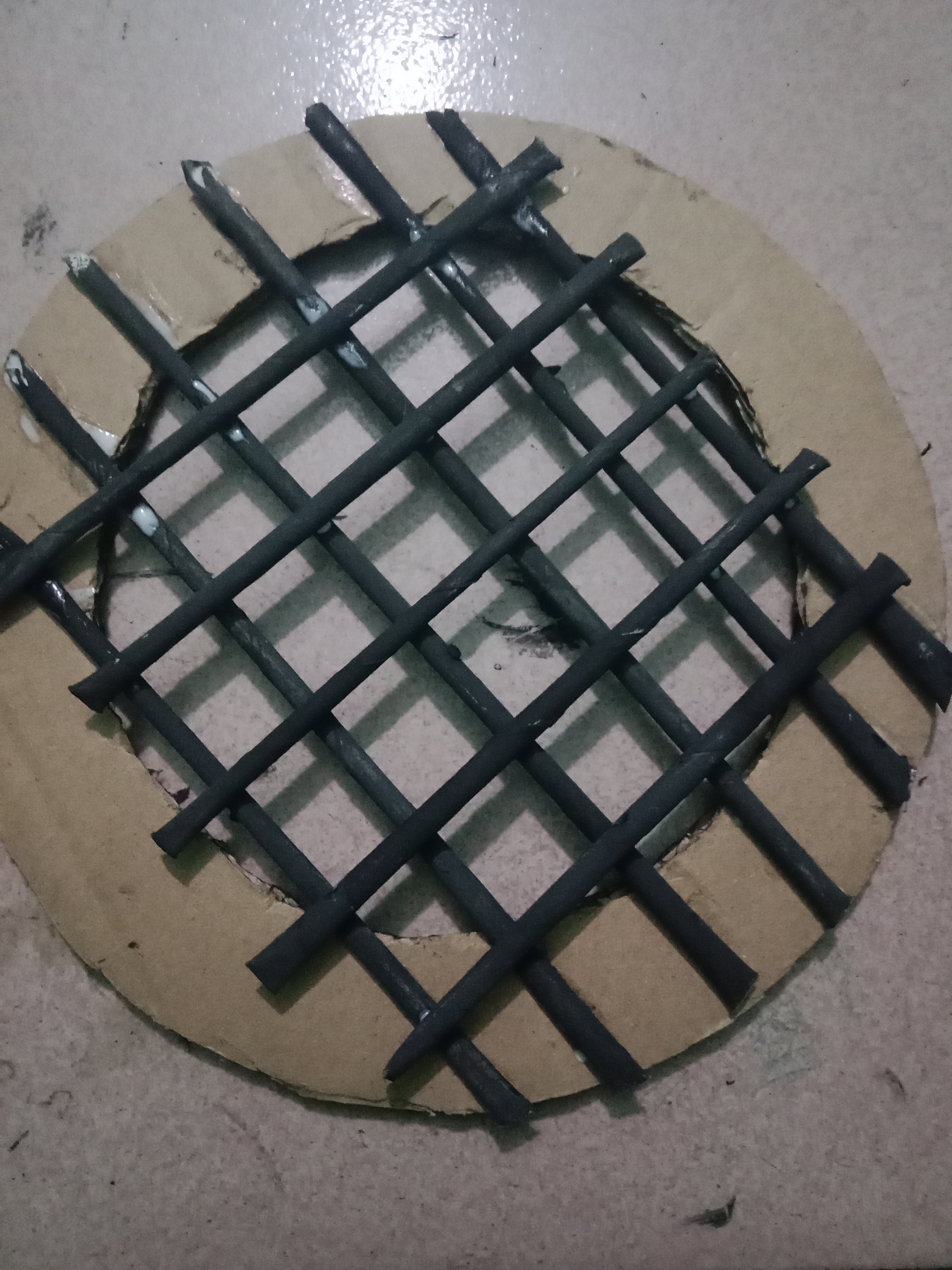 এবার এই চিকন কাঠি গুলো গোল কাটুন পেপারের পিছনে গাম দিয়ে লাগিয়ে নিলাম।