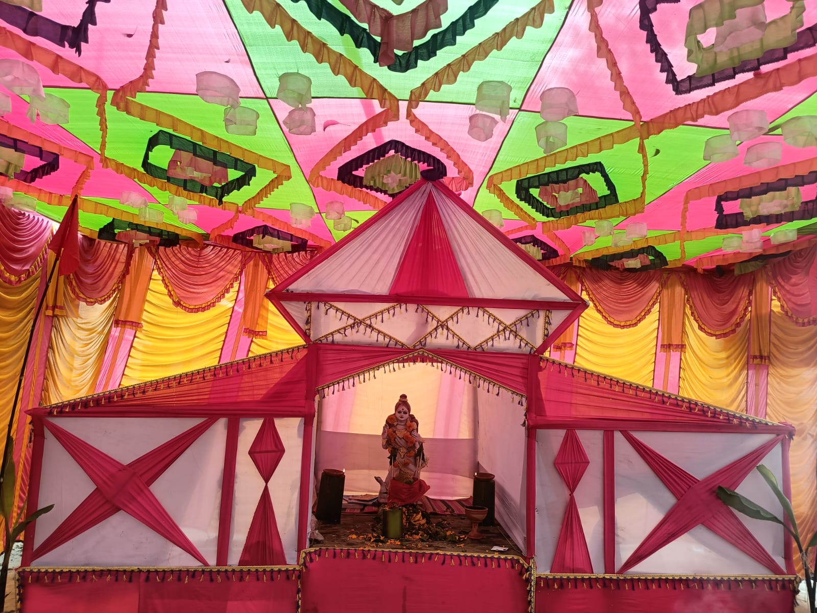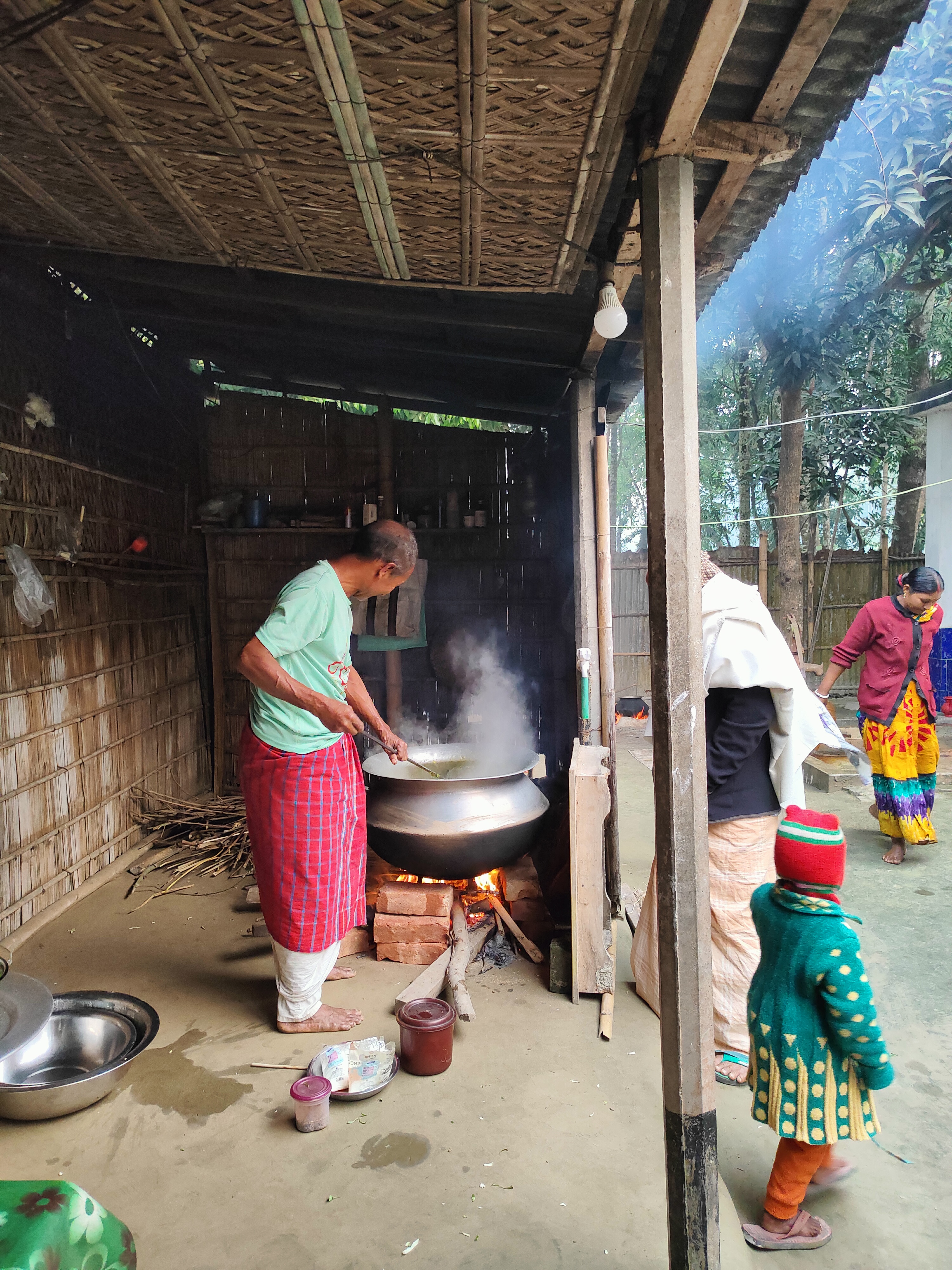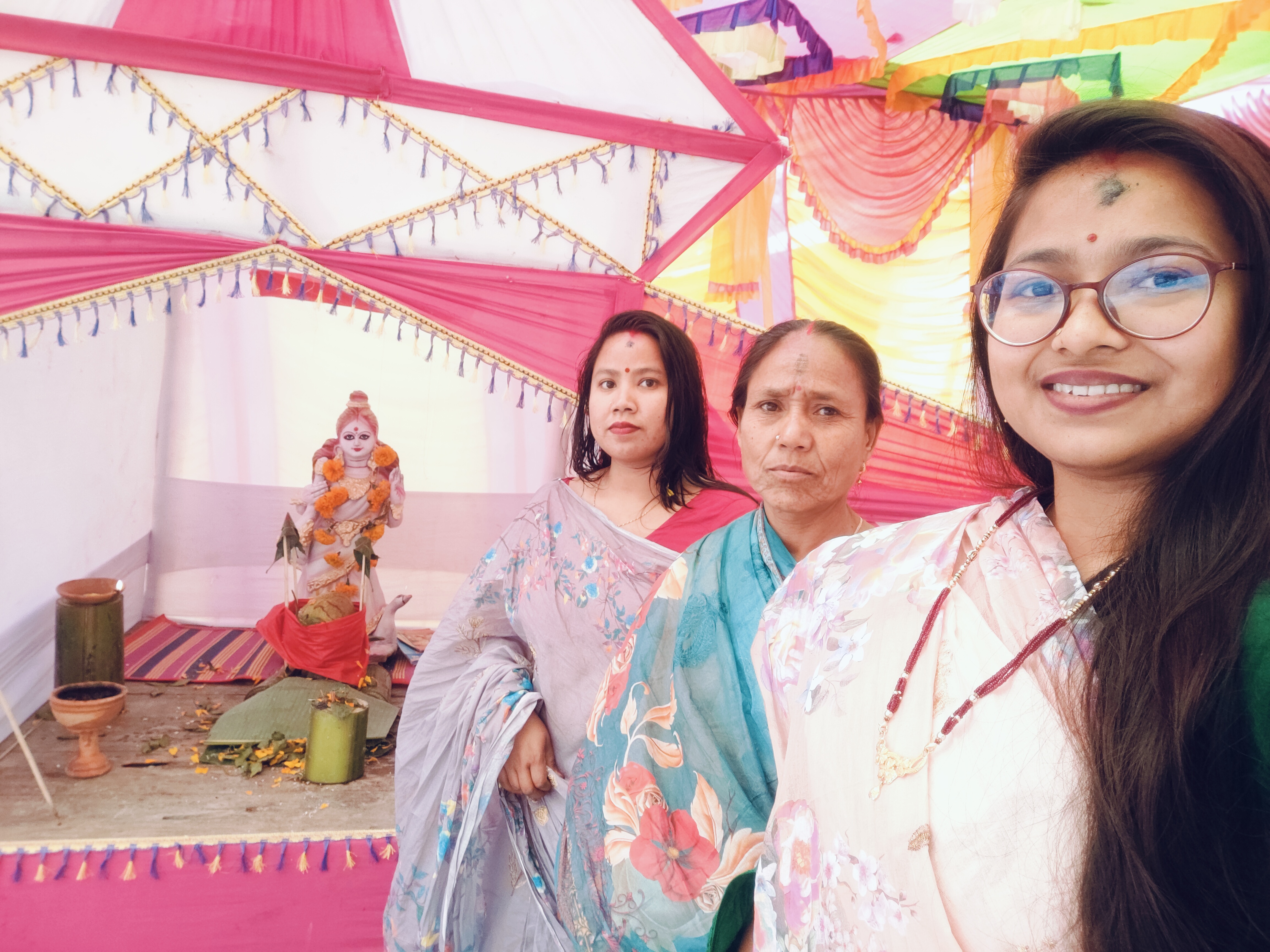 পুজোর যোগাড় যেগুলো বাহিরে থেকে করার, সেগুলো তো আগেই করা ছিলো। তারপরেও আমপাতা, বেলপাতা, ফুল, বরি এর ডাল সহ প্রসাদের জন্য পাঁচ-ফল এবং অন্যান্য ভোগের প্রসাদ এর ব্যবস্থা করতে হবে৷ তাই ভোরে সাড়ে পাঁচটা থেকে উঠে স্নান করে সেসব জোগাড় করতে শুরু করে দিলাম আমরা দুই বউ। ওদিকে ভক্তদের প্রসাদের জন্য ইয়া বড় হাড়িতে রান্নার লোক রান্না বসিয়েছেন।
