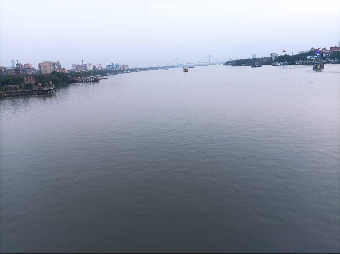 এখন সময়টা ঠিক বিকাল। আমি গঙ্গা নদীর পাড়ে এসে পৌঁছেছি। গঙ্গা নদীর পাড় ধরেই রবীন্দ্র সেতুতে পৌঁছাব বলে ঠিক করেছি। এই সময়টা নদীর চারপাশে প্রচন্ড হাওয়া বইছে। যেন মন জুড়িয়ে যায় এরকম হওয়া। আমি গঙ্গা নদীর একটি চিত্র আমার ক্যামেরা দ্বারা বন্দি করেছি যেটি আমি আপনাদের সাথে ভাগ করে নিচ্ছি।