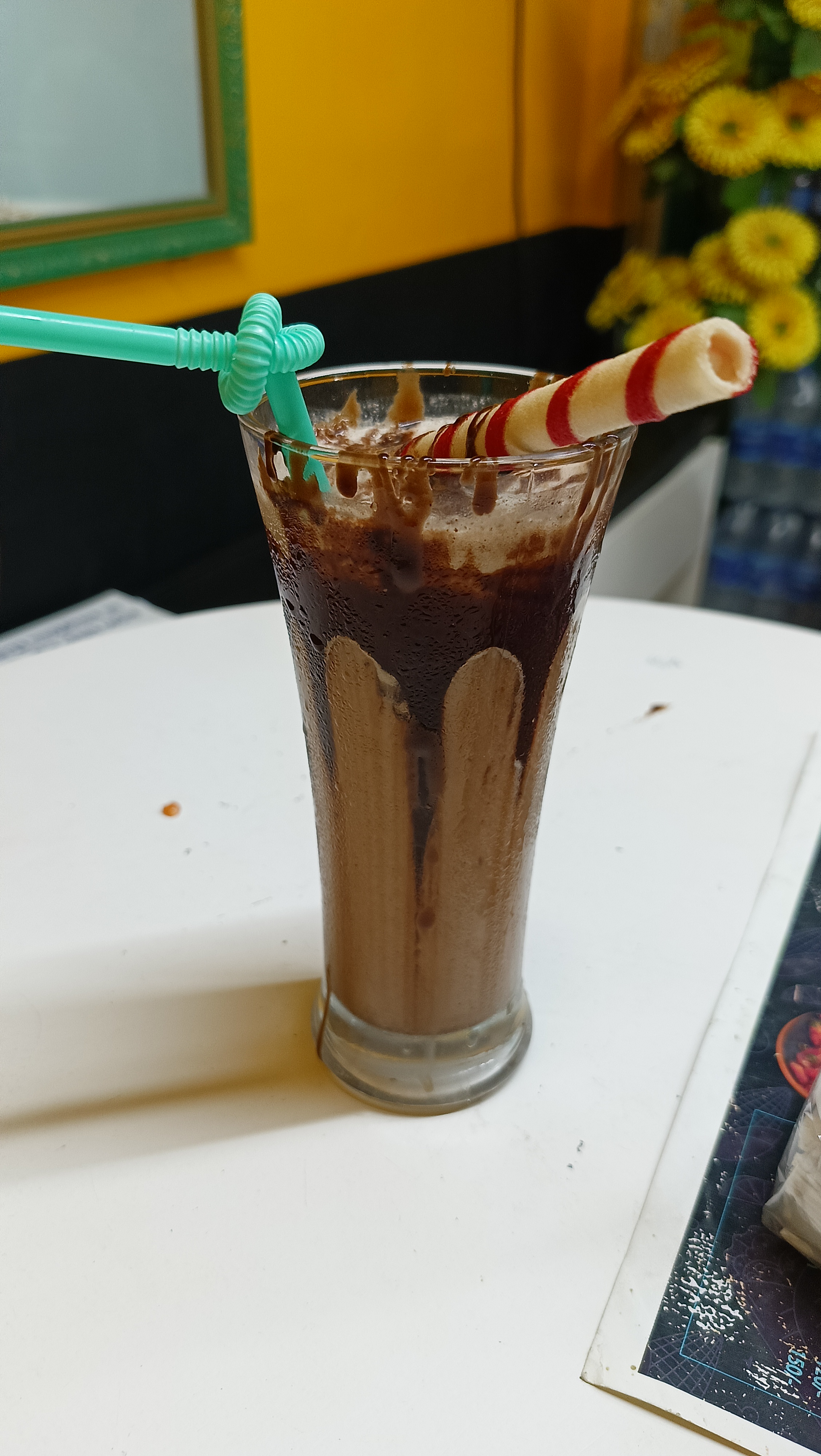 এটি হচ্ছে চকলেট মিল্কশেক । বেশ কিছুদিন আগে একটি রেস্টুরেন্ট থেকে এই মিল্ক শেক খেয়েছিলাম ।এমনিতে মিল্কশেক আমার খুব একটা খাওয়া হয় নি ।তবে এই রেস্টুরেন্ট থেকে চকলেট মিল্কশেক খাওয়ার ইচ্ছা হয়েছিল তাই অর্ডার করেছিলাম ।এমনিতে আমার ধারণা ছিল চকলেট মিল্কশেক খেতে খুব একটা ভালো হবে না। কিন্তু খাবার পর দেখি এটি খেতে খুবই চমৎকার। একবার খেয়ে এটি খাবার আগ্রহ আরো অনেক বেড়ে গিয়েছে।