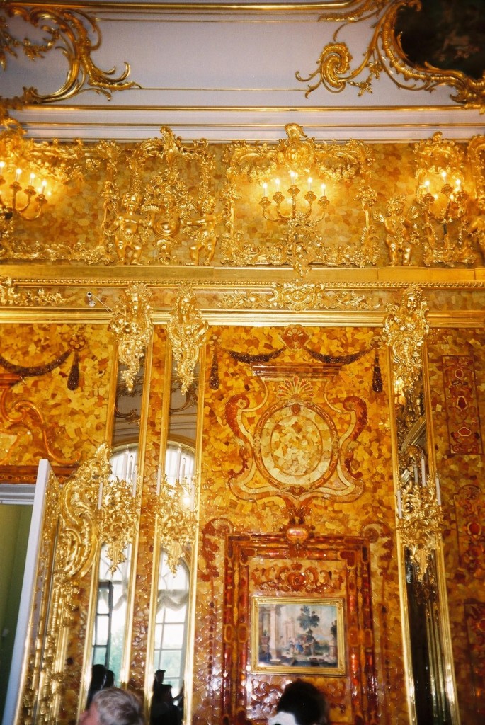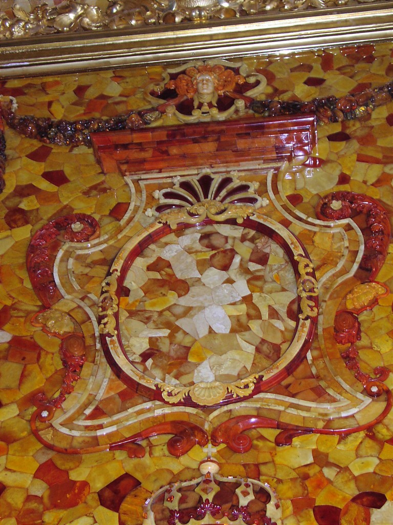 In 1755 the Empress Elizabeth decided that the room should be moved from the Winter House to Tsarskoye Selo, or “Czar’s Village”, a summer residence of the court. The panels were to be installed in the Catherine Palace, but the space was larger than the previous one, and the room had to be made bigger. It was really magical and fabulous with six tones of amber and other stones – the panels covered as much as 180 square feet of royal walls and were sparking with all shades of yellow – lemon, pear, honey, mustard, apricot, golden, saffron yellow and many others.
