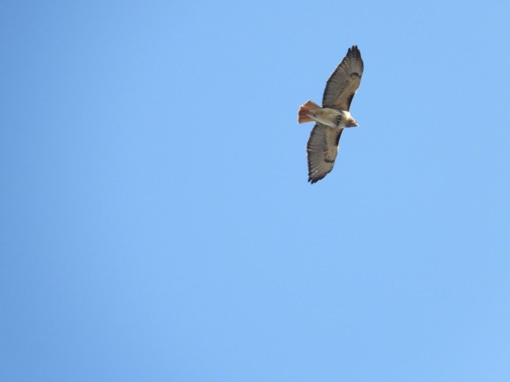 No idea why, but if I go outside between 4:45 and 5:15 and wait for a few minutes, I'll almost always see some sort of raptor flying overhead. Maybe it has something to do with cars on the highway during "rush hour"? It's so reliable that I have nicknamed this time of day, "The Hawking Hour". So far, I've seen Turkey Vultures, Red-tailed Hawks, and even a Bald Eagle during this time of day.