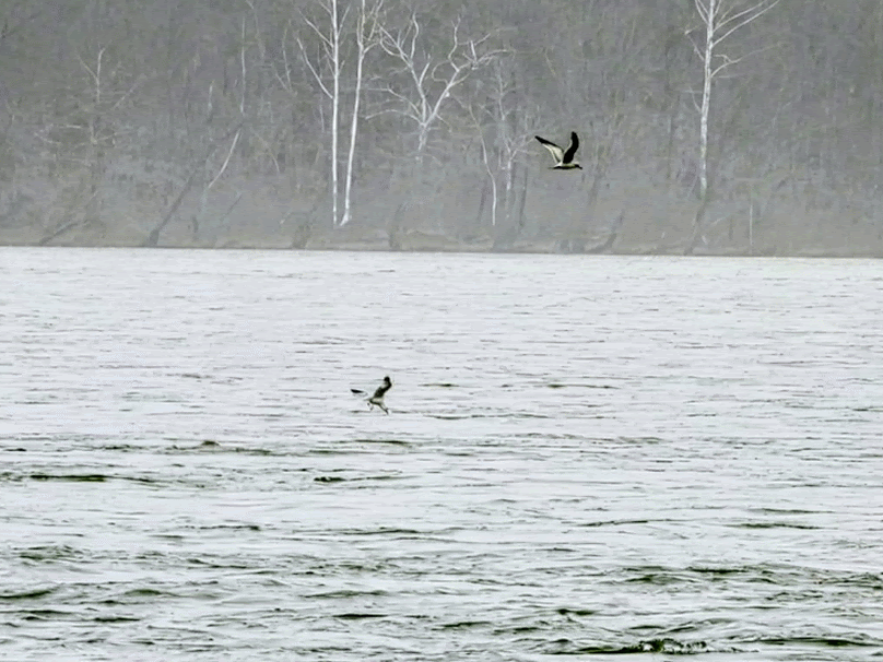 Once on the pier, we began birdwatching and photography for about an hour, capturing photos of a few Bald Eagles in flight and roosting in trees on the far side of the river. Just to practice "bird in flight" photography, I also took some photos of gulls flying overhead. I think my best sequence from the day was probably an inflight series of a Great Blue Heron flying on the far side of the river that I captured from the pier. I turned it into a gif with flapping wings, but I don't think the motion will display here.