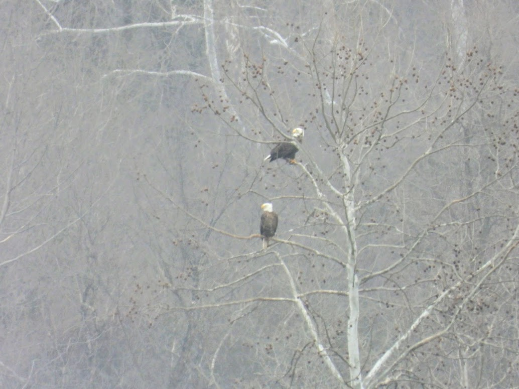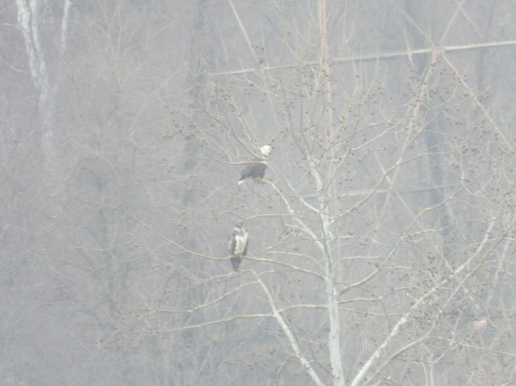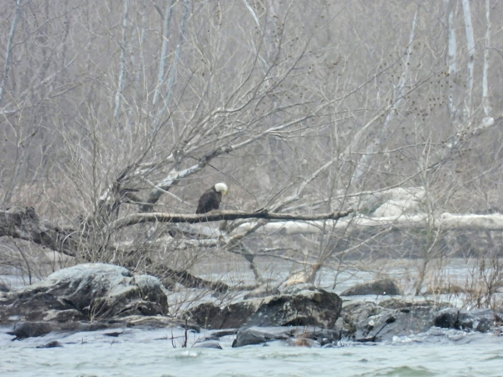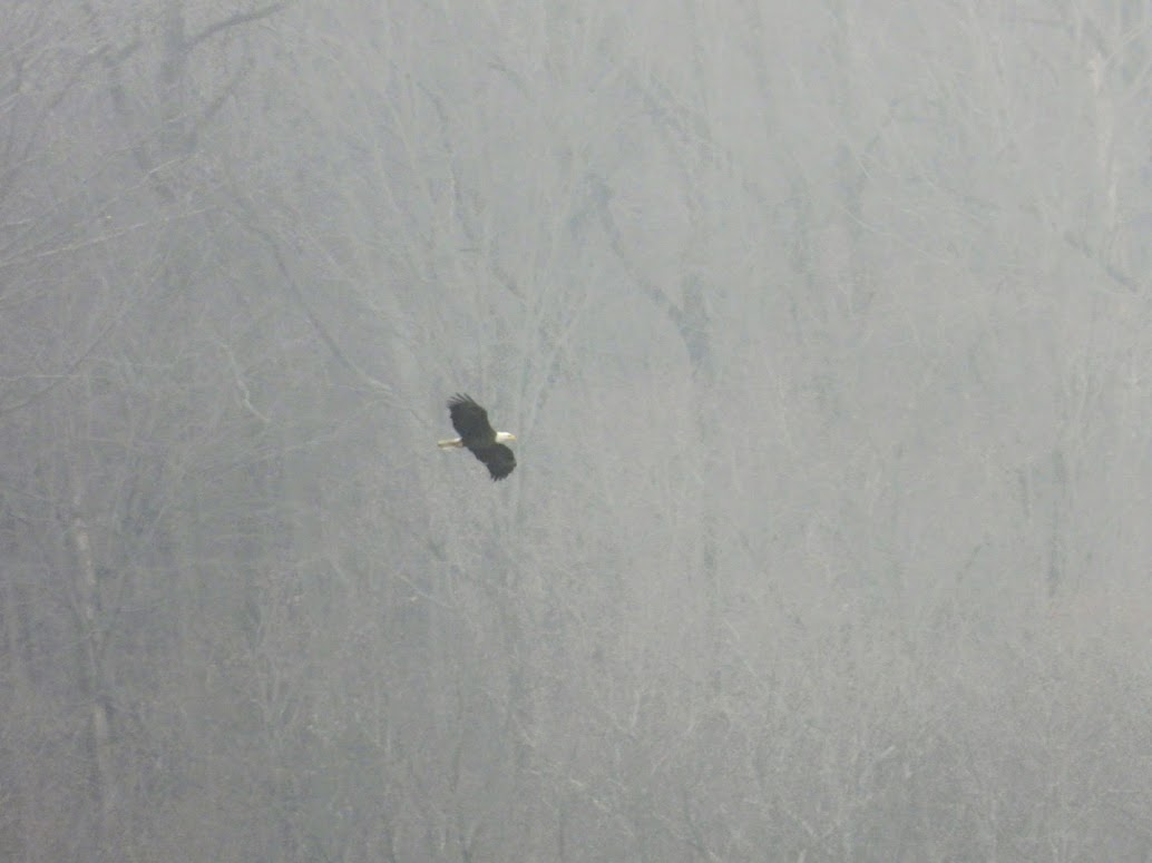 After learning about them, I naively thought that we could show up at any time and see Bald Eagles. As I learned in October, however, it's actually seasonal due to the species' migration habits. When the northern lakes freeze in the winter, the Bald Eagle migrates south because fish is a key portion of its diet. When the lakes melt, many of the eagles migrate north again. Some eagles remain in residence all year long, but most of them are transients. Here's what I wrote in my previous post: