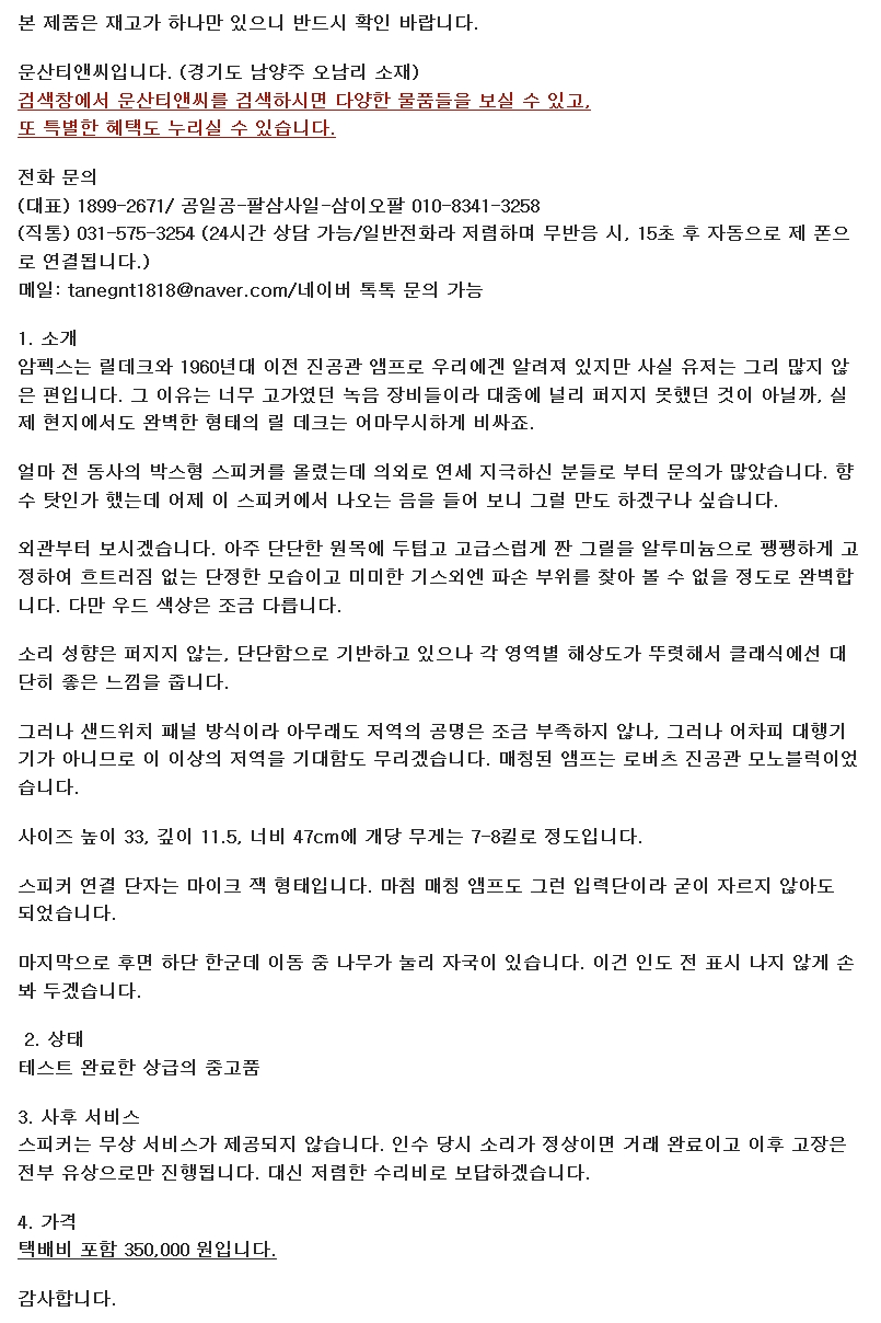 암펙스 와이드 레인지 스피커 1조
