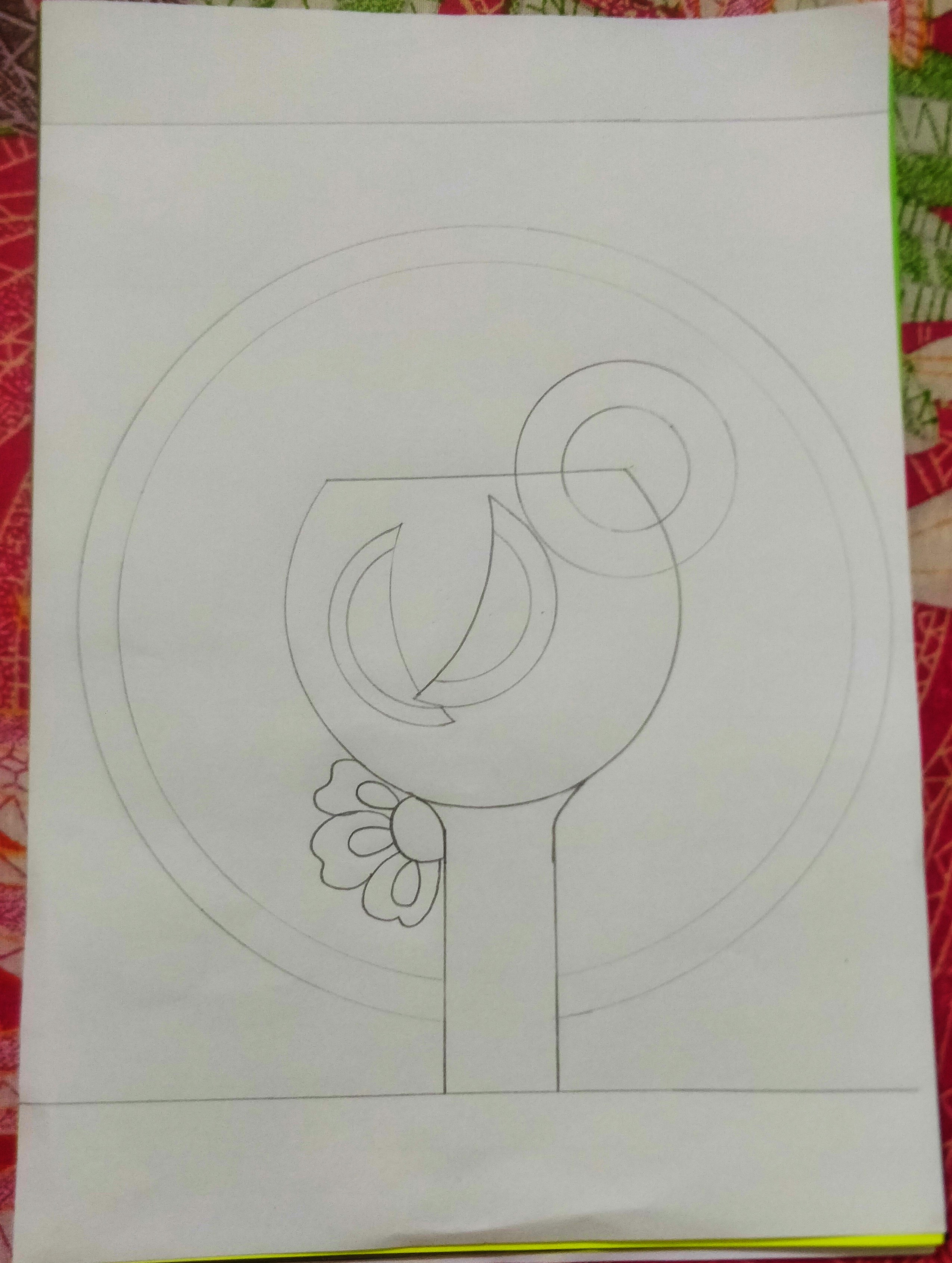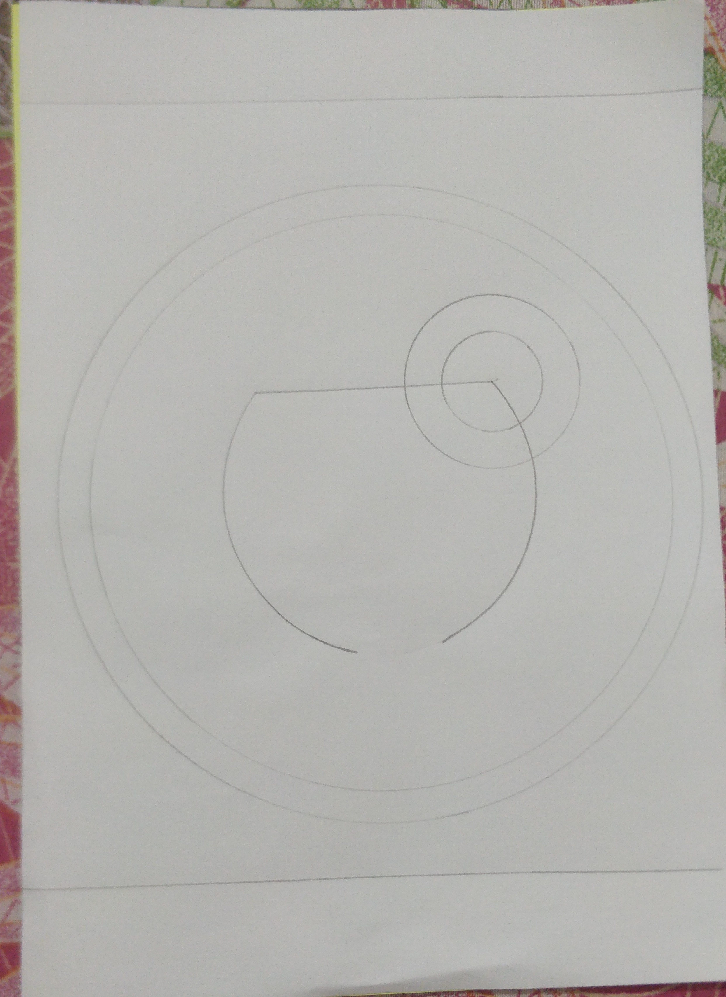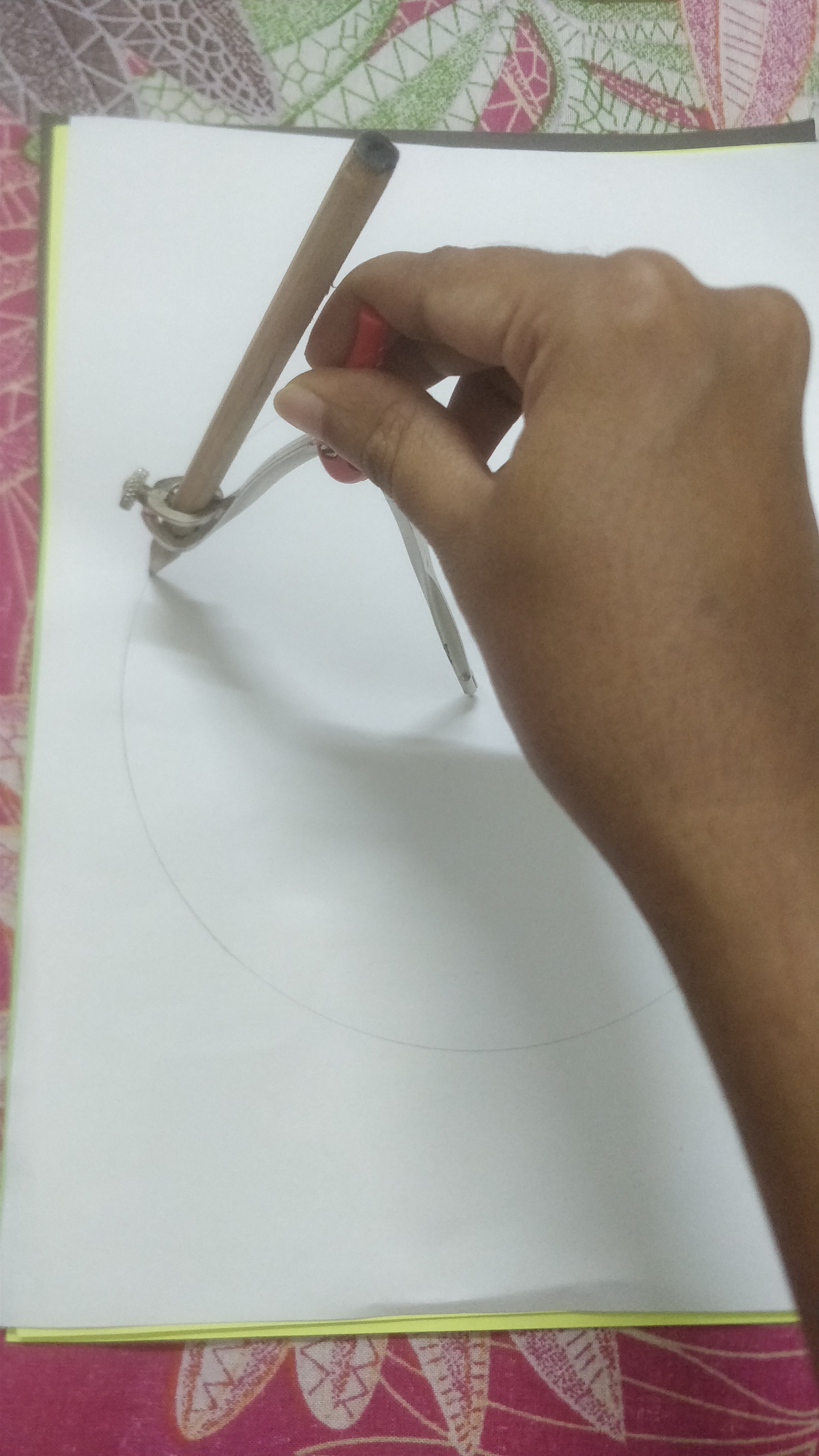 একটা কাগজে পেন্সিল কম্পাসের সাহায্যে বড় একটা বৃত্ত দেই।