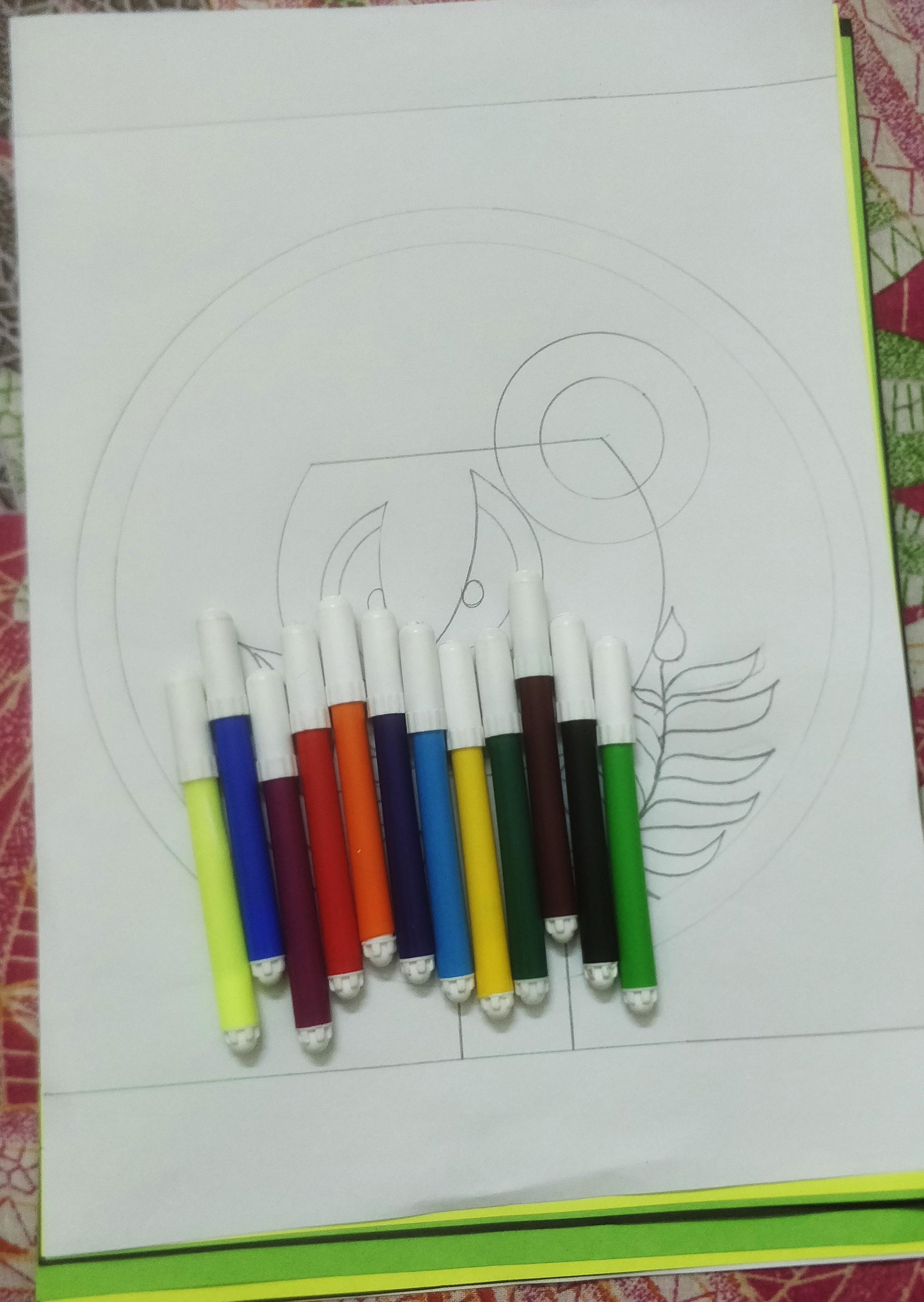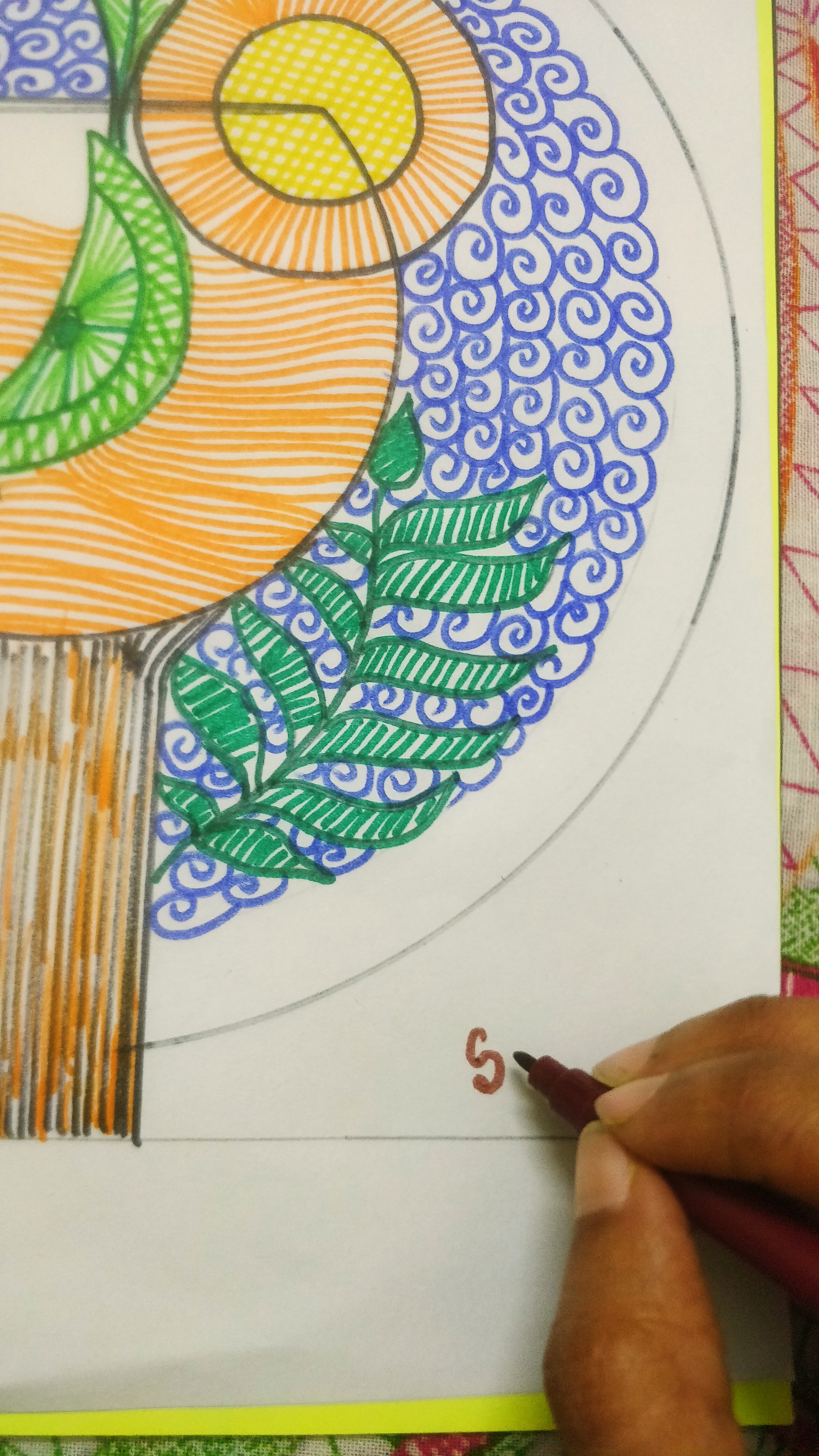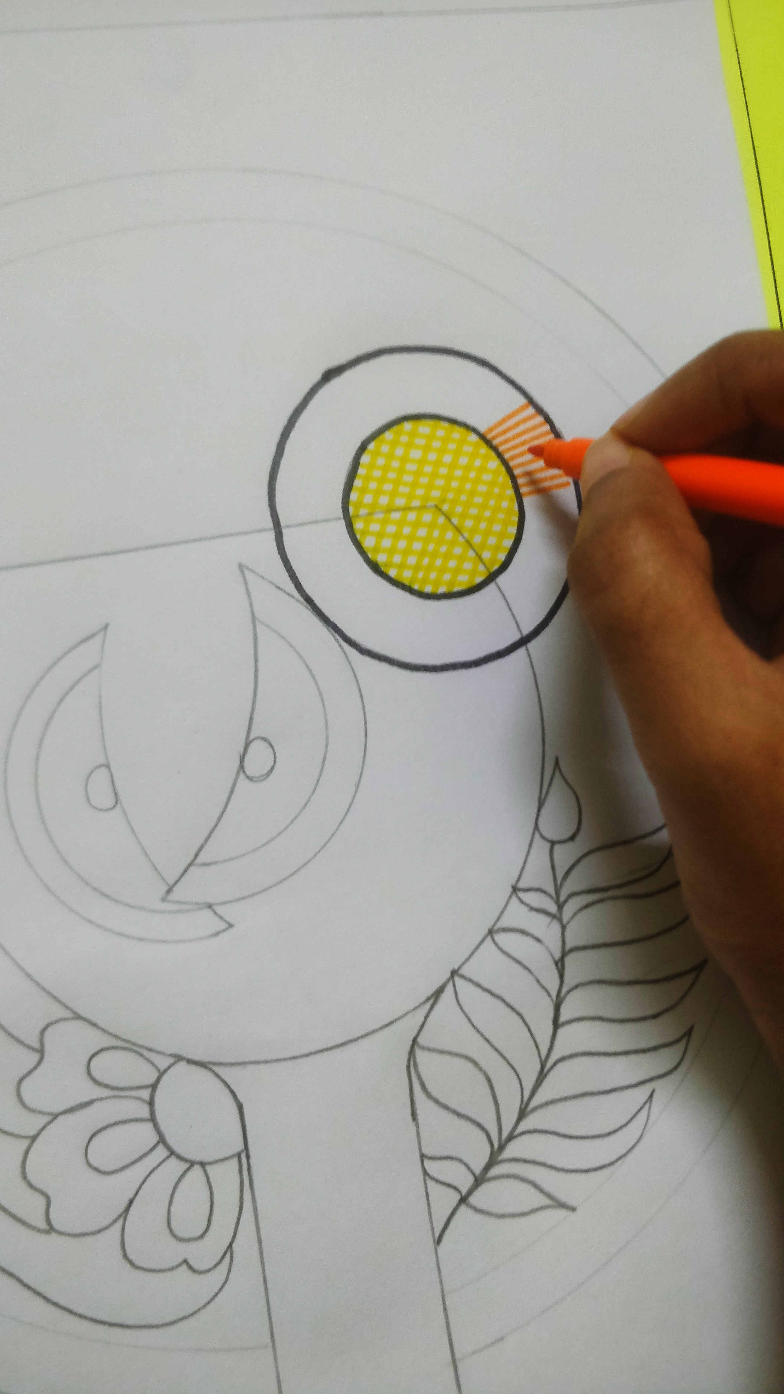 এখন আমি পুরা ডিজাইন টা কালার পেন দিয়েই করবো।