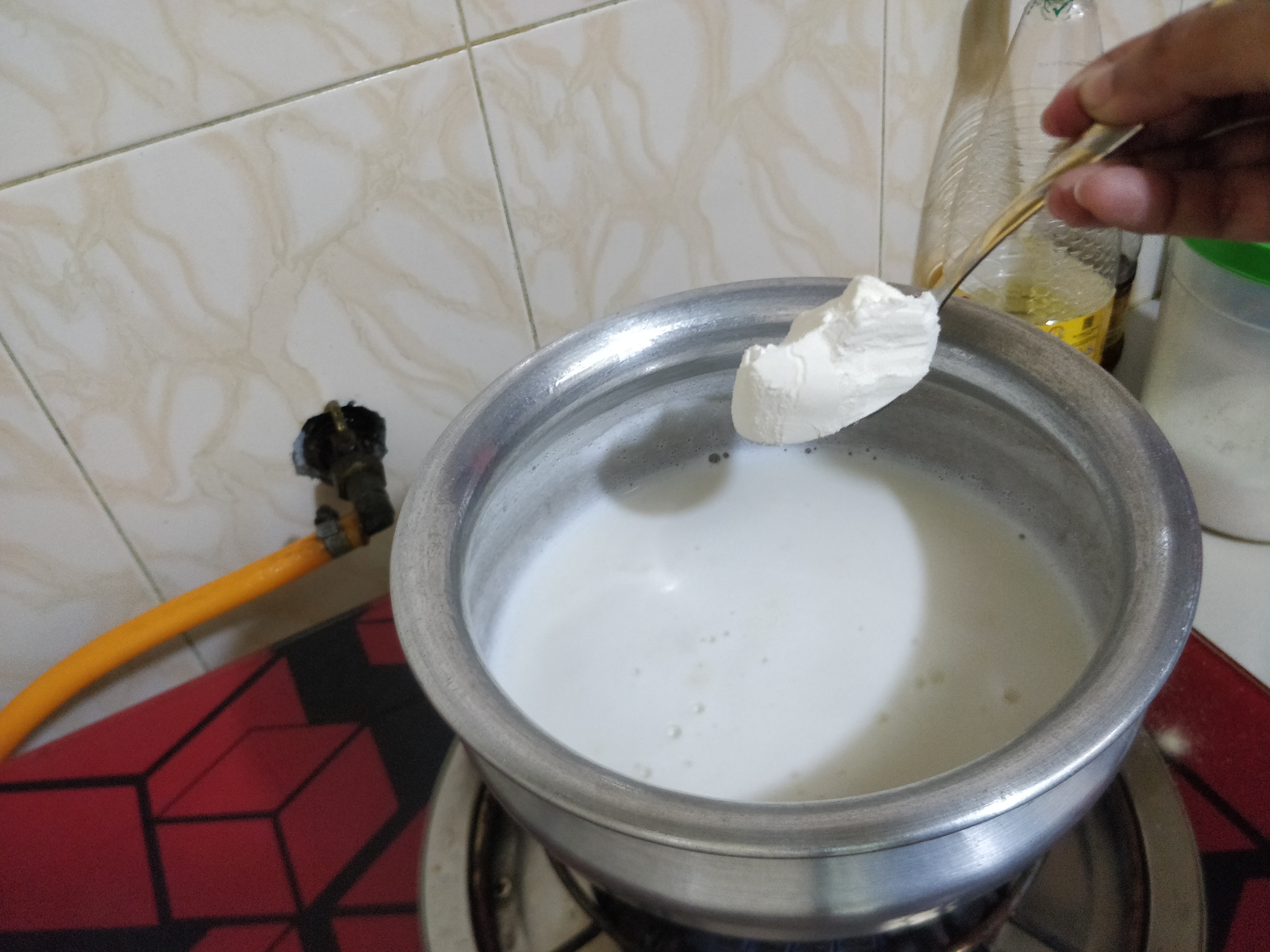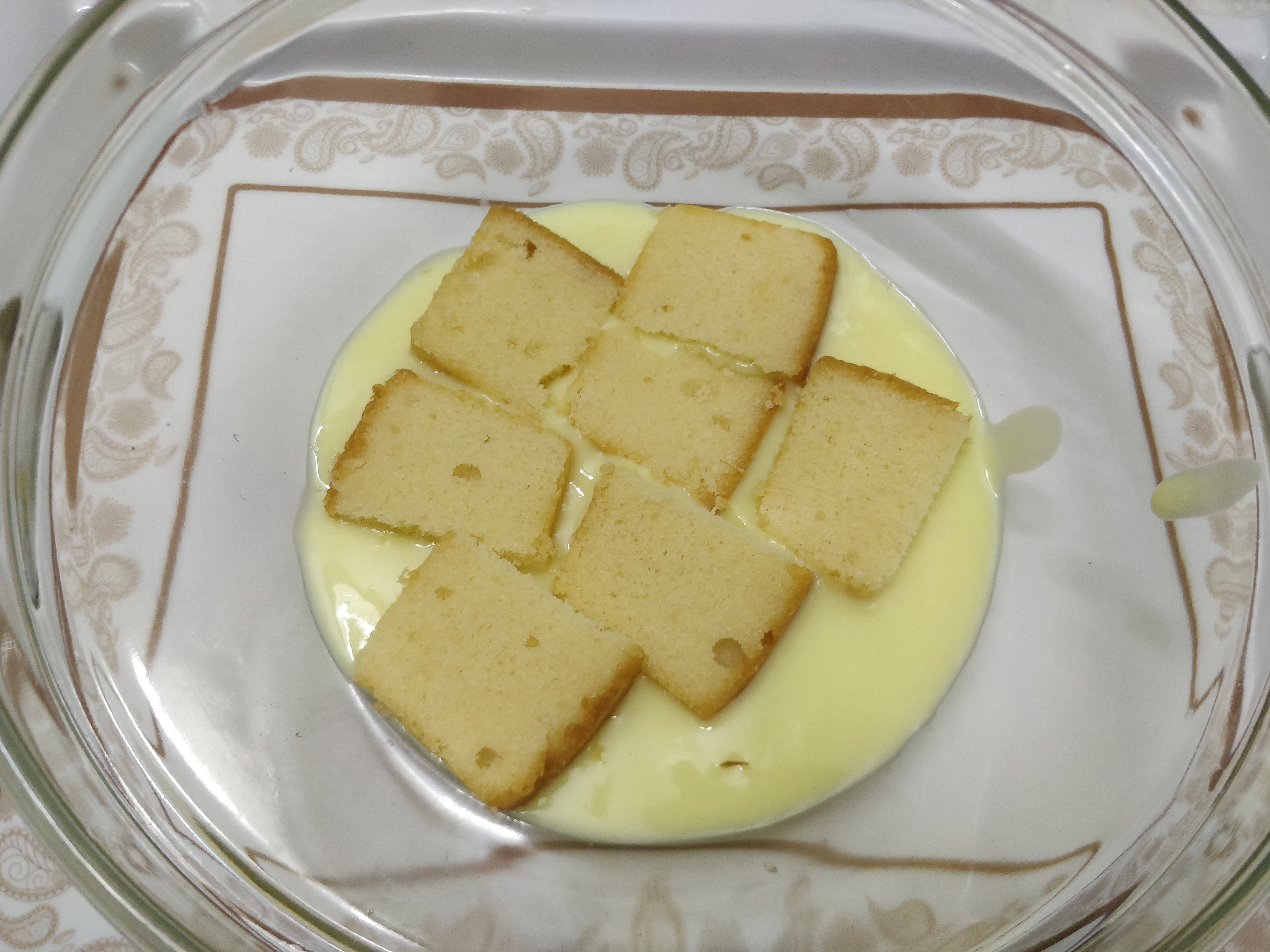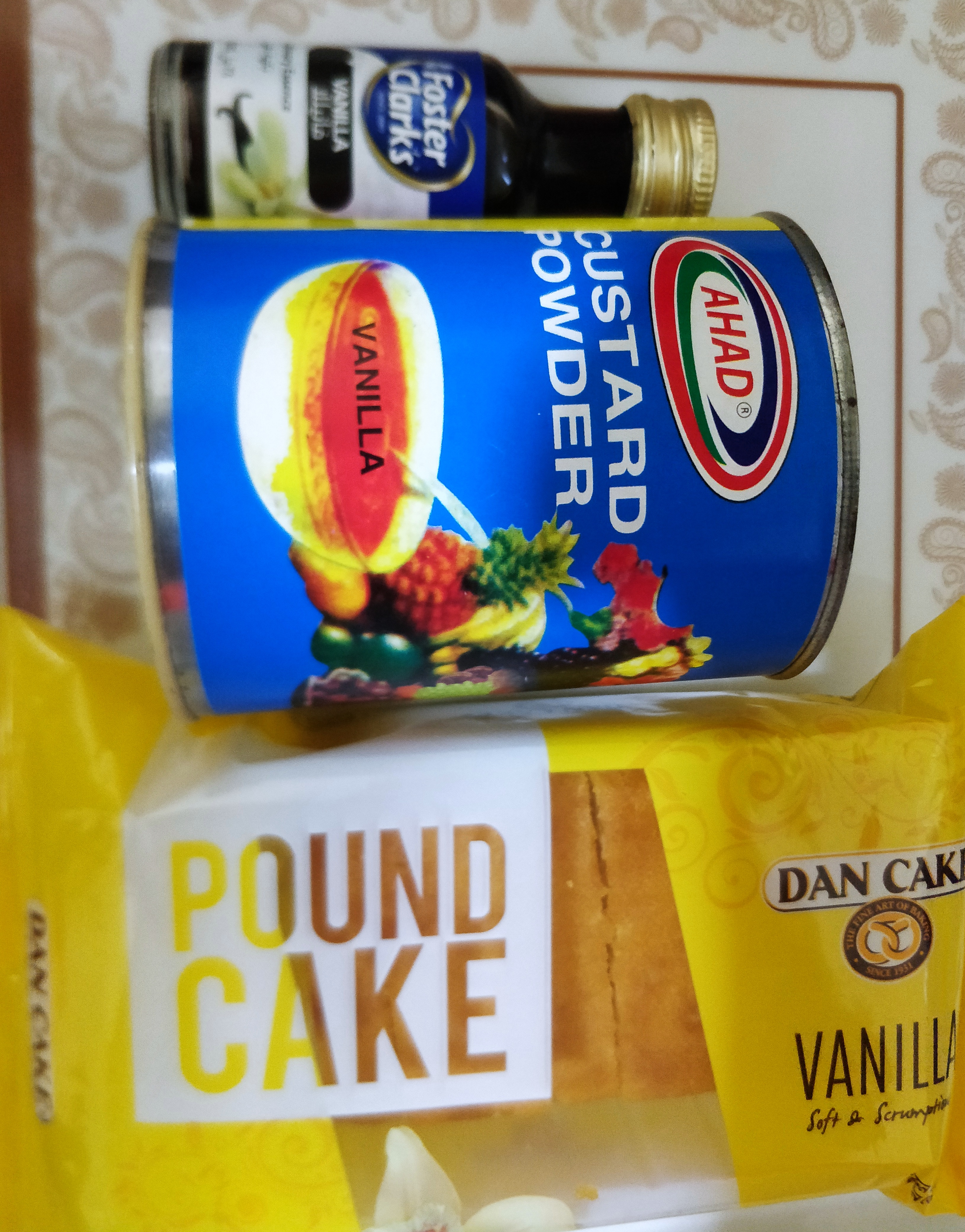 প্রথমে একটা পাতিলে আধা কেজি তরল দুধ নিয়ে ,কিছুক্ষন পর চিনি দিয়ে নেড়েচেড়ে তারপর দুই চামচ গুঁড়া দুধ দিয়ে আবার ও নেড়েচেড়ে তিন টেবিল চামচ ফ্রুট কাস্টার্ড পাউডার দিয়ে কিছুক্ষণ অপেক্ষা করতে হবে তারপর অল্প পরিমাণে ভ্যানিলা এসেন্স দিয়ে নাড়তে হবে। দুধ ঘন হয়ে আসলে নামিয়ে নিতে হবে ,তারপর দুধ ঠান্ডা হওয়া পর্যন্ত অপেক্ষা করতে হবে ।