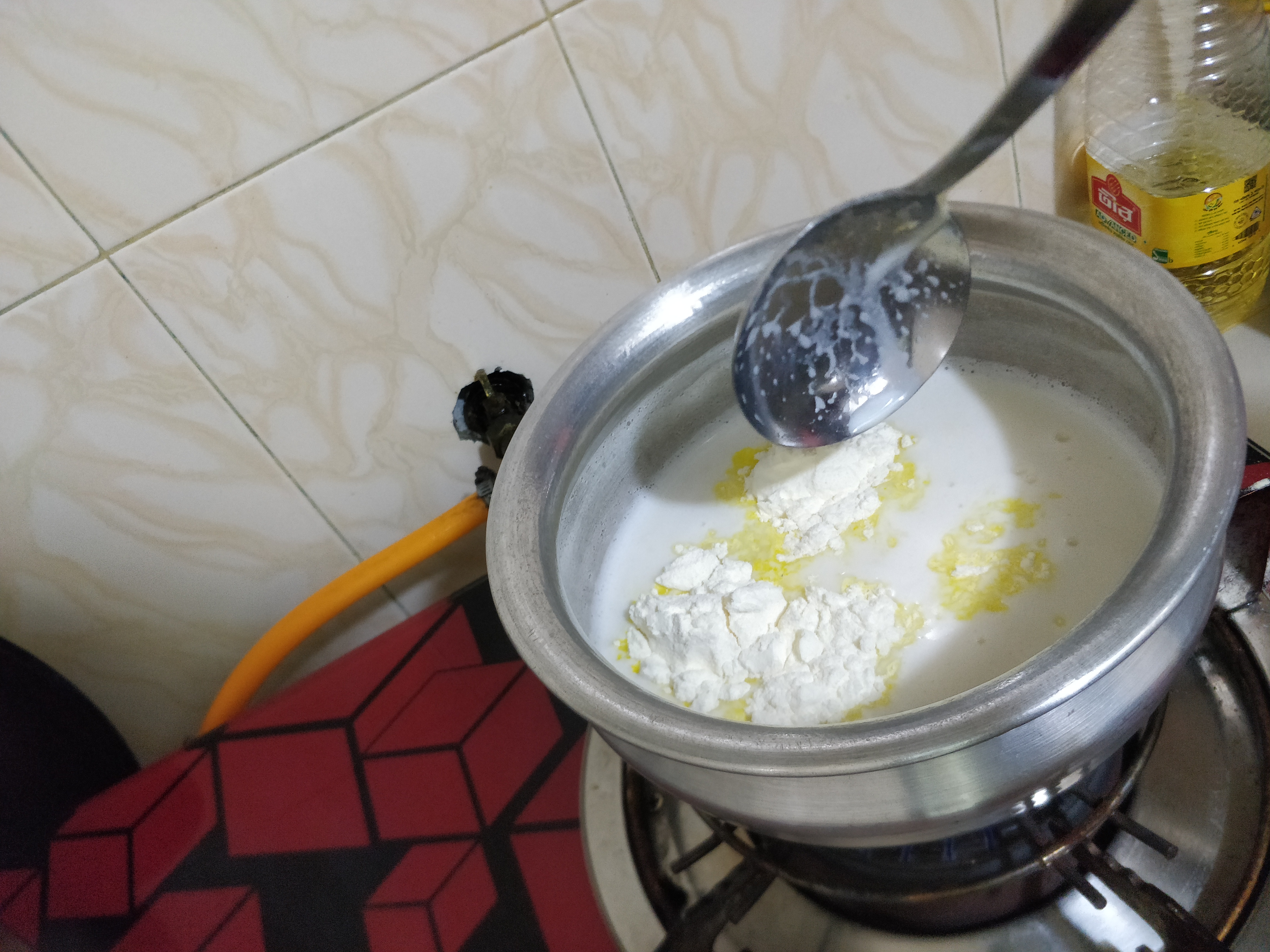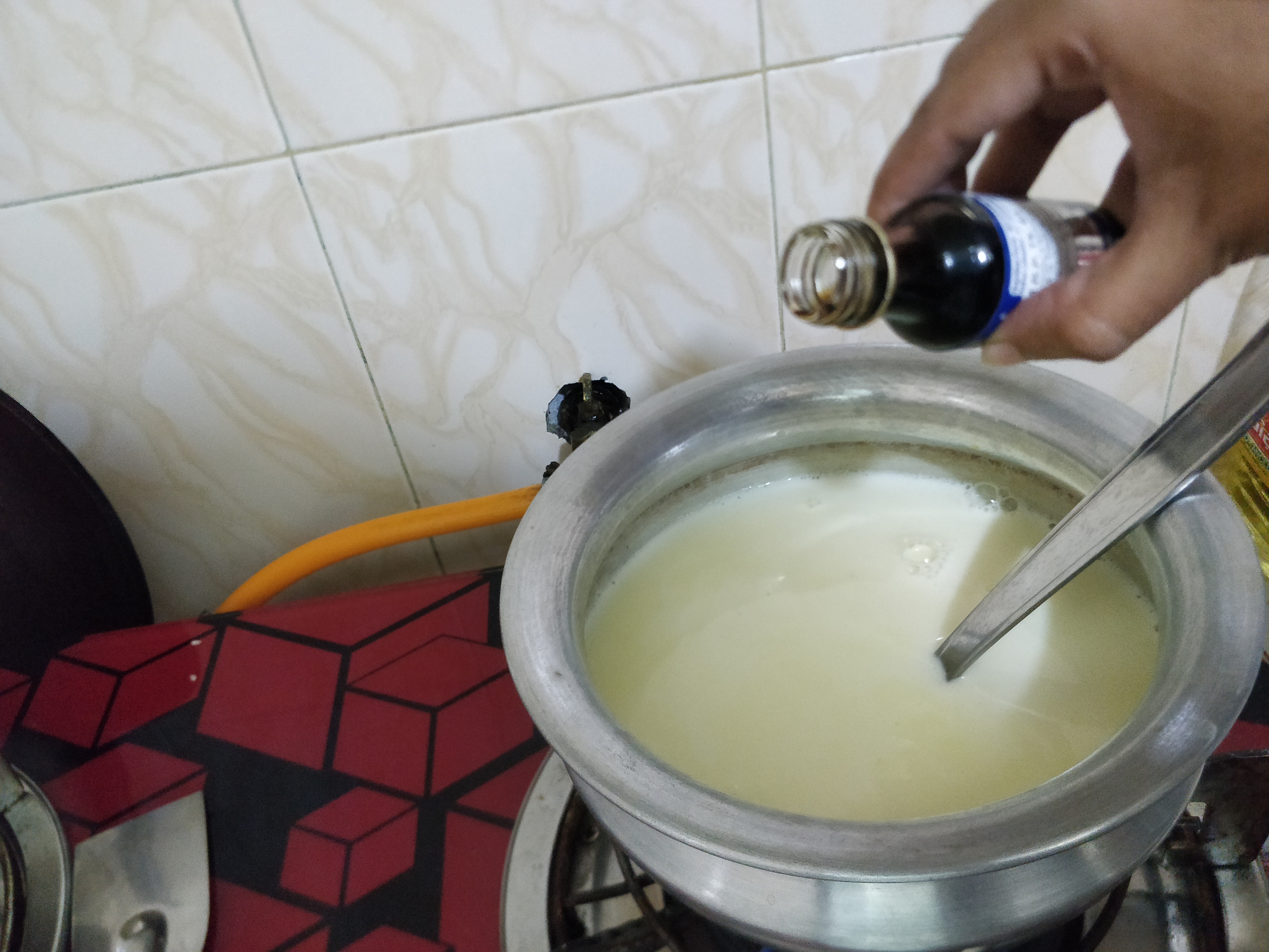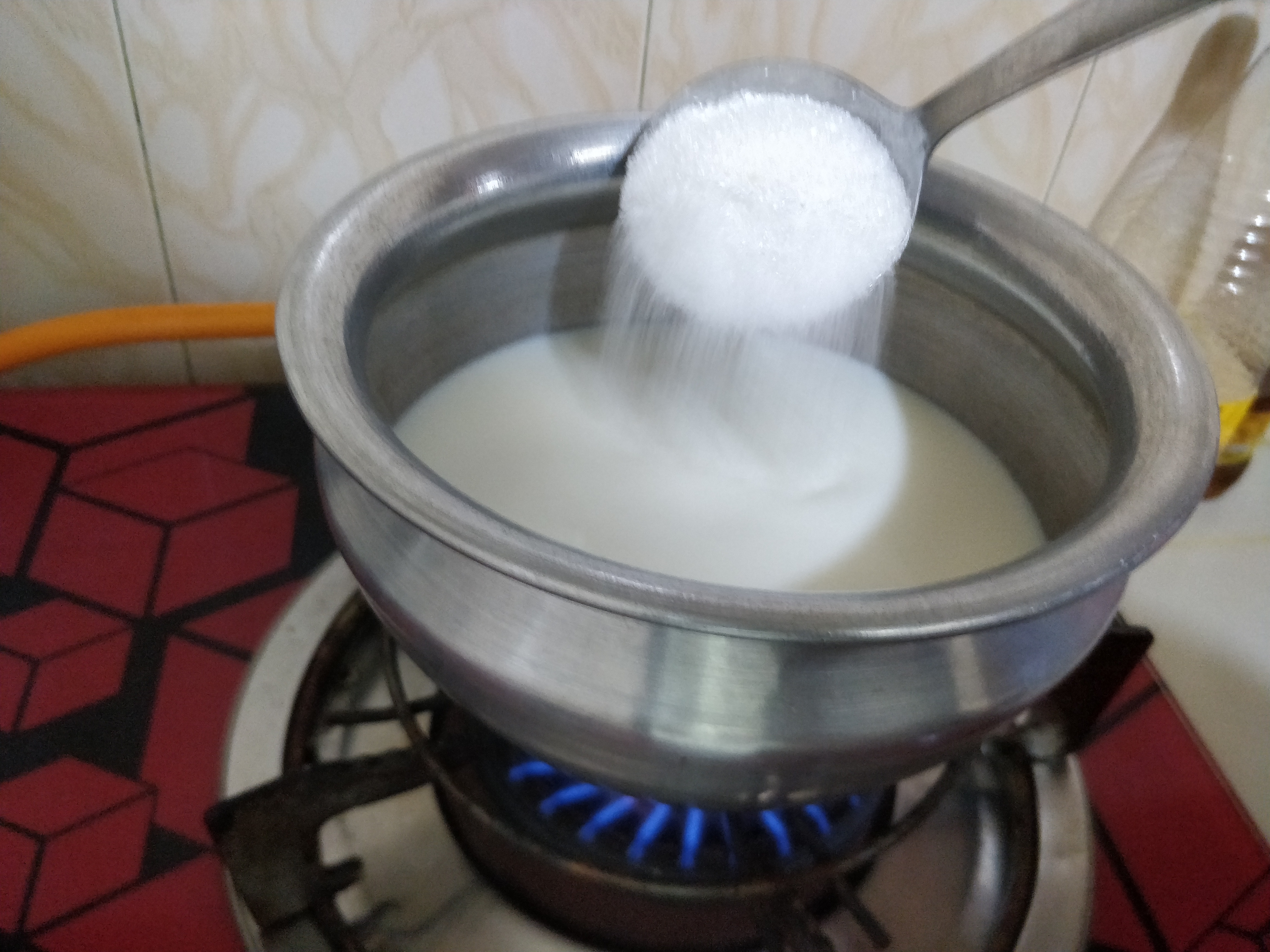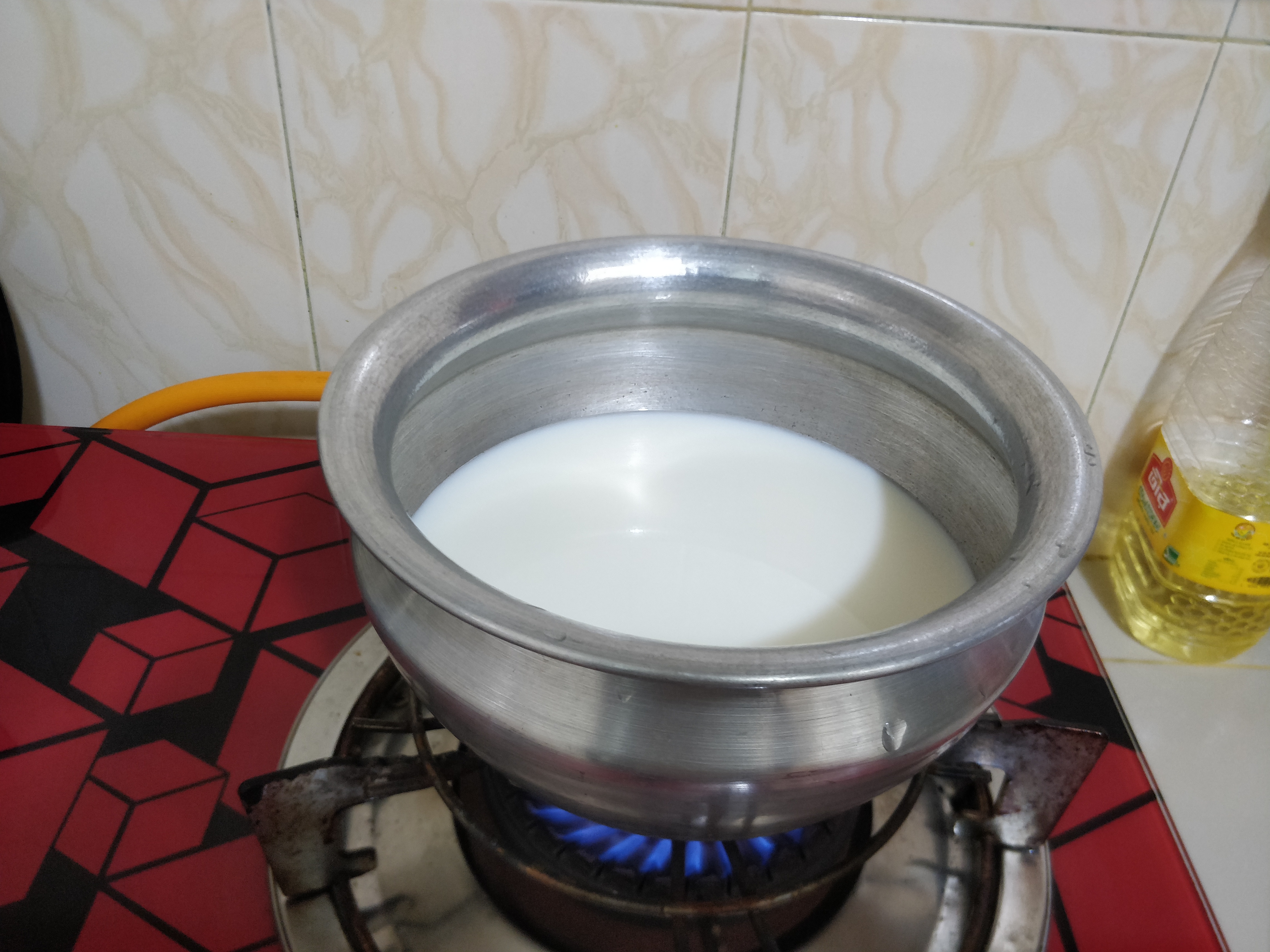 প্রথমে একটা পাতিলে আধা কেজি তরল দুধ নিয়ে ,কিছুক্ষন পর চিনি দিয়ে নেড়েচেড়ে তারপর দুই চামচ গুঁড়া দুধ দিয়ে আবার ও নেড়েচেড়ে তিন টেবিল চামচ ফ্রুট কাস্টার্ড পাউডার দিয়ে কিছুক্ষণ অপেক্ষা করতে হবে তারপর অল্প পরিমাণে ভ্যানিলা এসেন্স দিয়ে নাড়তে হবে। দুধ ঘন হয়ে আসলে নামিয়ে নিতে হবে ,তারপর দুধ ঠান্ডা হওয়া পর্যন্ত অপেক্ষা করতে হবে ।