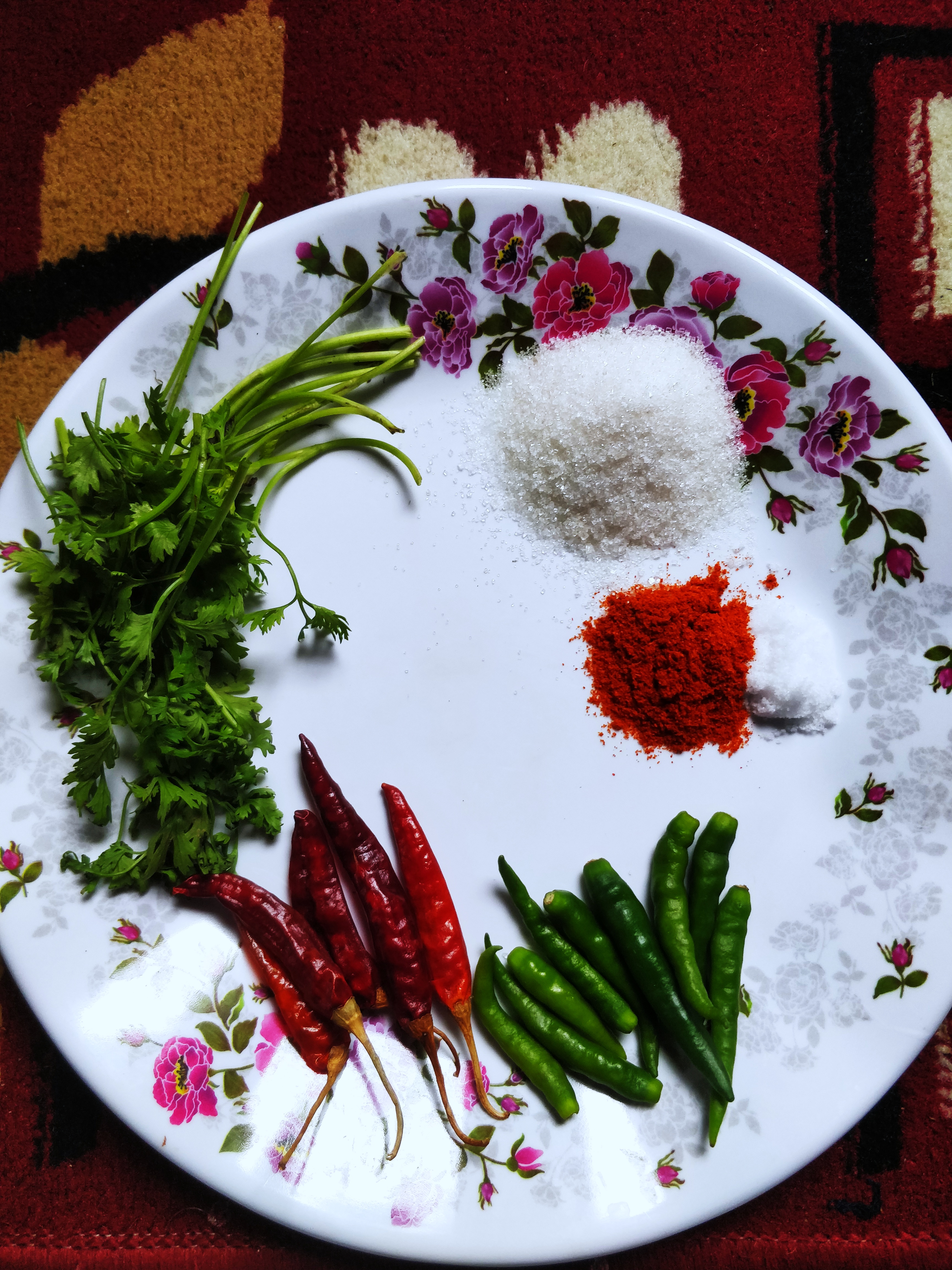 তারপর উপরের উপাদান (কাঁচা মরিচ, ধনিয়া পাতা)কুচি কুচি করে কেটে ,সাথে স্বাধ মত লবন ,গুঁড়া মরিচ, শুকনো মরিচ ,চিনি কদবেলের সাথে ভালো ভাবে মিক্স করতে হবে ।