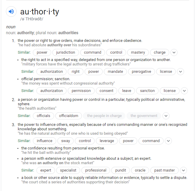 Then I took to facebook to see how others reacted to the word. I asked if there was anyone who had a positive relationship with the word or knew of a positive connotation. I got answers about having Authority over your self or your own life and how Authority can be gained without force but with trust.