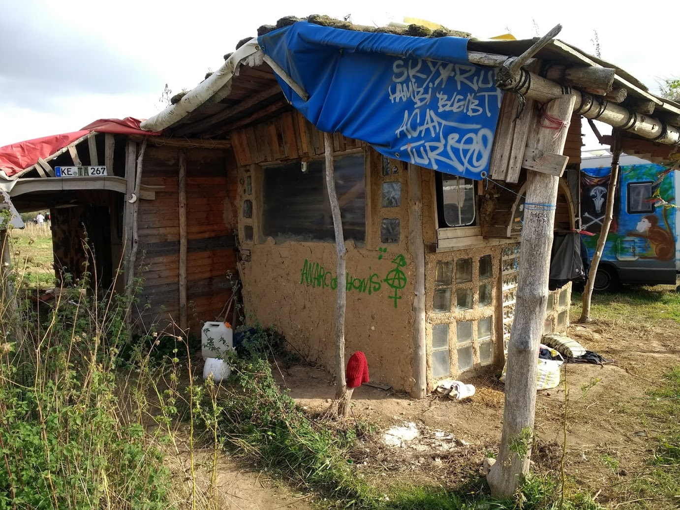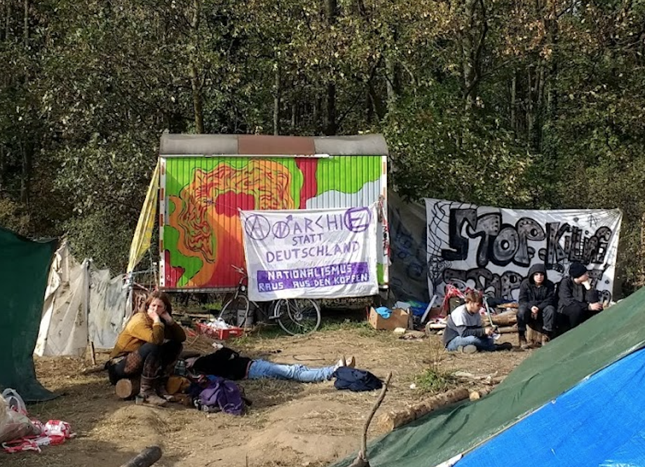 A ground based anarchist camp with a banner stating 'Anarchy instead of Germany'. Could not agree more!