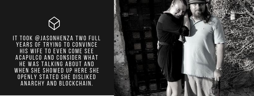 When @jasonhenza came to Acapulco his intent was to get his statist wife who hated anarchy and blockchain to see that he was actually right about it all and to get her to relocate here with him to start their lives again in a freer place. It took @jasonhenza two full years of trying to convince his wife to even come see Acapulco and consider what he was talking about and when she showed up here she openly stated she disliked anarchy and blockchain. After spending an afternoon looking around Acapulco at housing prospects, they decided to stay at @modprobe’s and rent out one of his rooms.