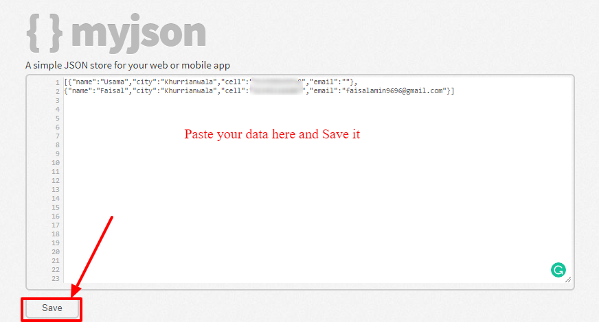 - Now open this Link and paste your JSON data here or write down a new and save it.