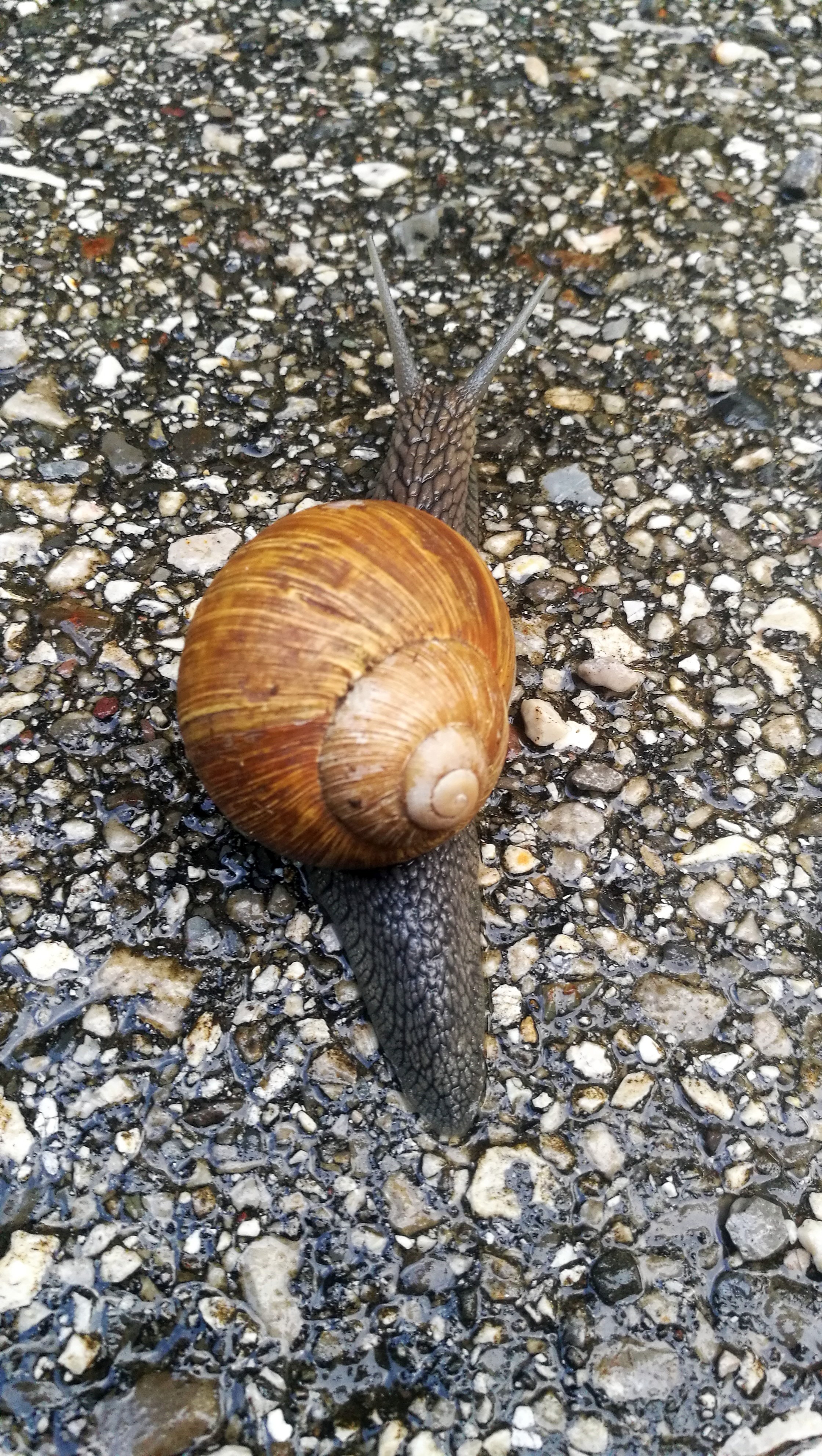 And a nice snail going about its business, slowly crossing the road.