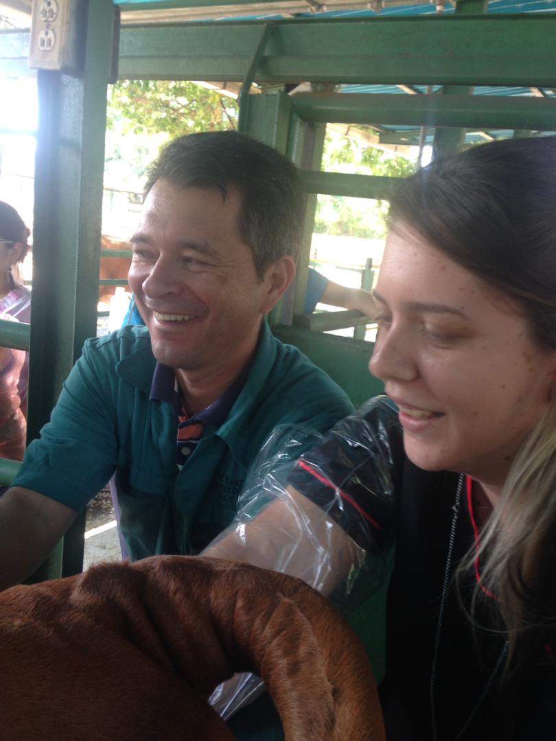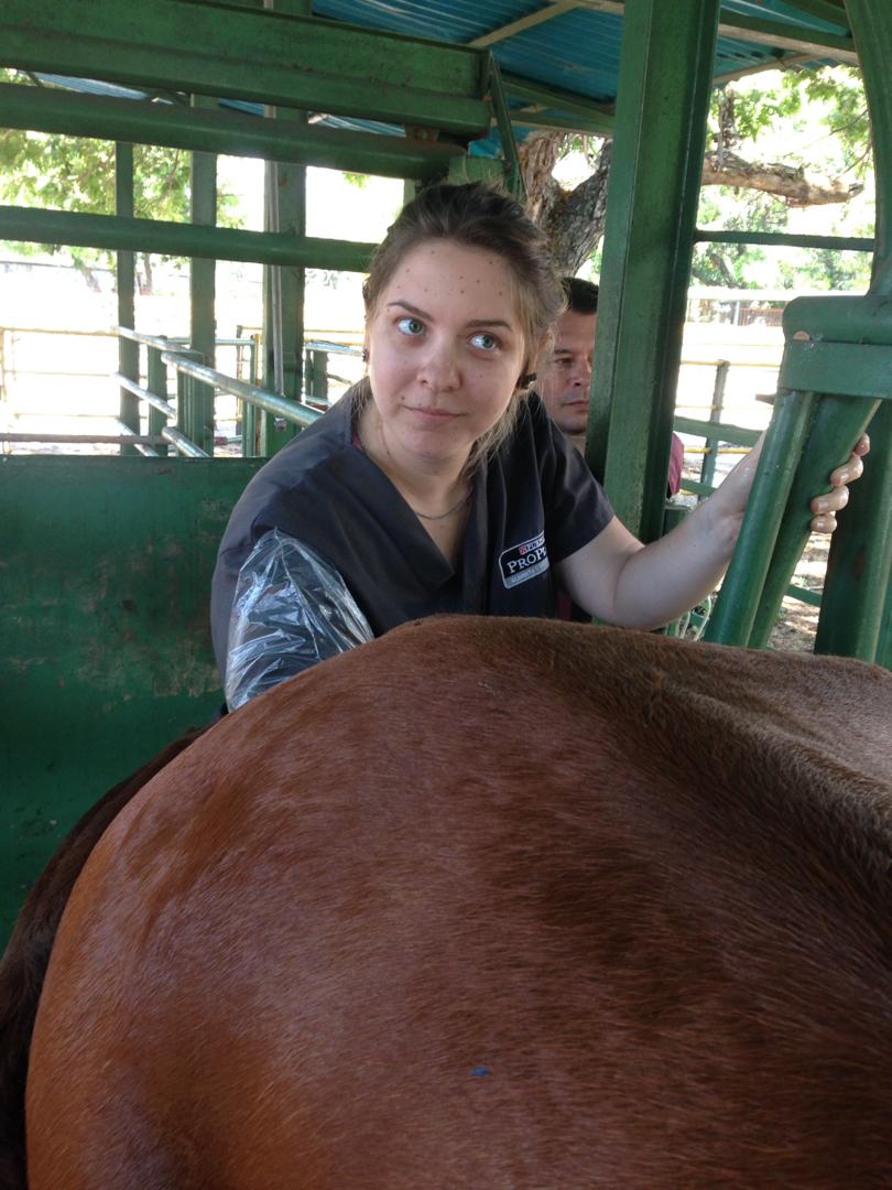 Here I am realizing a practice of Semiology, which consists of a rectal palpation that is a routine veterinary clinical practice of utmost importance, as we can detect any possible pathology in cattle or horses and determine pregnancies.